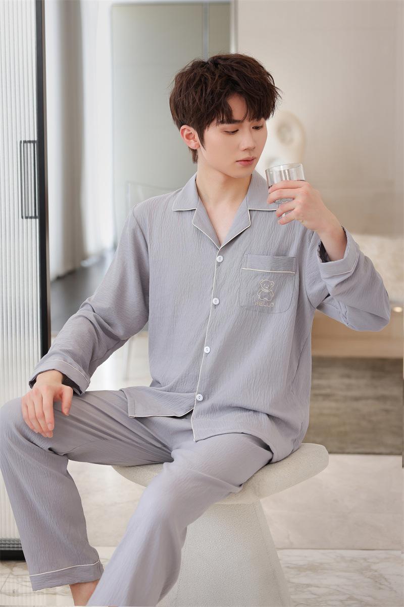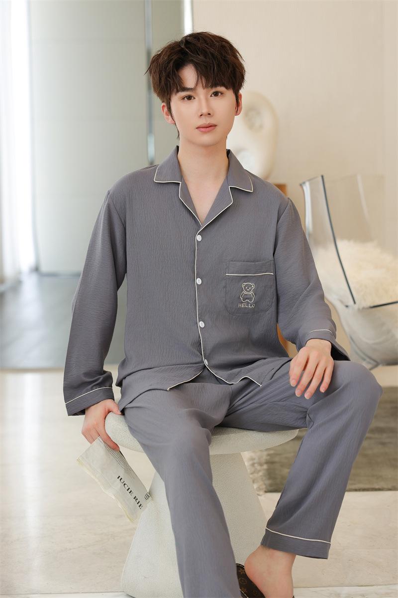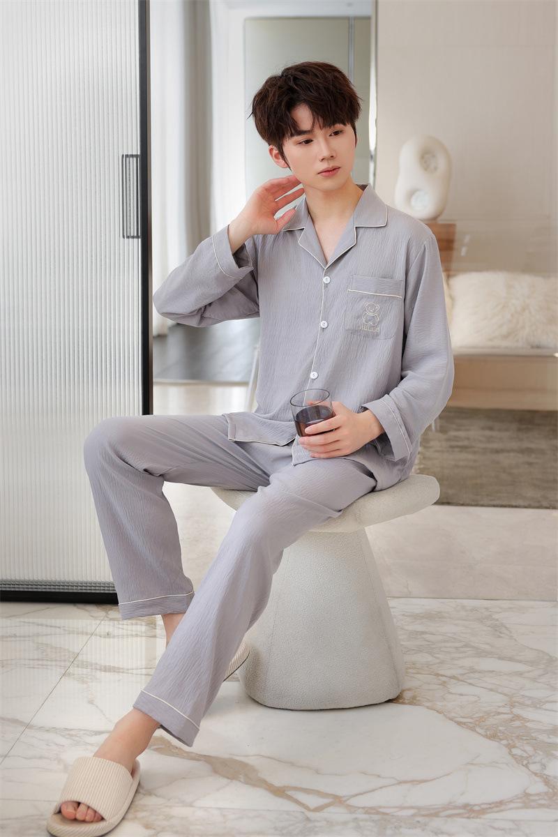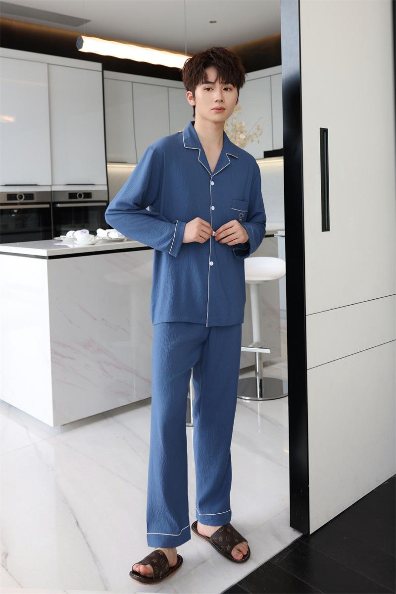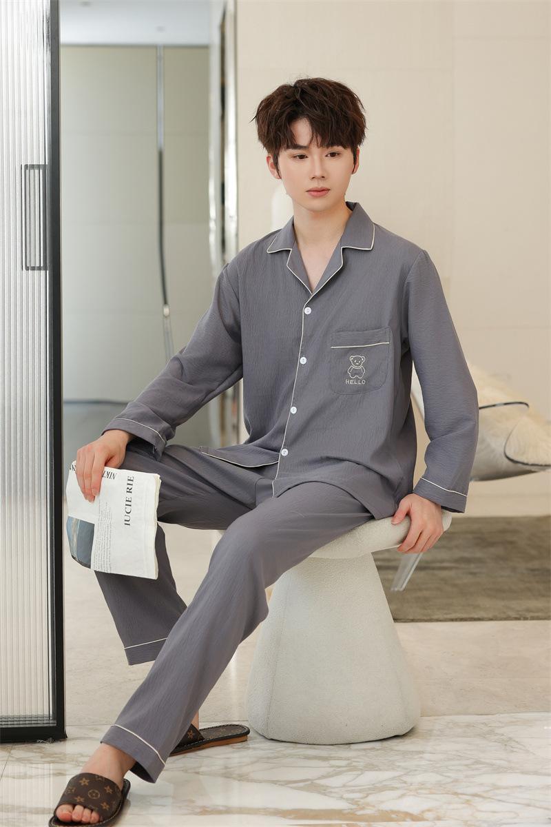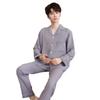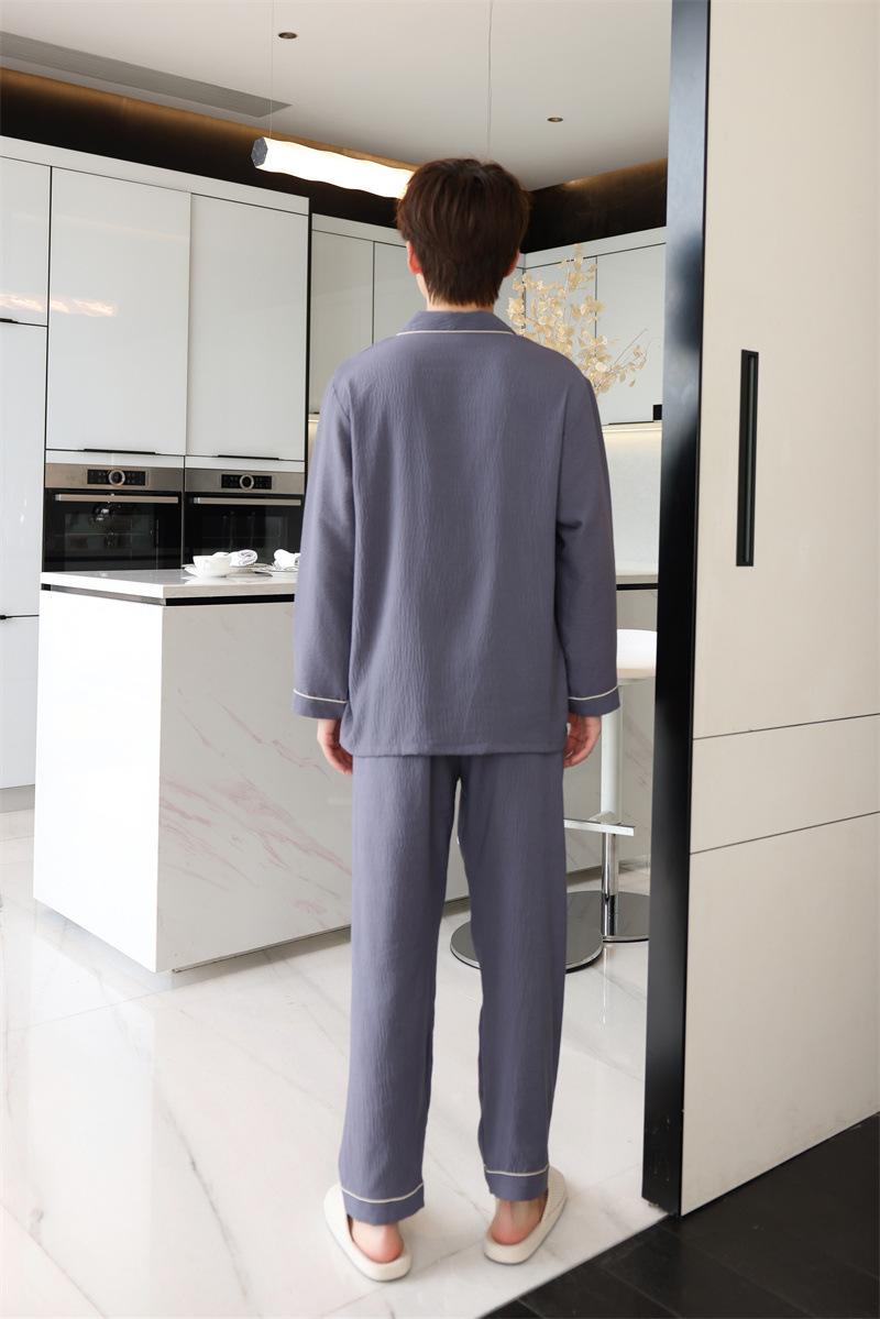 Pijama de Algodón Nube de Talla Extra Grande Traje para Hombre Verano Delgado de Manga Larga Pantalones Cárdigan Solapa Suelto Ropa para el Hogar