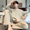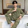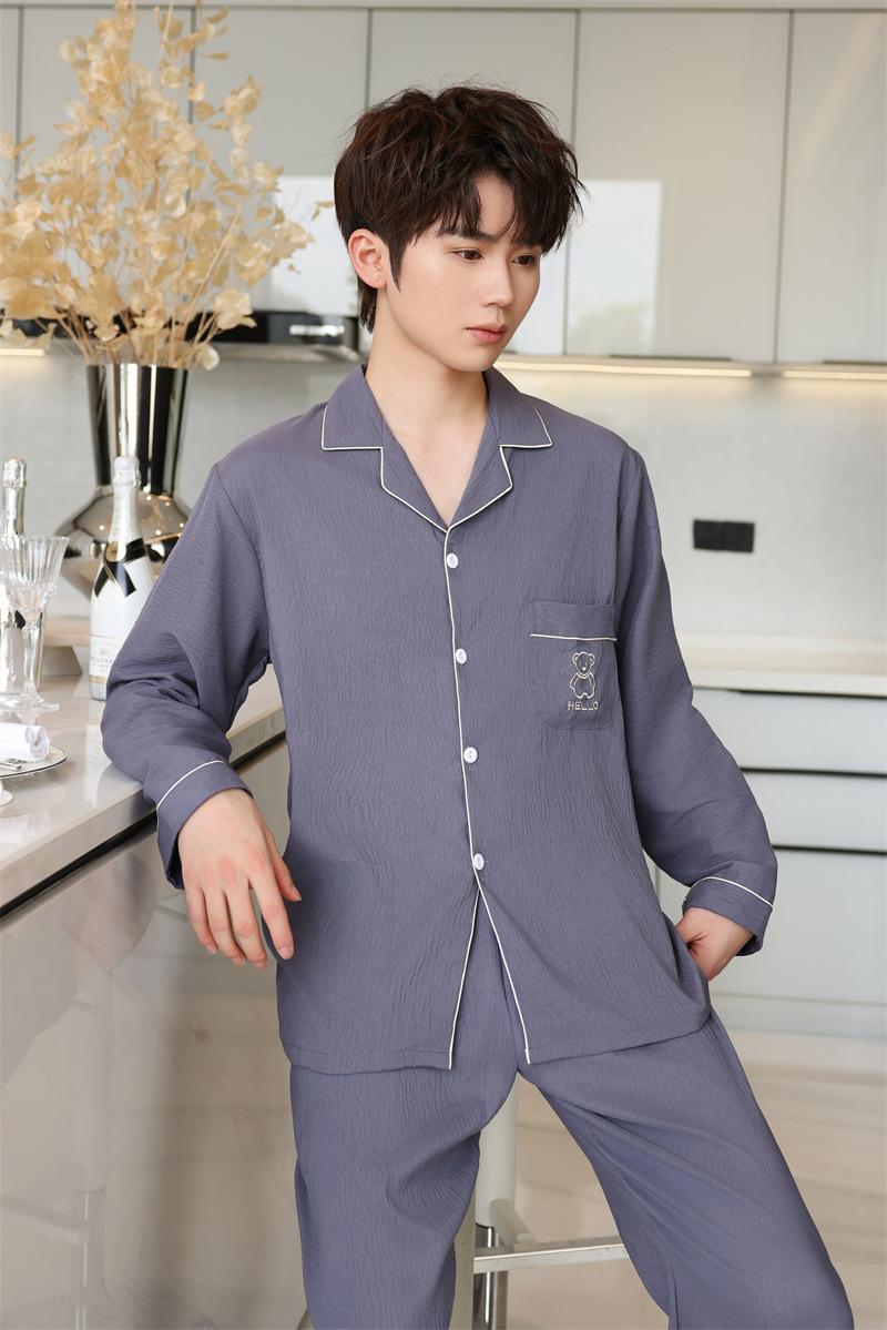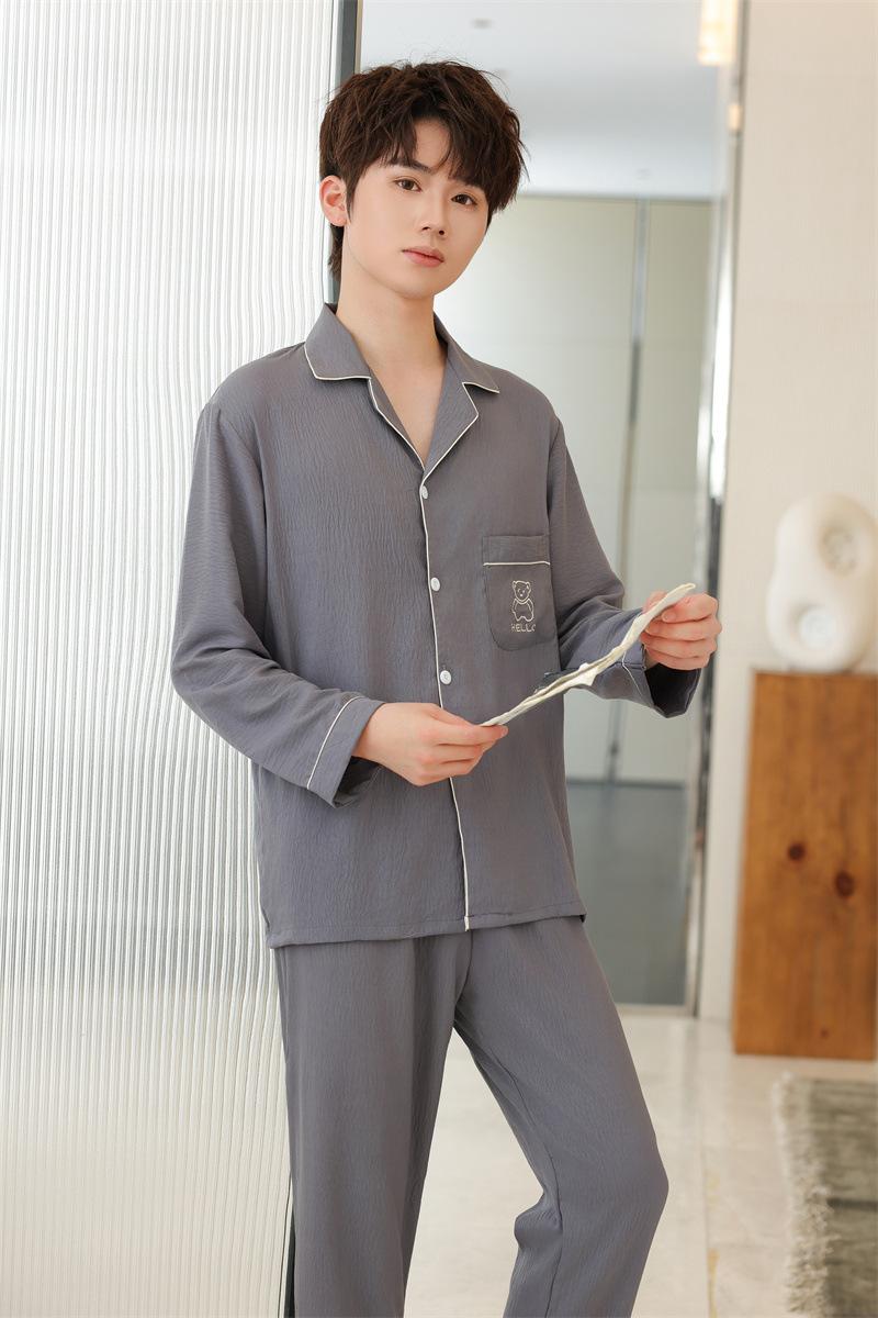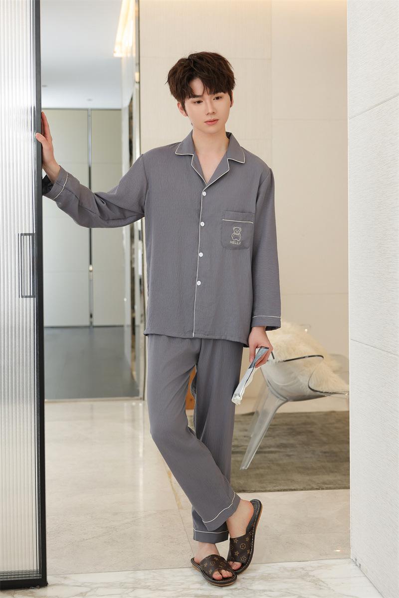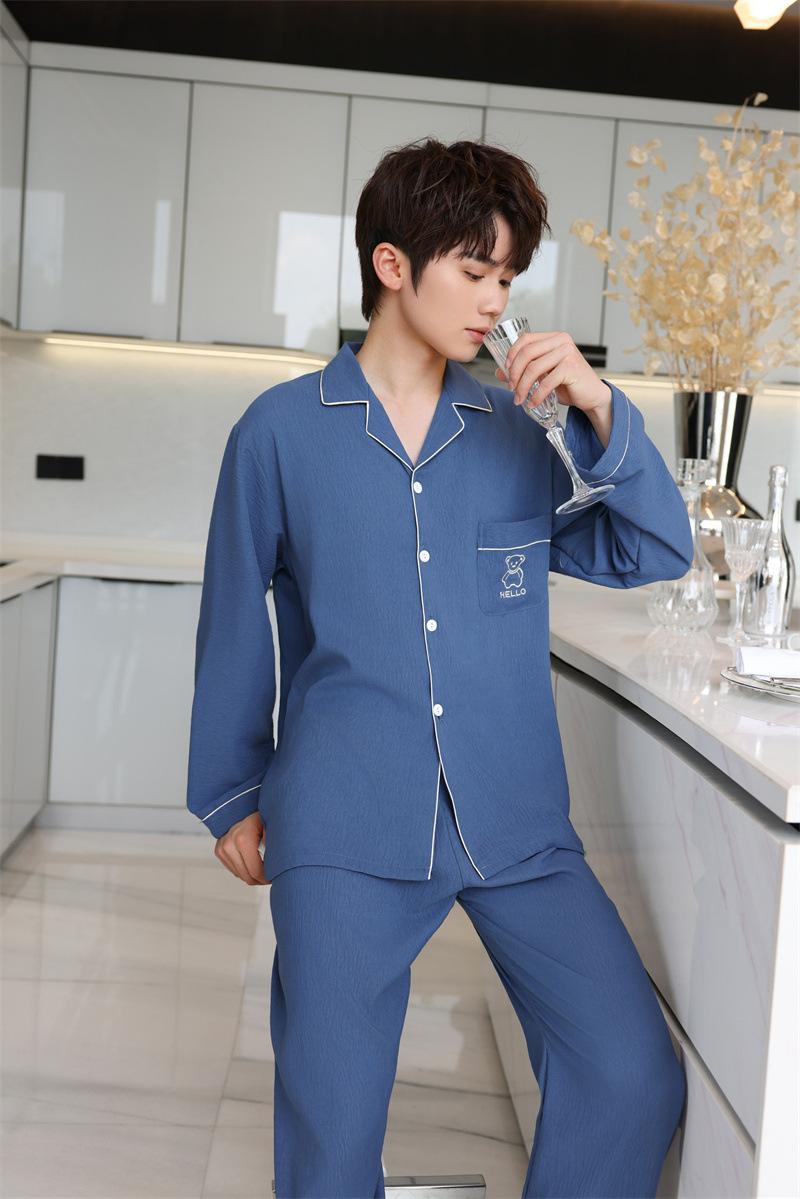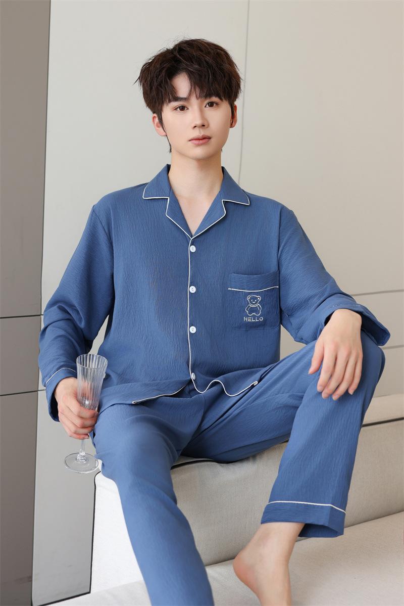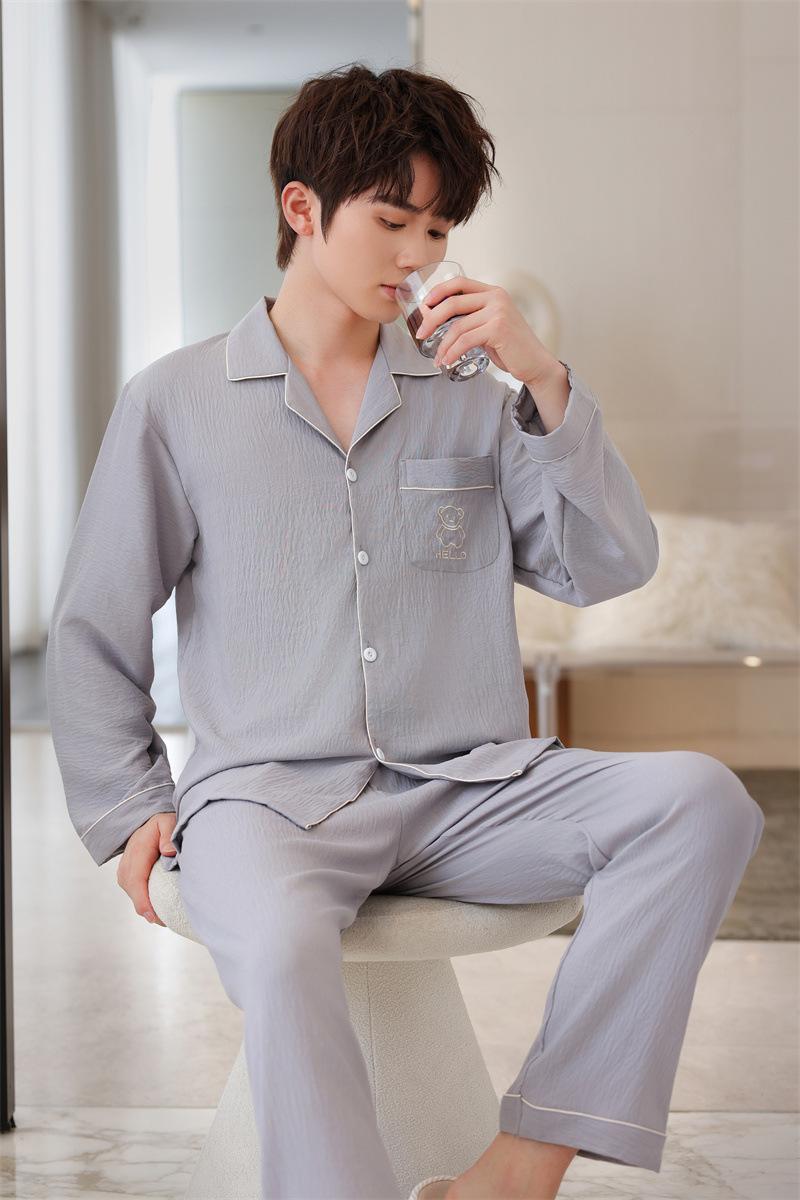 Pijama de Algodón Nube de Talla Extra Grande Traje para Hombre Verano Delgado de Manga Larga Pantalones Cárdigan Solapa Suelto Ropa para el Hogar