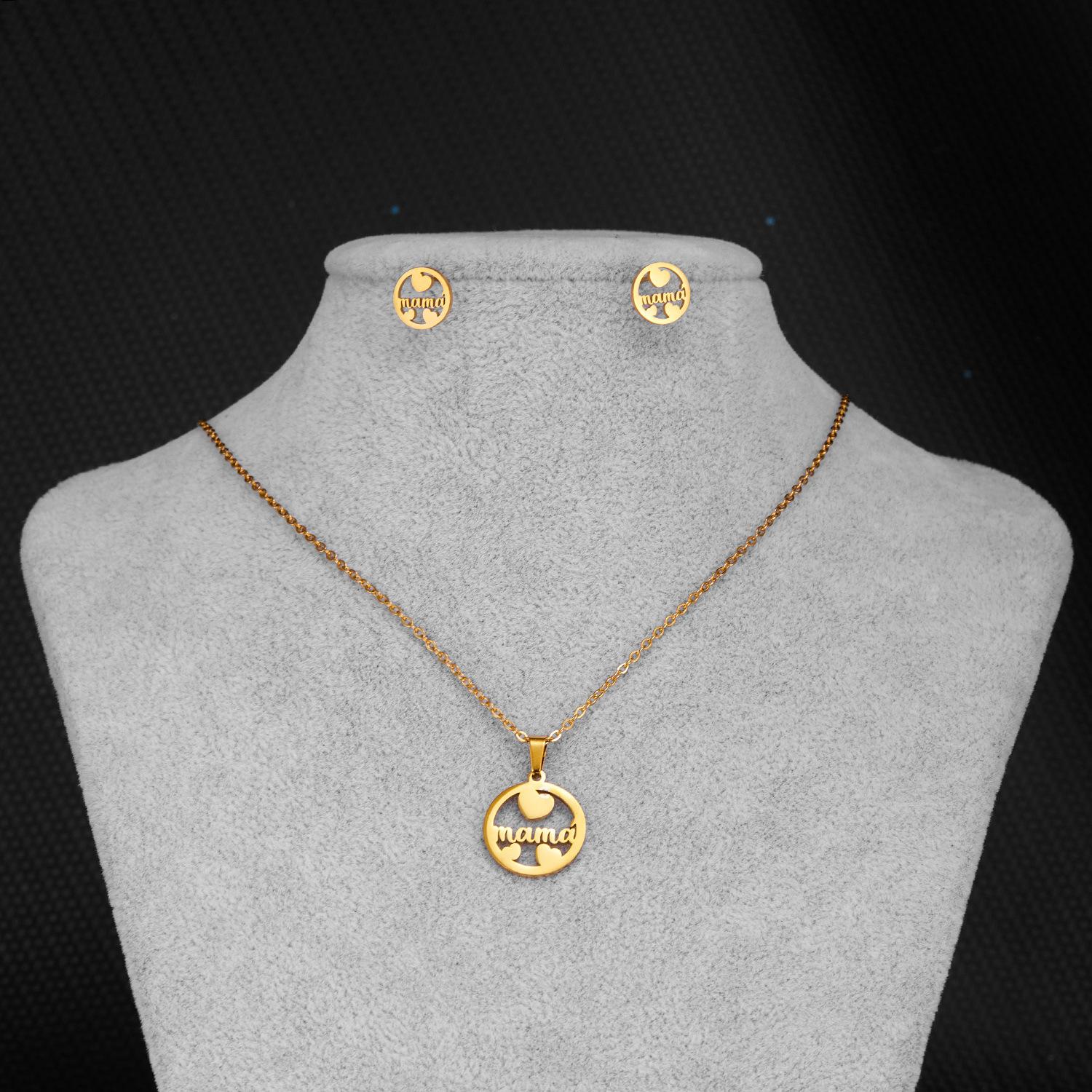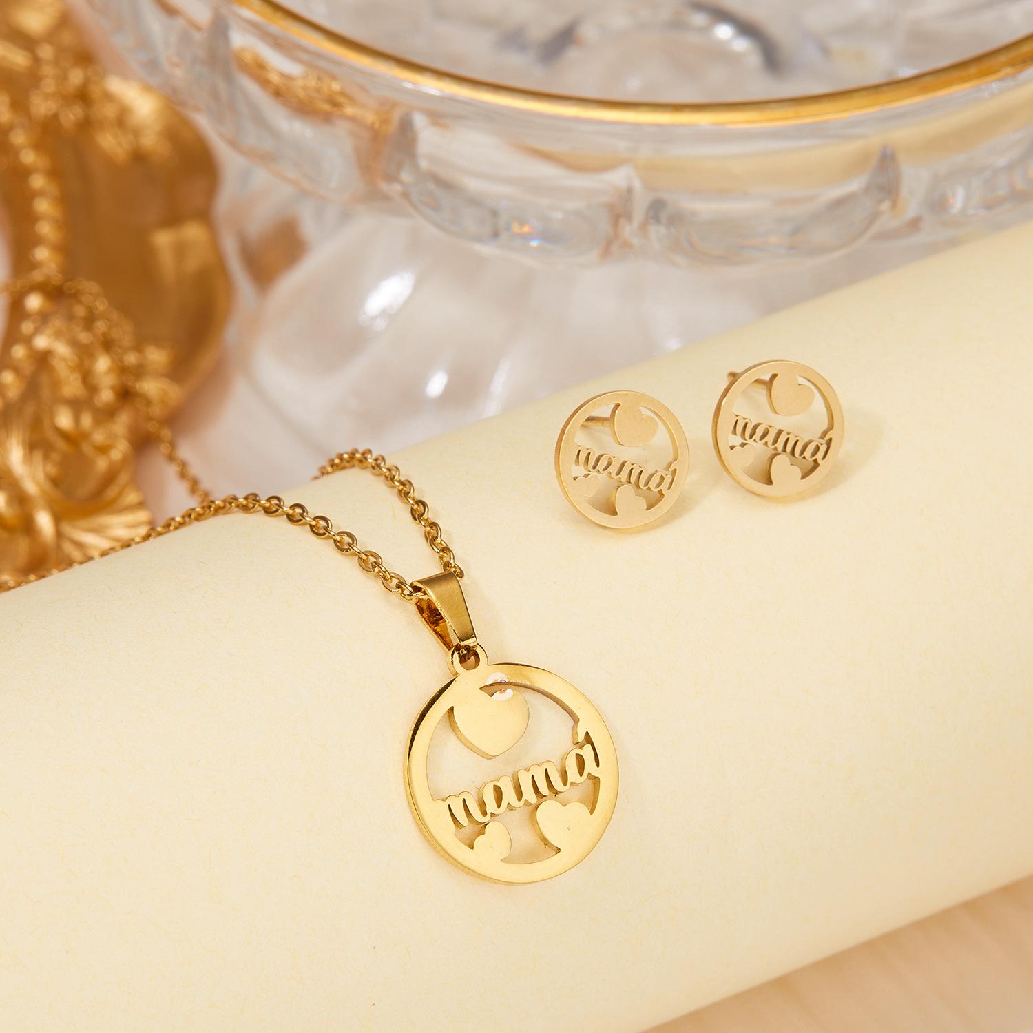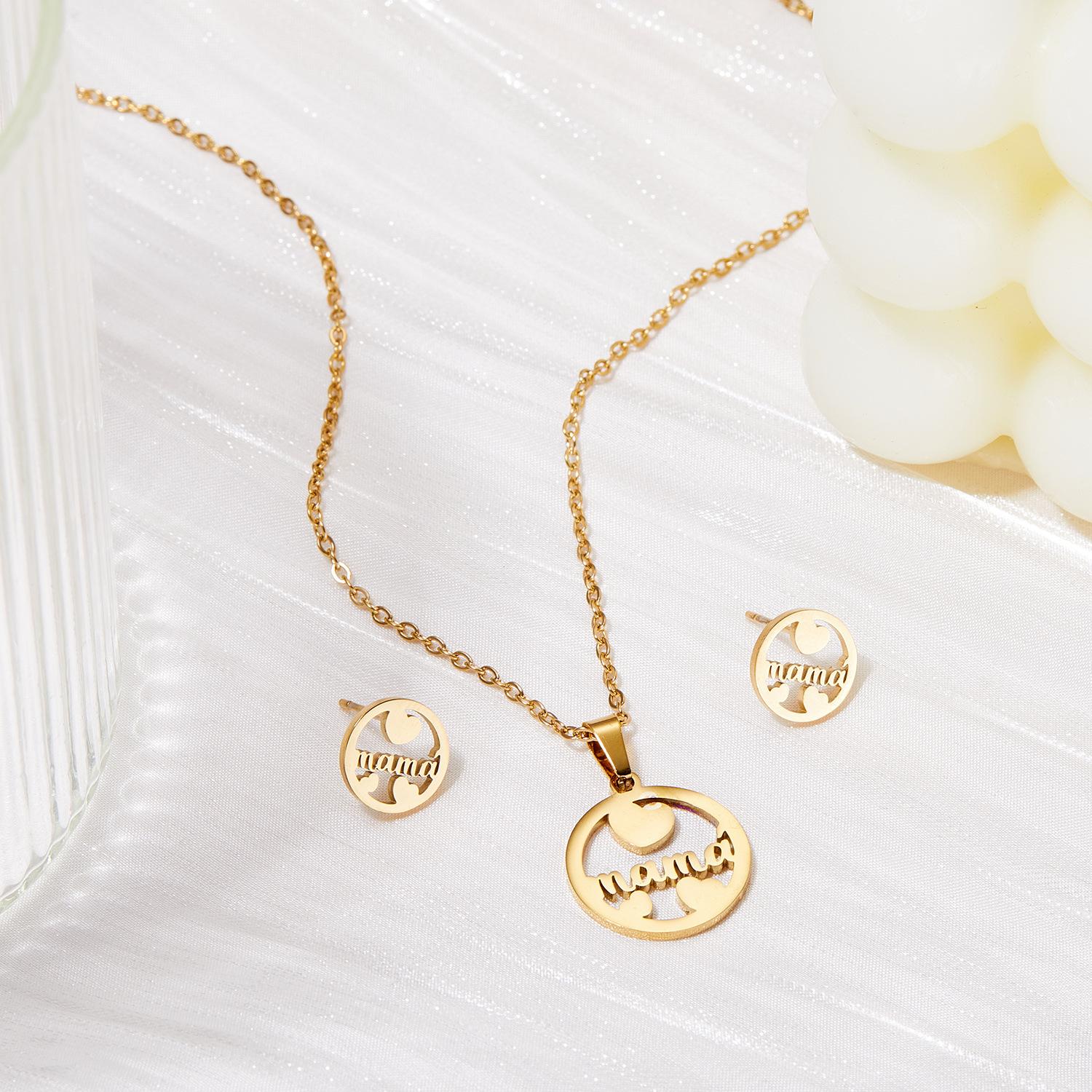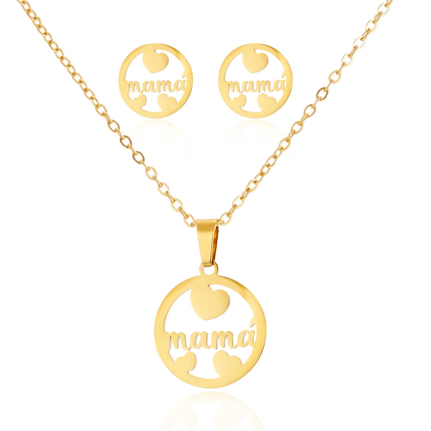 Venta caliente transfronteriza 2 piezas collar del Día de la Madre hueco redondo carta de amor mamá pendientes collar combinación traje