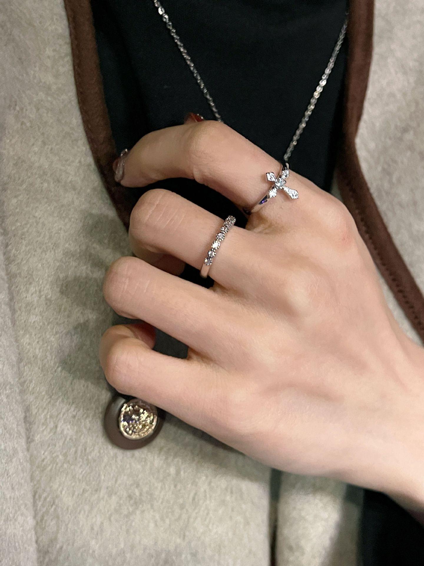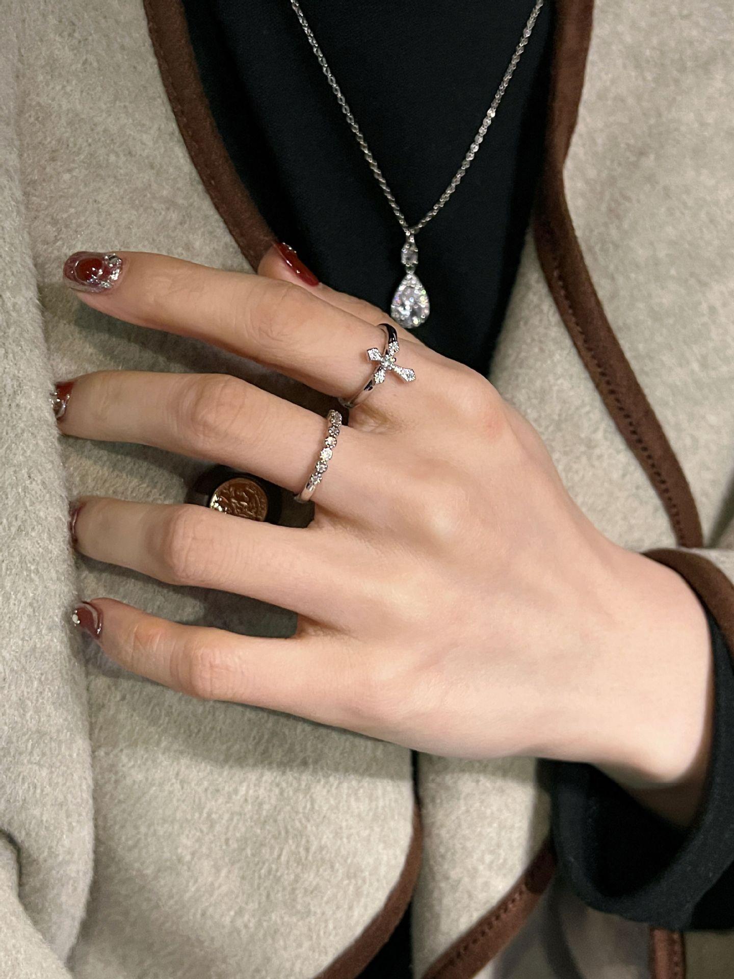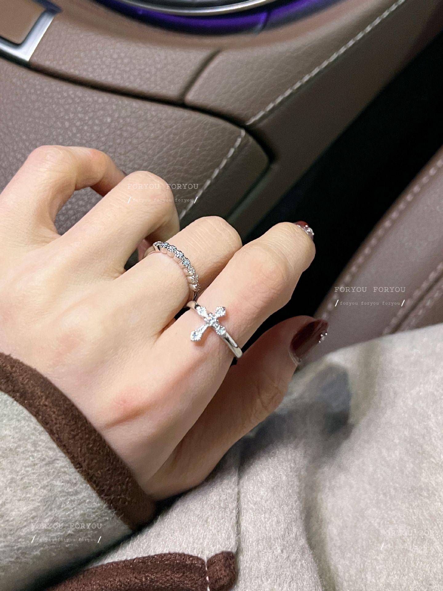 Dulce y genial mano fina ~ anillo cruzado apilado para usar estilo frío plateado ins simple versátil anillo de dedo para comida anillo coreano