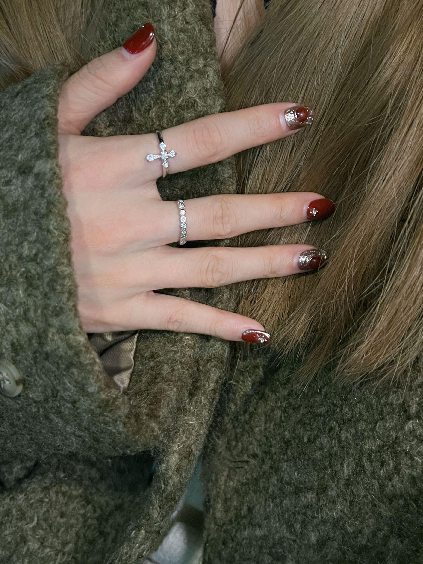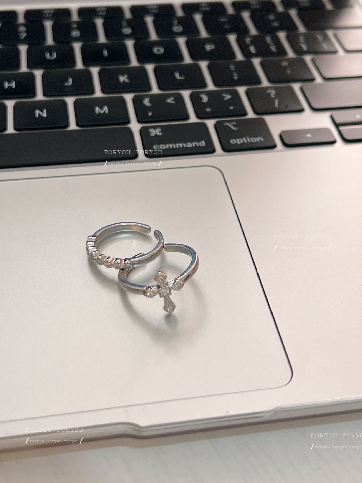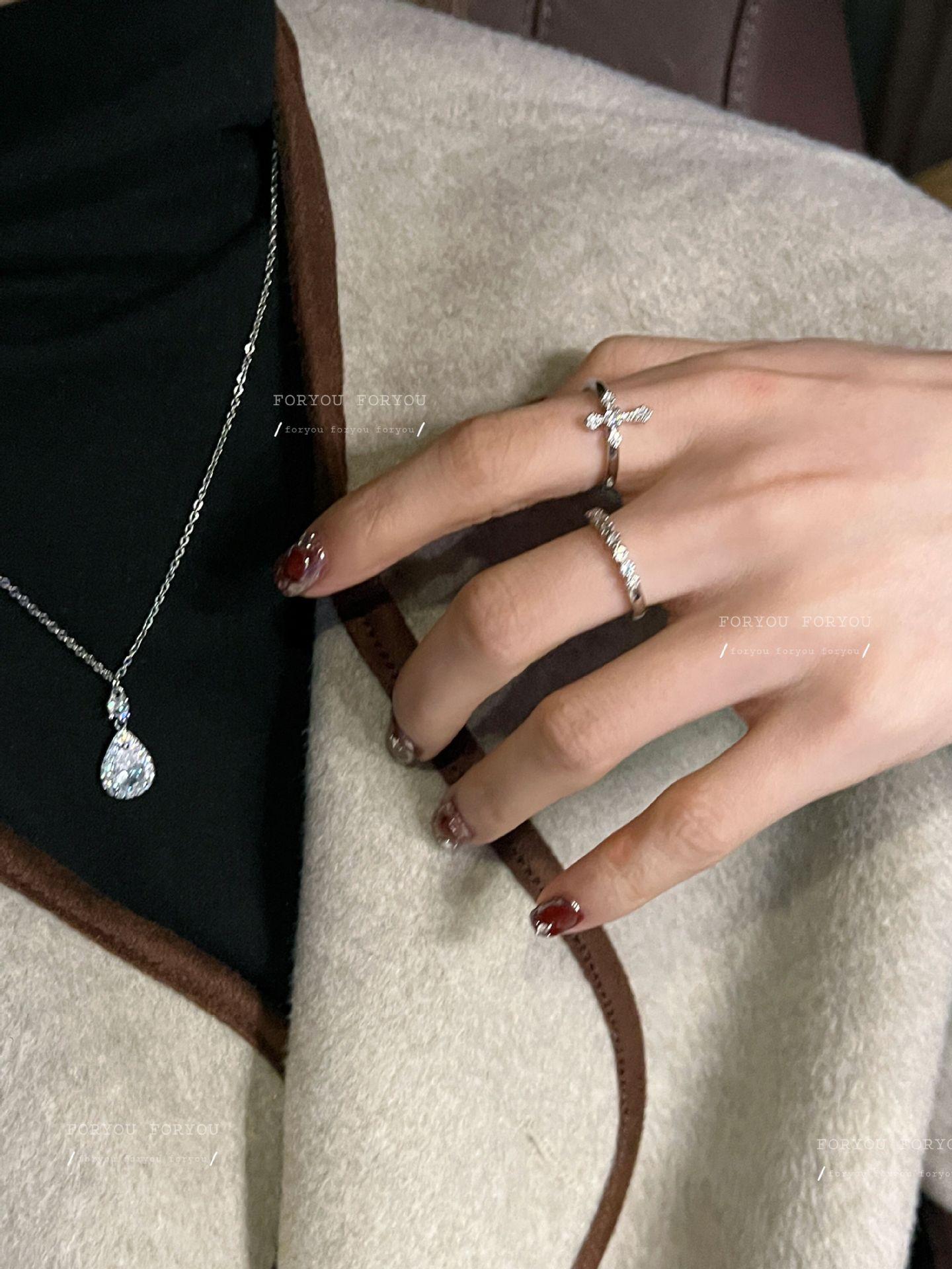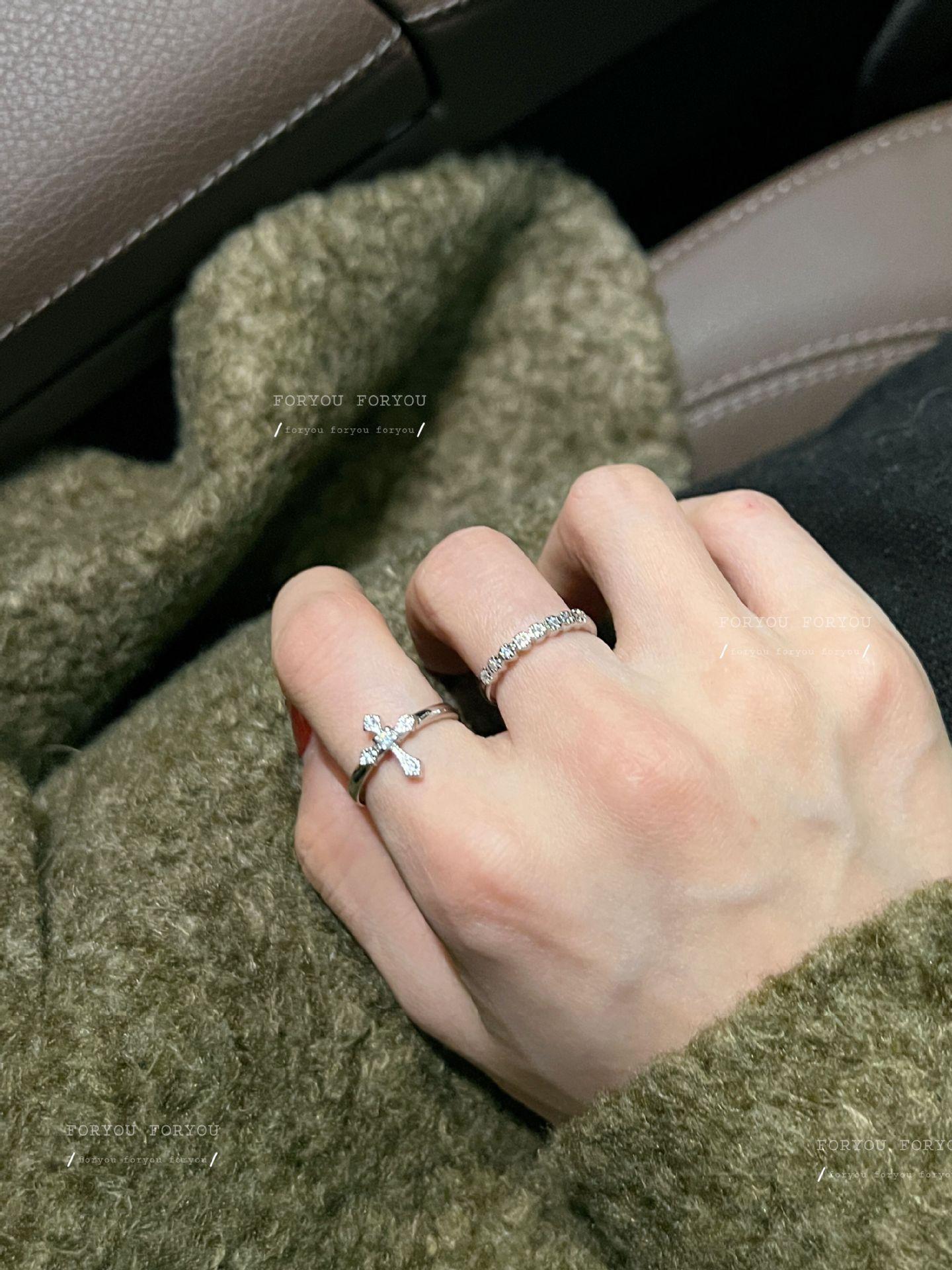 Dulce y genial mano fina ~ anillo cruzado apilado para usar estilo frío plateado ins simple versátil anillo de dedo para comida anillo coreano