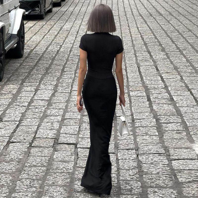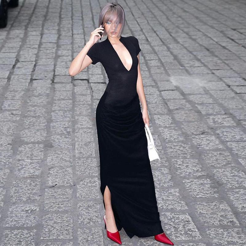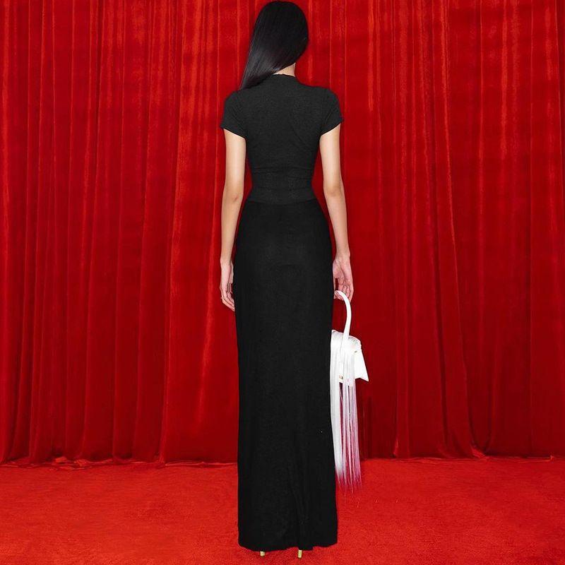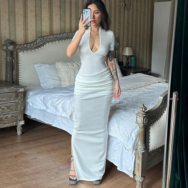 Vestido sexy transfronterizo de Amazon Europa y Estados Unidos, temperamento nuevo, escote en V ajustado, vestido de noche dividido, falda larga