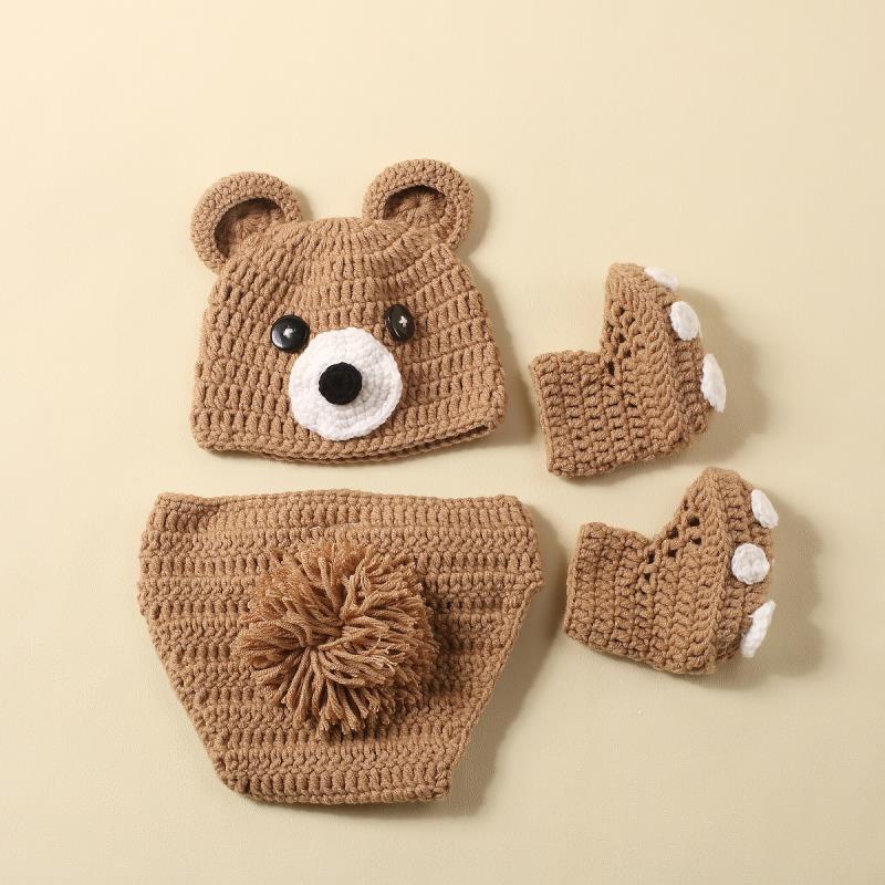 Suéter de lana tejido a mano para estudio fotográfico de bebé, ropa de fotografía para recién nacidos con dibujos de animales y osos