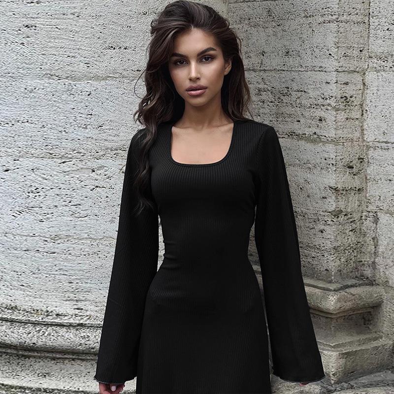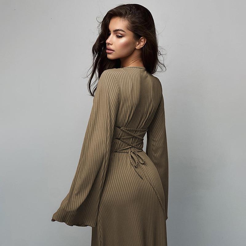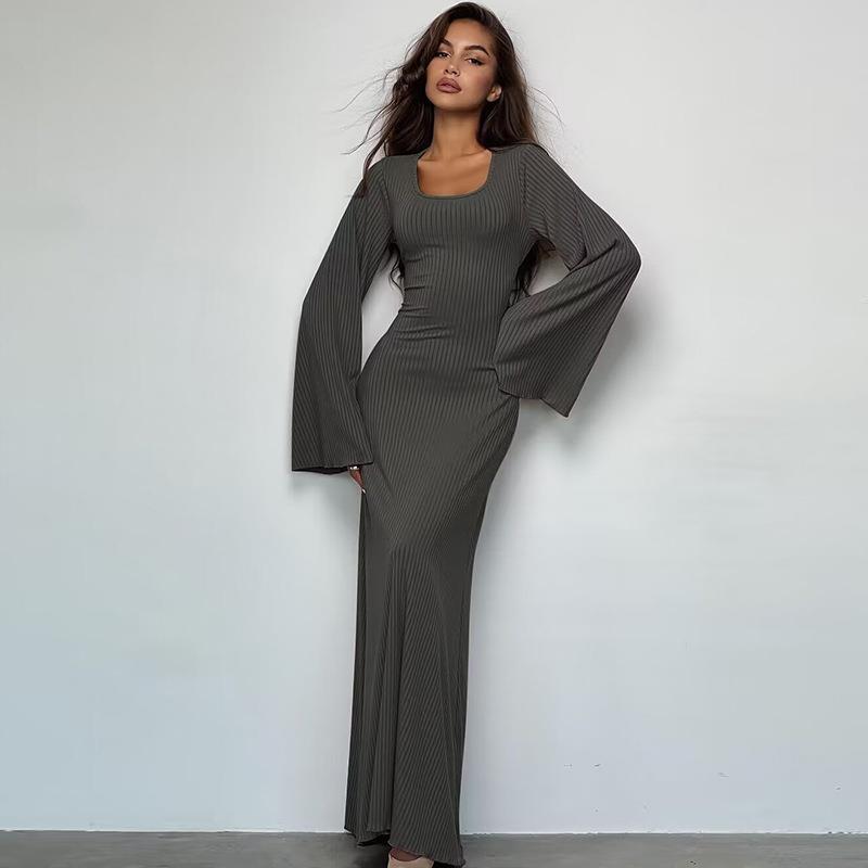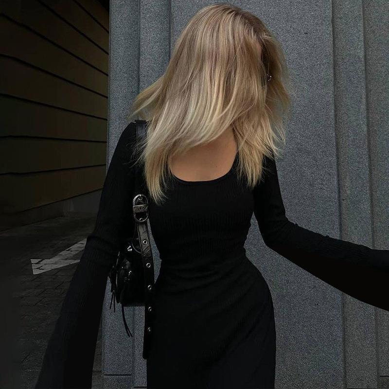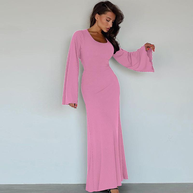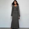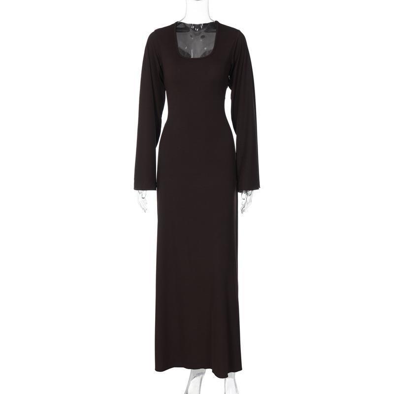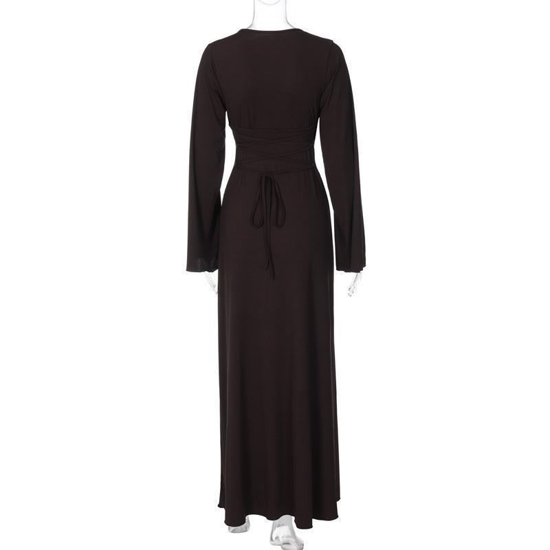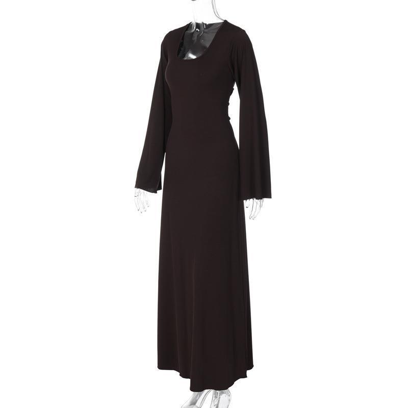 Vestido de manga larga con encaje y espalda estrecha, holgado, con cuello en U, primavera y otoño 2024, transfronterizo de Amazon, Europa y Estados Unidos