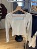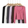 Camiseta de manga larga con cuello cuadrado estilo americano nuevo estilo BM para mujer, camiseta femenina versátil de corte entallado corto, camiseta de chica sexy con puro deseo, top de moda