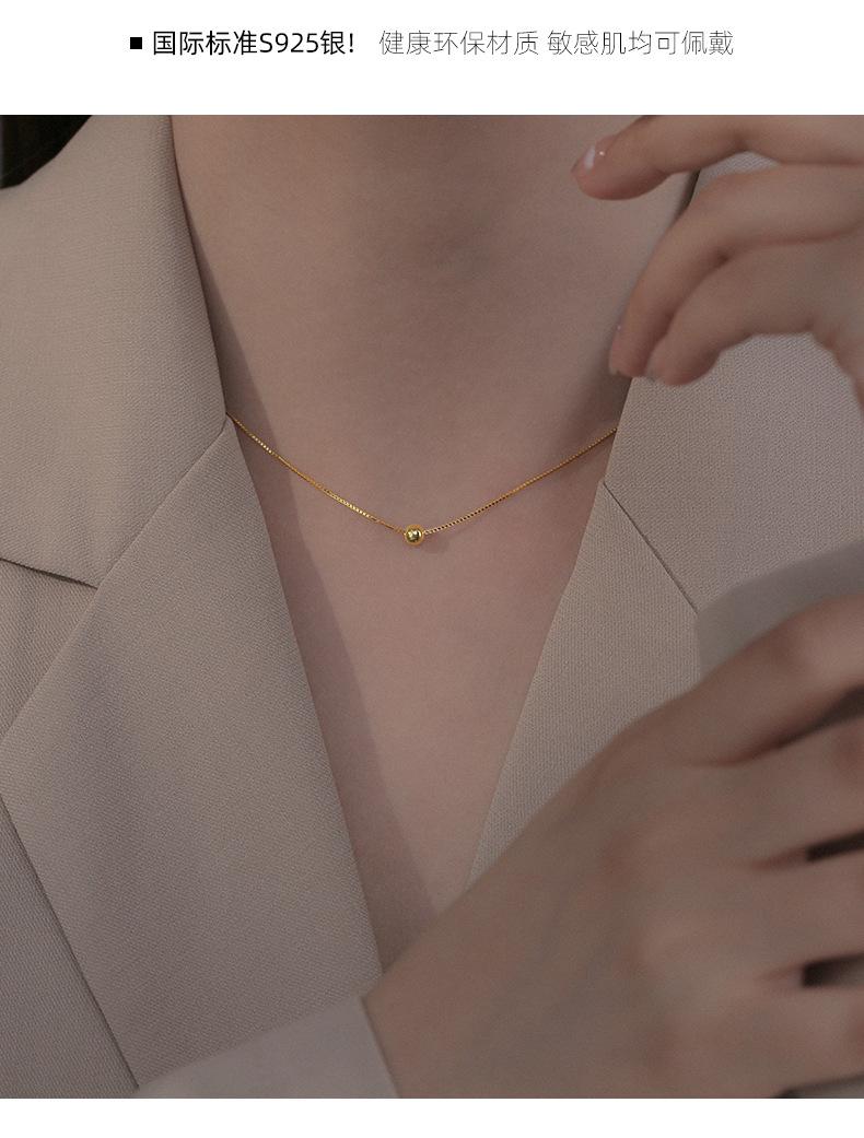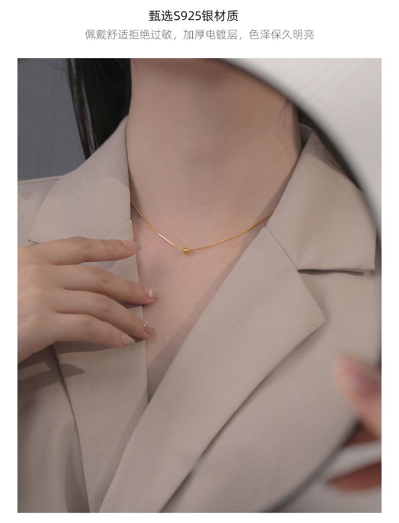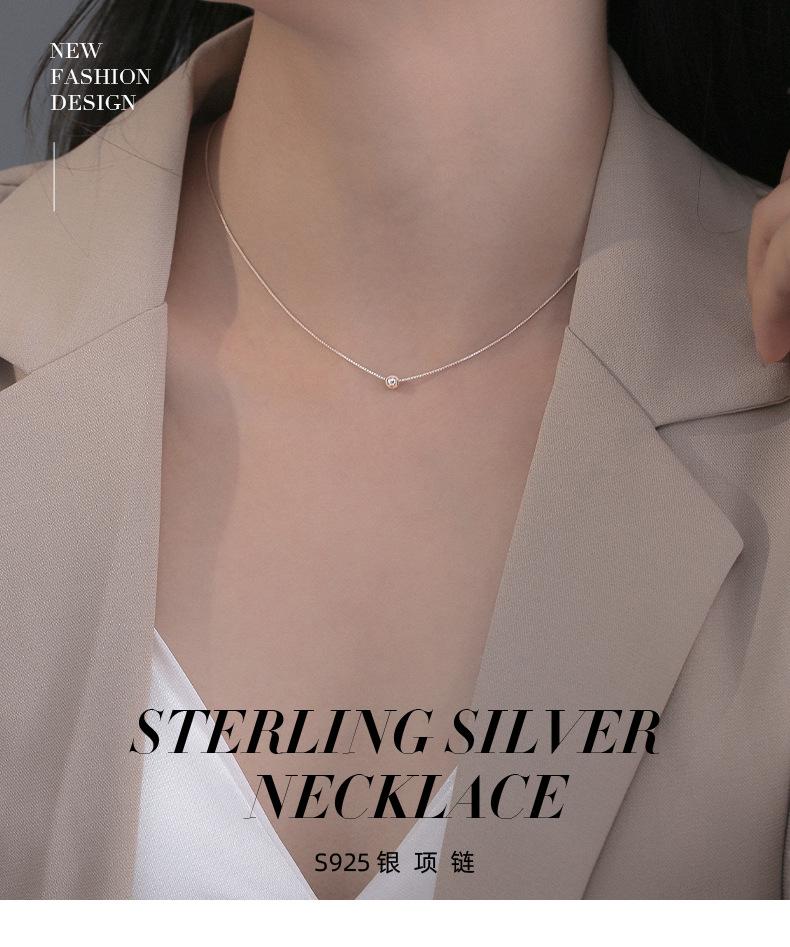 Collar sencillo de plata de ley 925 con forma de frijol para mujer, nuevo colgante de cuentas redondas de alta gama, gargantilla de estilo frío, cadena de clavícula.