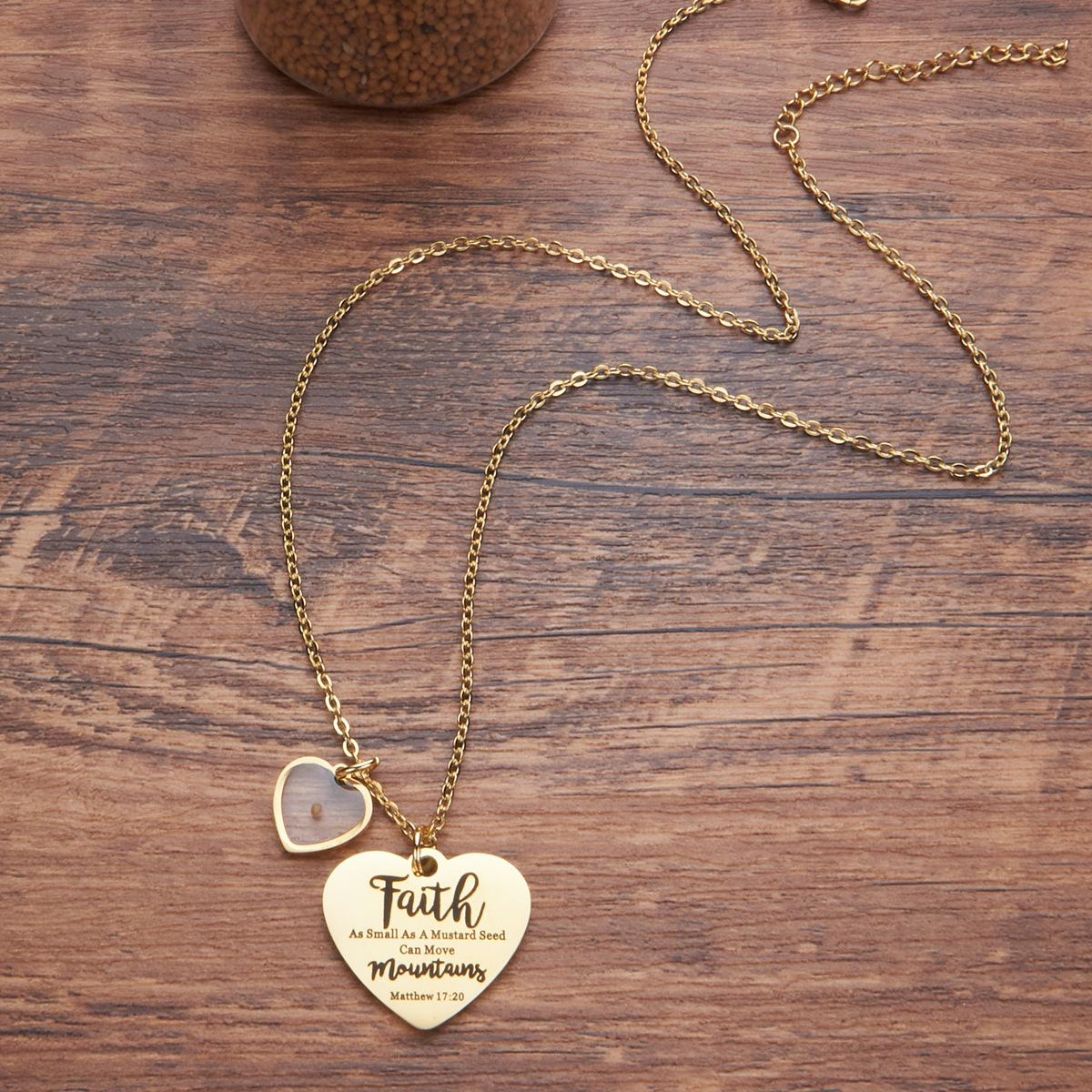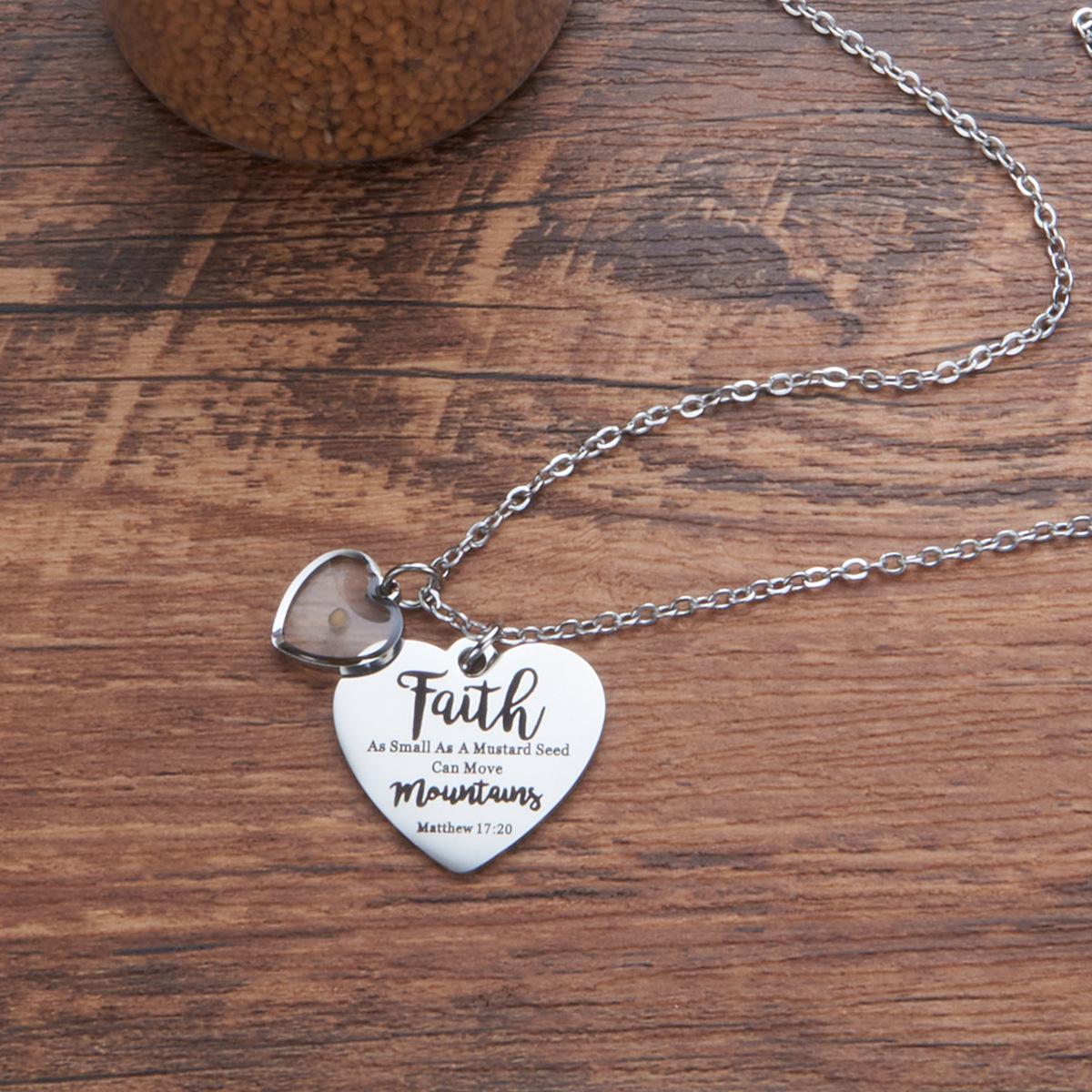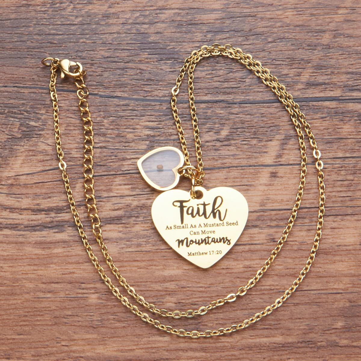 Collar de semillas de mostaza de acero inoxidable con dije de corazón, joyería de colores con encanto, gran oferta transfronteriza, collar de fe para mujer, collar de acero inoxidable