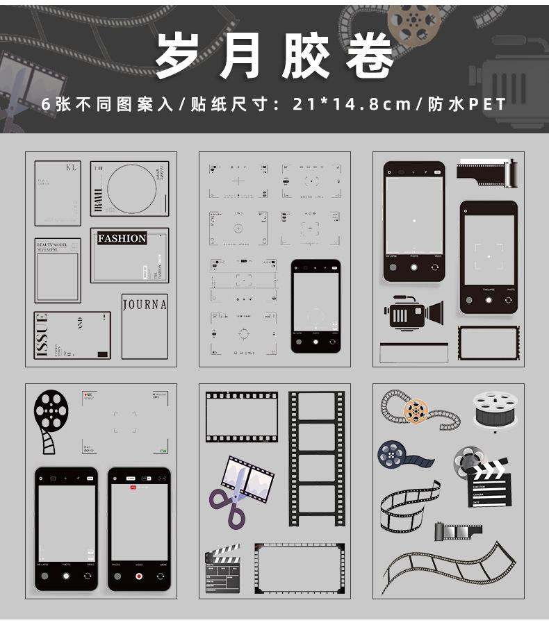 Pegatina de la serie de películas retro, bolsa, cuenta de mano, fondo, decoración, material, cuenta de mano, ins, viento, impermeable, cuenta de mano, pegatina