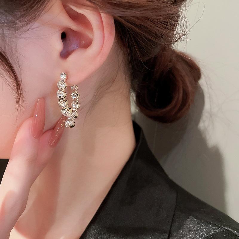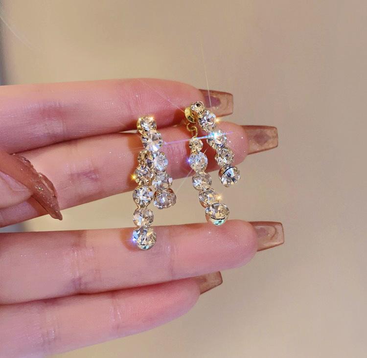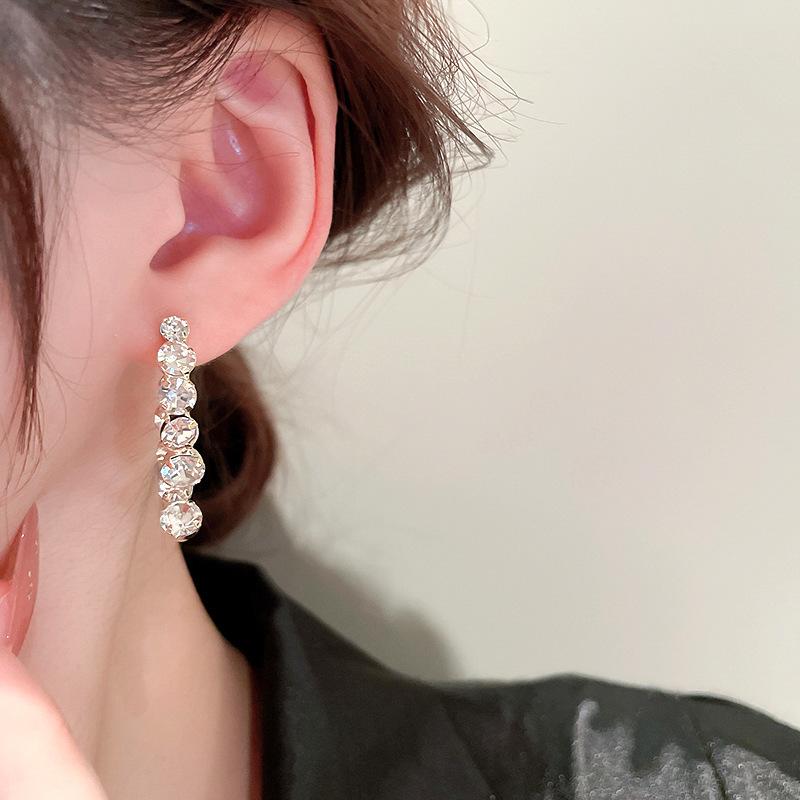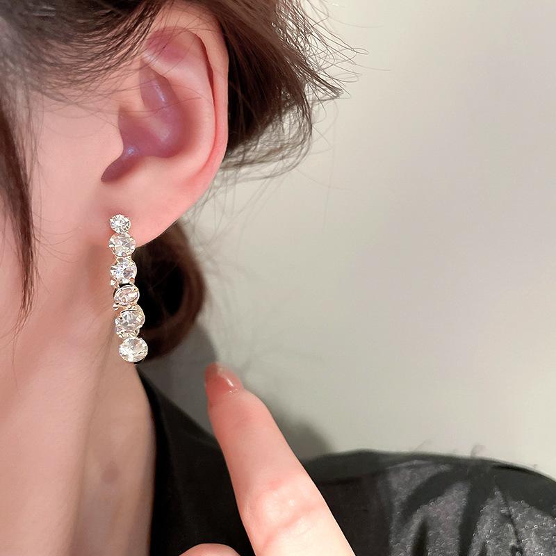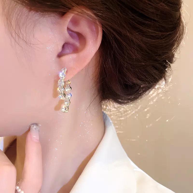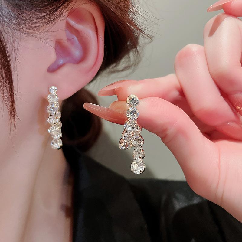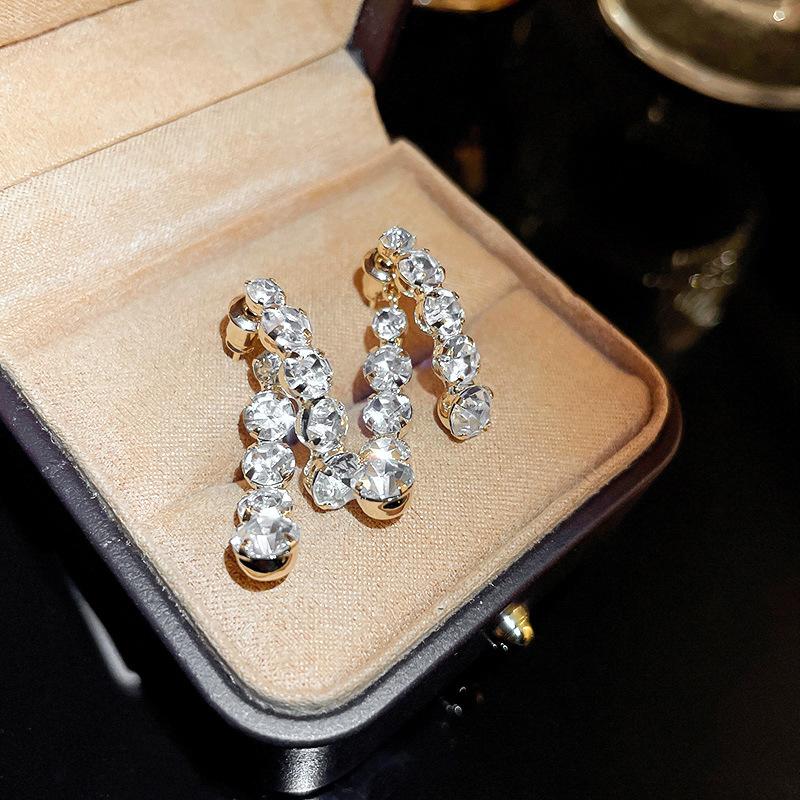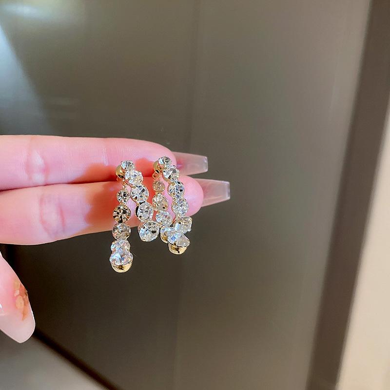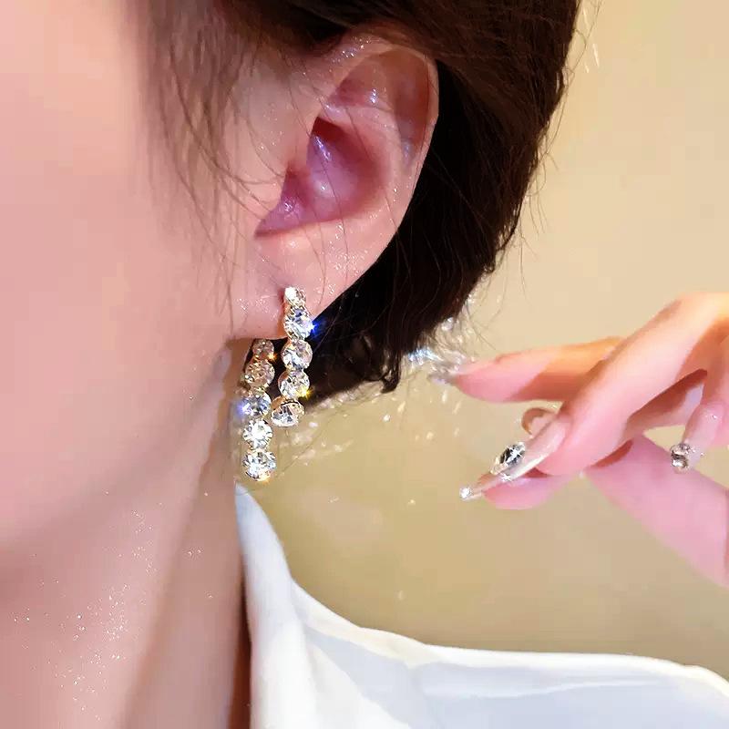 Pendientes elegantes y modernos con diseño de nicho de dos piezas y diamantes de imitación Super Flash de aguja de plata s925 para mujer, de alta calidad y combinables.