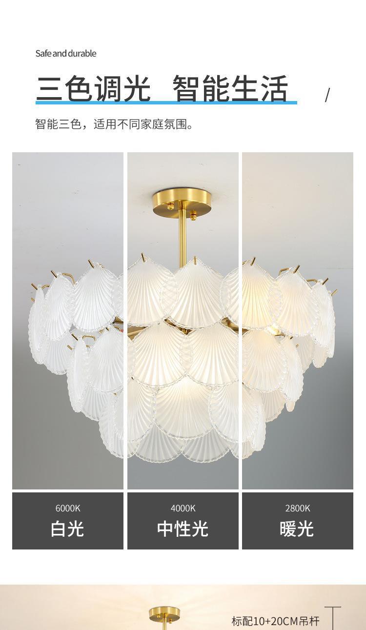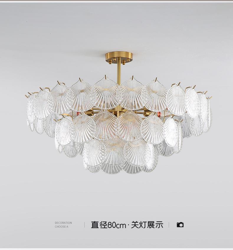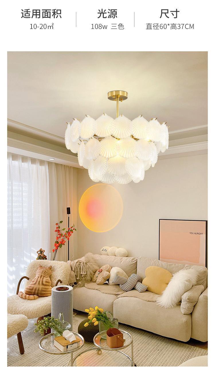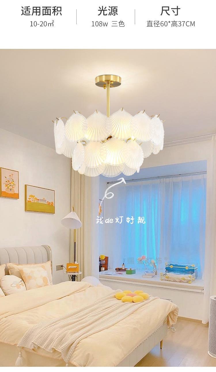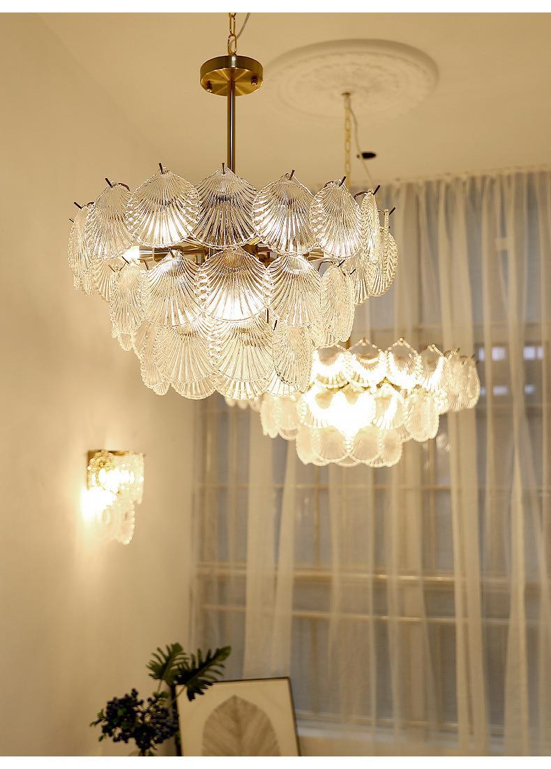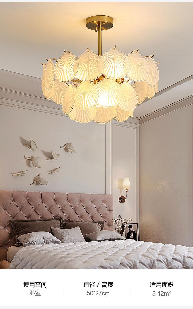 Lámpara de araña de lujo estilo francés para sala de estar, moderna, sencilla, de alta gama, para dormitorio principal, comedor, Internet, celebridades, lámparas de concha de cristal.