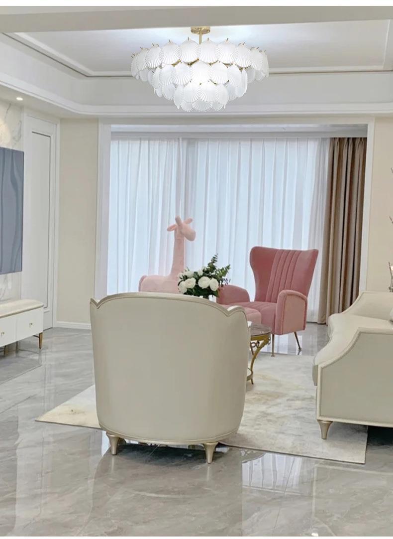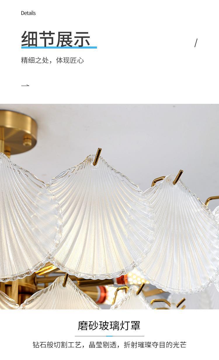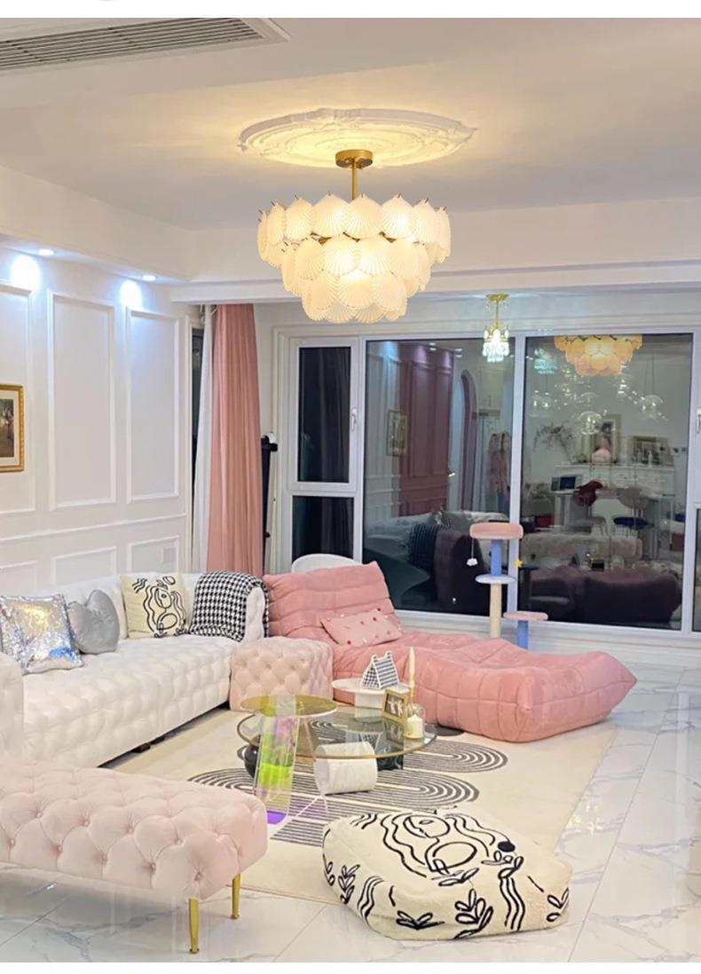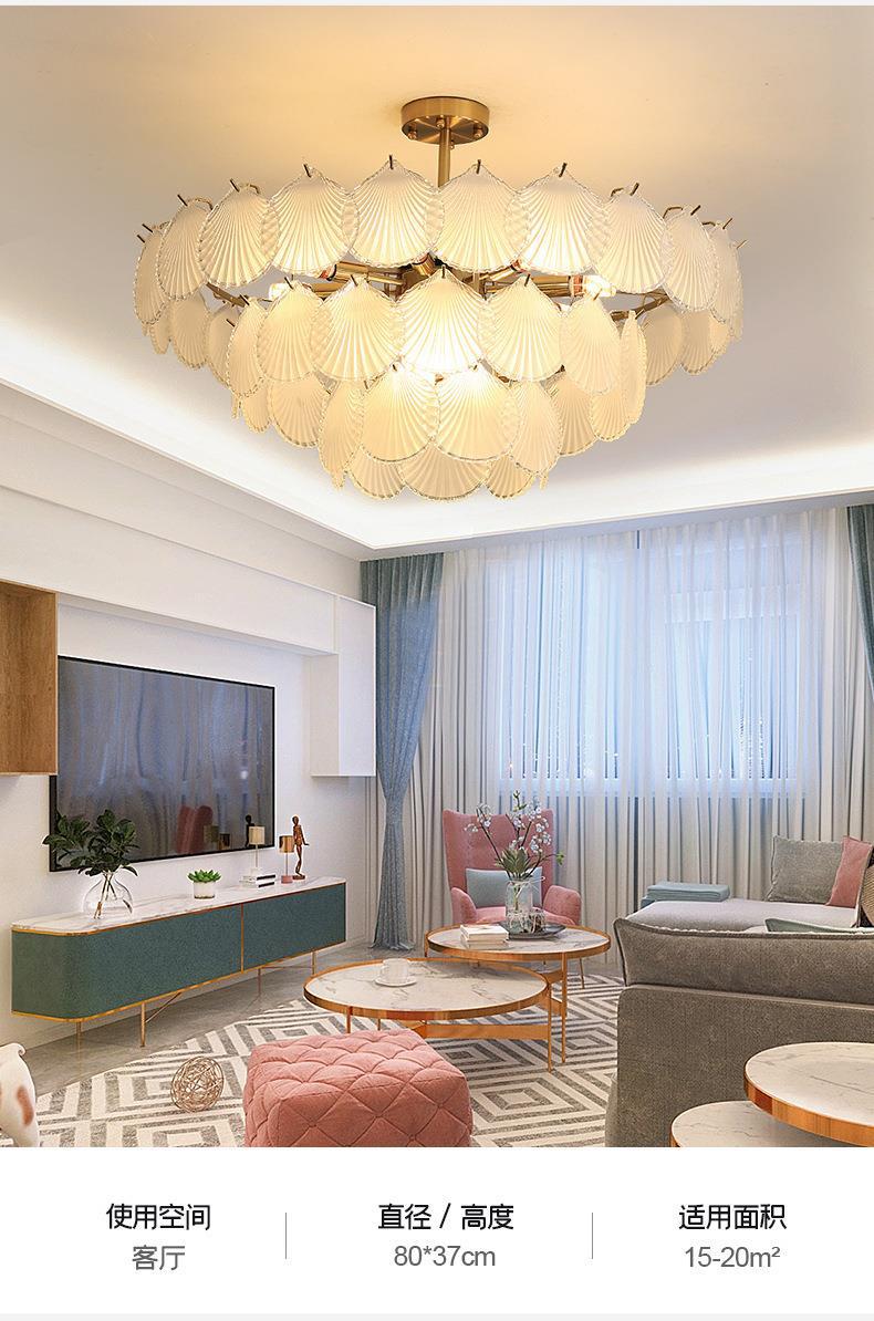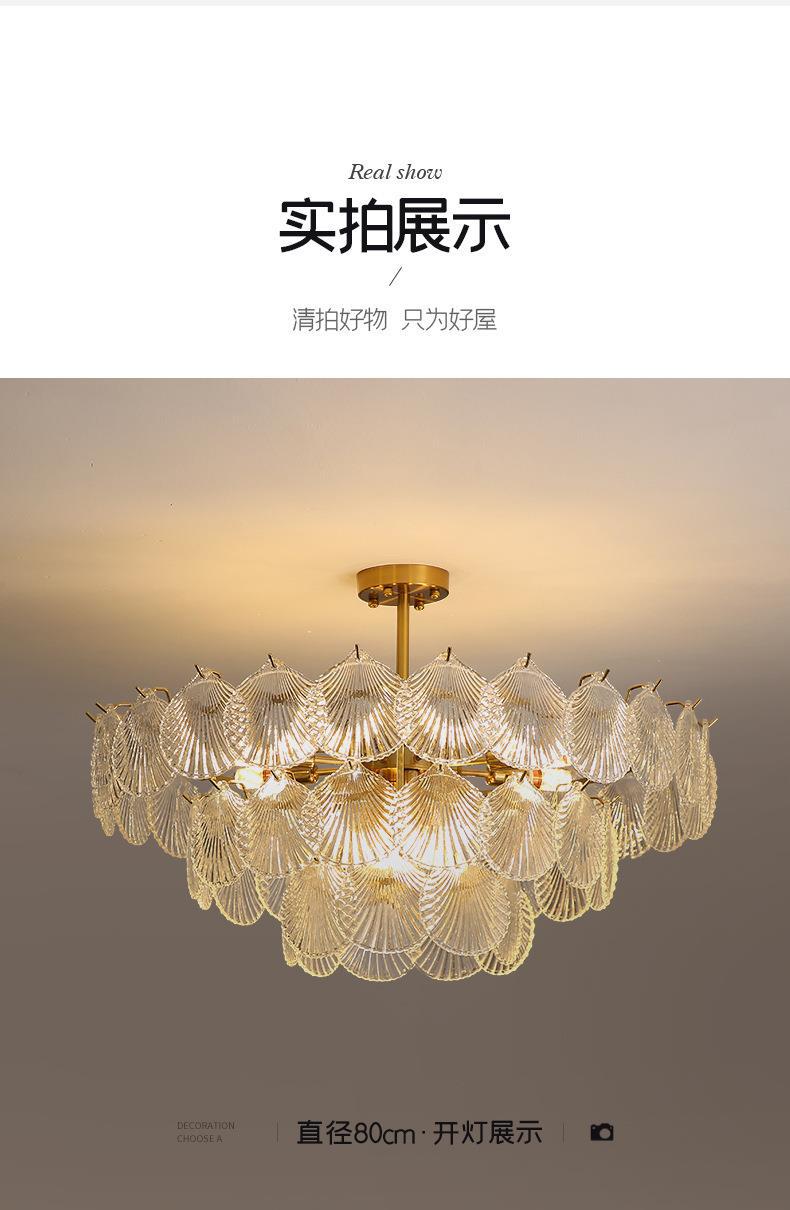 Lámpara de araña de lujo estilo francés para sala de estar, moderna, sencilla, de alta gama, para dormitorio principal, comedor, Internet, celebridades, lámparas de concha de cristal.