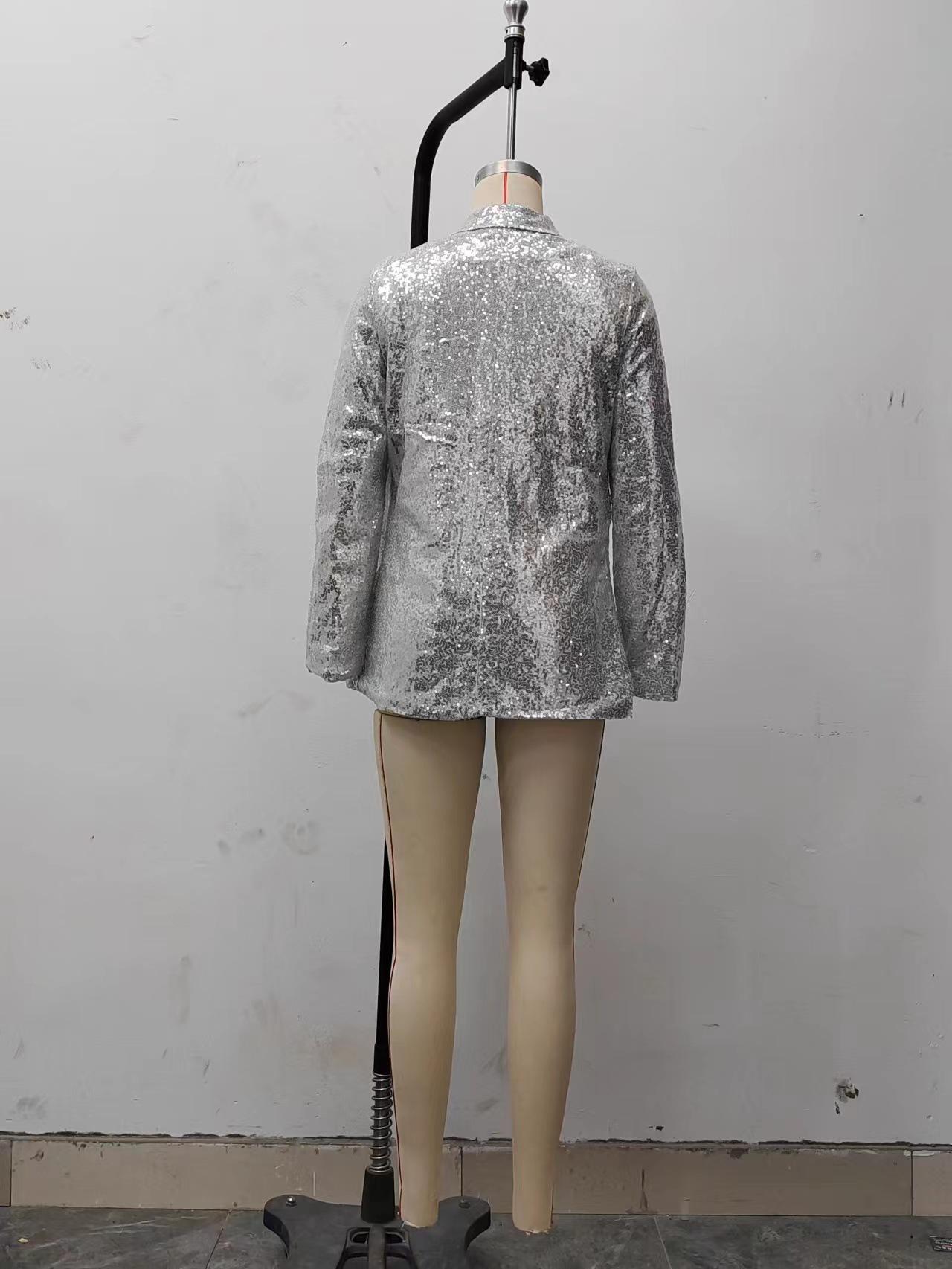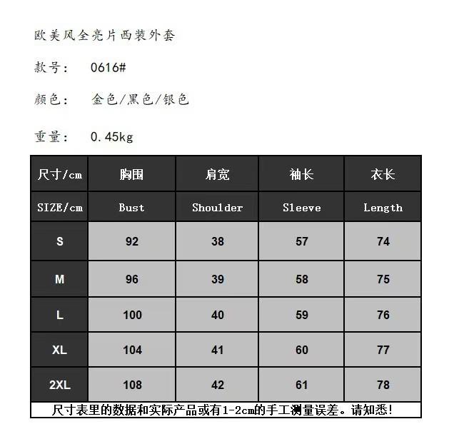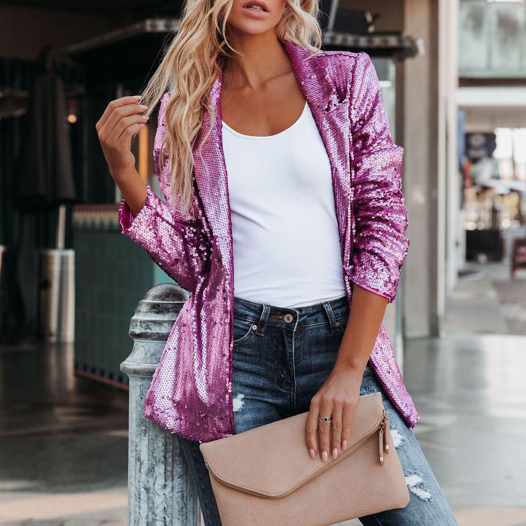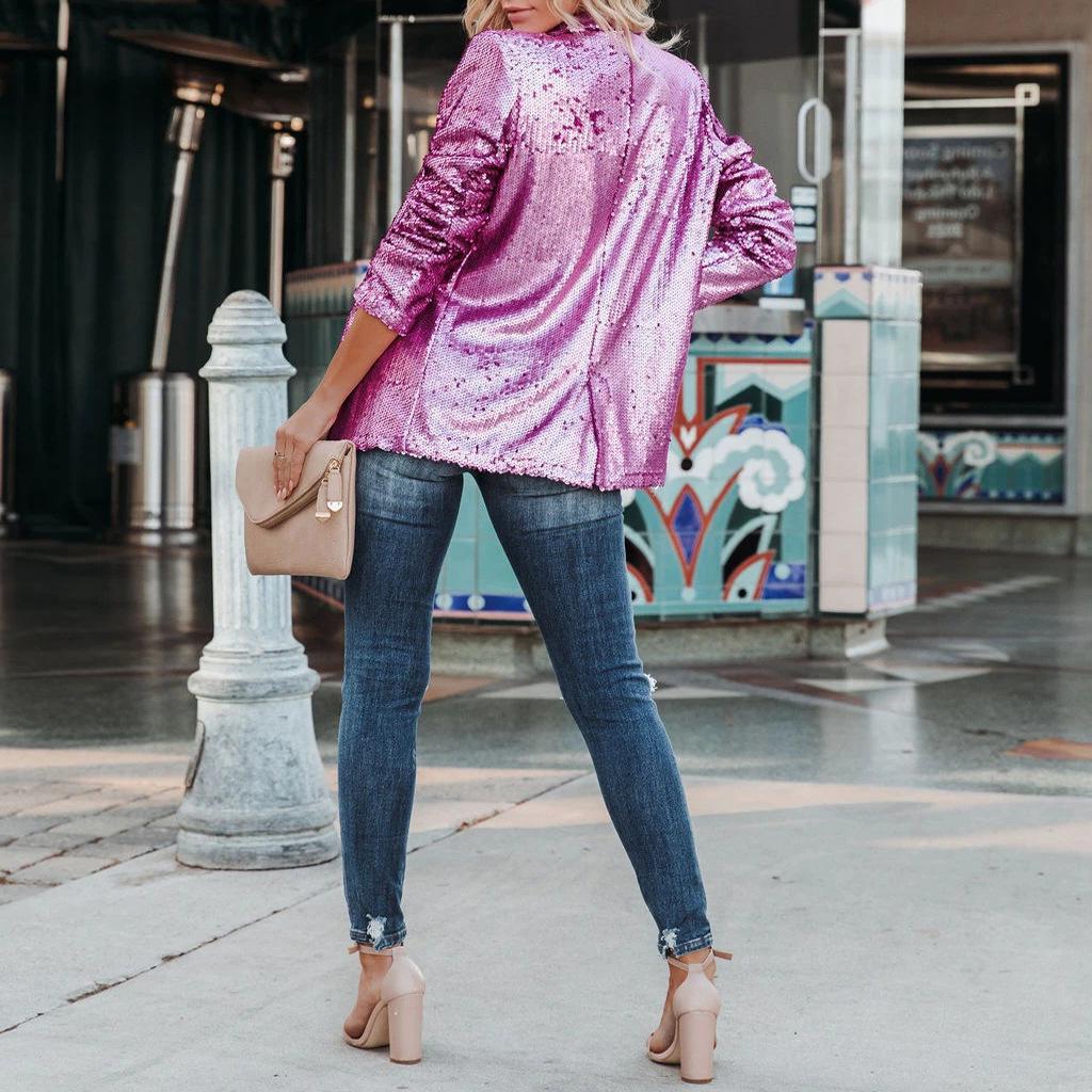 Primavera 2025 Ropa de Mujer para Exportación Transfronteriza Europea y Americana Amazon Nuevo Chaqueta Elegante Tipo Saco Pequeño de Manga Larga con Lentejuelas Multicolor