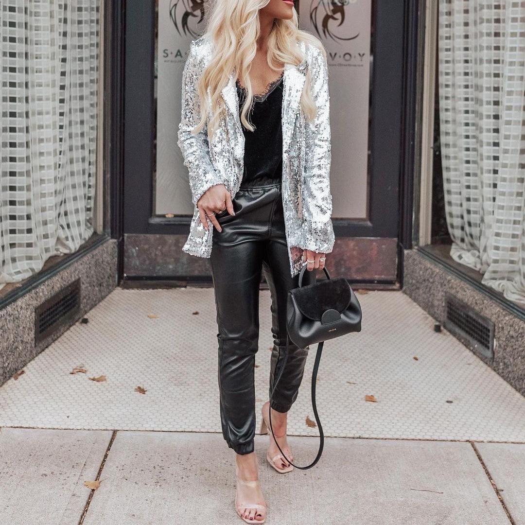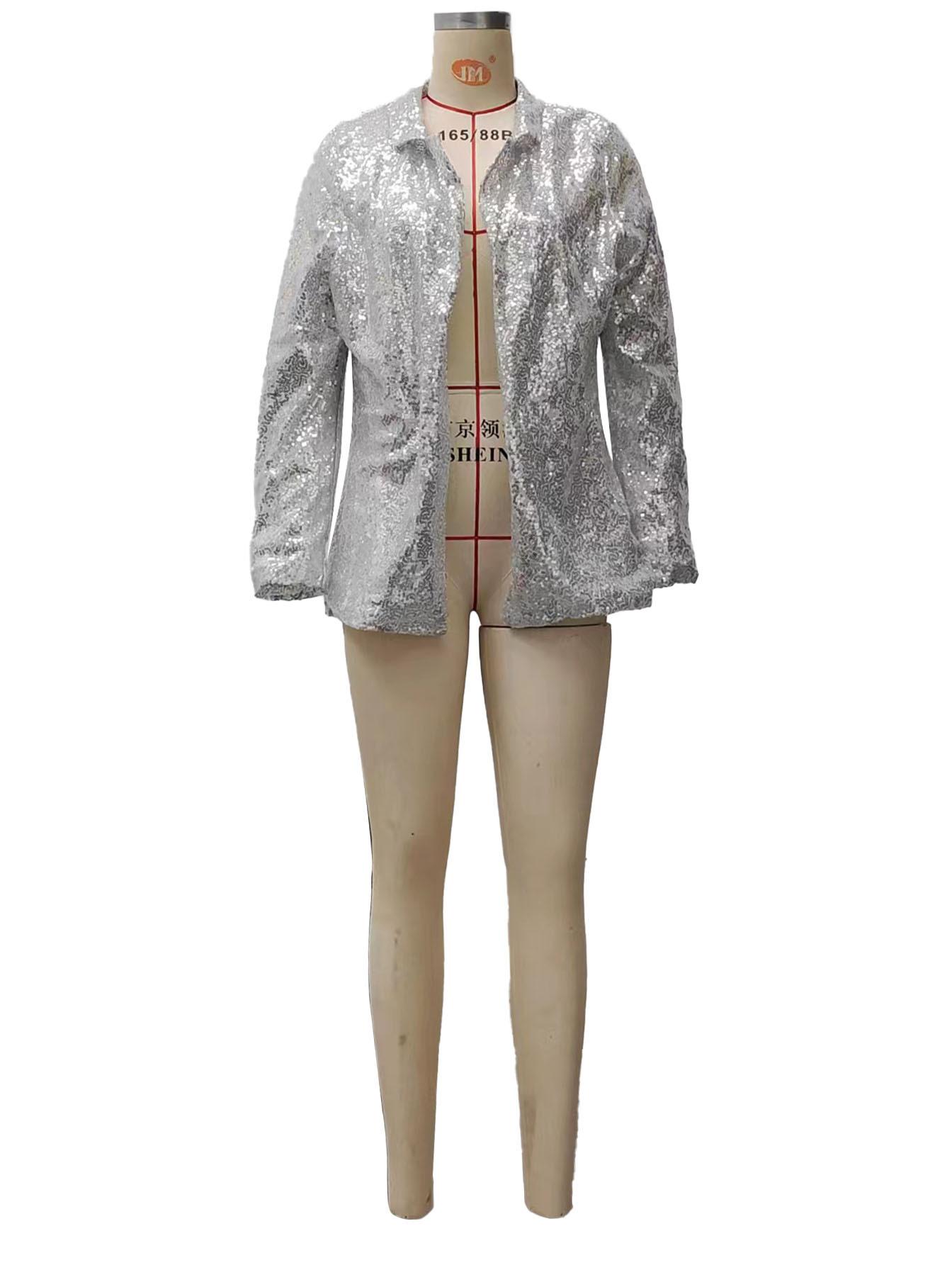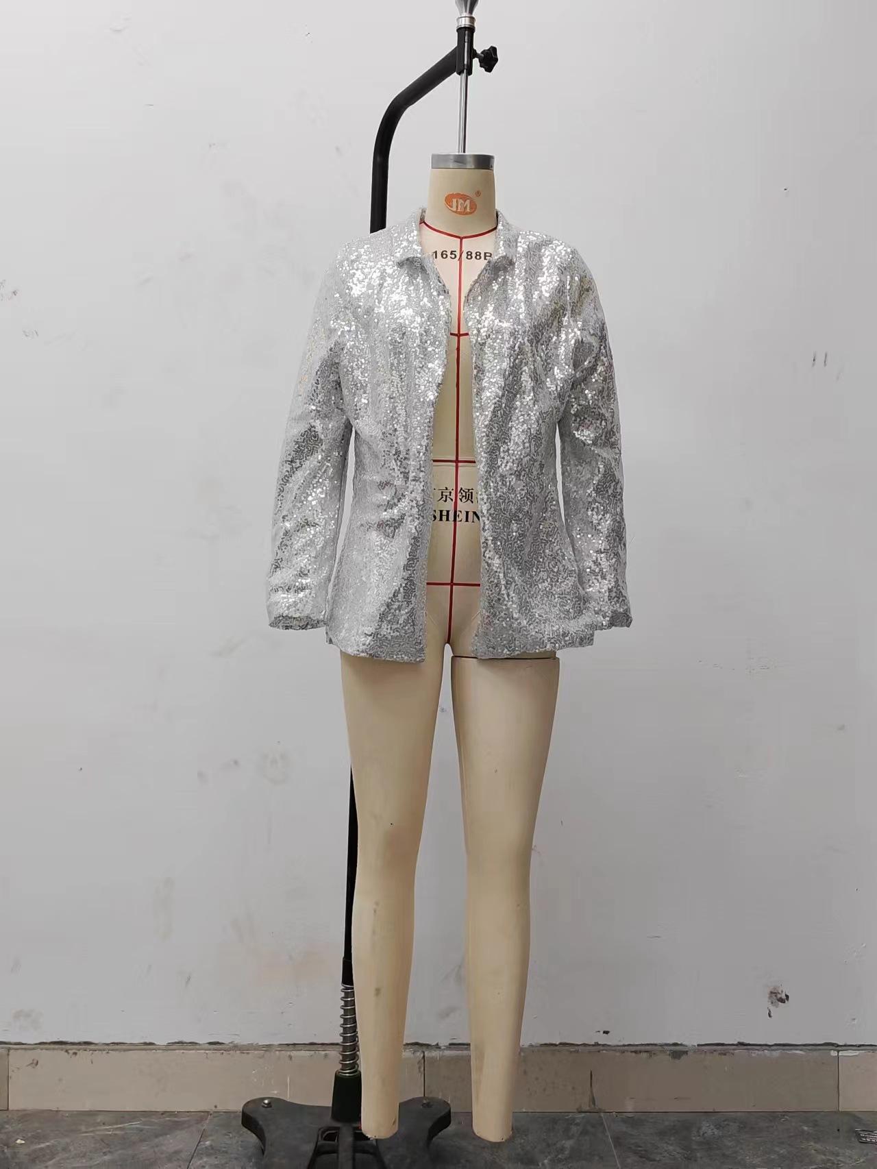 Primavera 2025 Ropa de Mujer para Exportación Transfronteriza Europea y Americana Amazon Nuevo Chaqueta Elegante Tipo Saco Pequeño de Manga Larga con Lentejuelas Multicolor