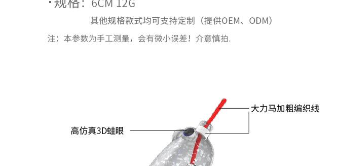 |  Pesca Black King Ventas Directas de Fábrica Señuelo Cebo Veneno Rana Trueno Modificado Cebo Blando Equipo de Pesca 6.5cm12g Rana Sapo Gran Cantidad y Buen Precio ¥4.8  Consulta los detalles |  Señuelo cebo rana trueno rana huevo flotante modificado 12g especial para pez negro matanza cebo suave punta de doble anzuelo ascendente fábrica venta al por mayor ¥3.8  Consulta los detalles |  Fabricantes mayoreo nuevo señuelo blando de 13g para rana trueno señuelo de simulación cebo agua flotante gusano de seda modificado rana gran cantidad y buen precio pesca ¥3.8  Consulta los detalles |  Nuevo cebo de pesca black king rana trueno modificado mayoreo lentejuela camarón rana 6cm11g flotante agua cebo suave pez negro especial ¥3.8  Consulta los detalles | ||