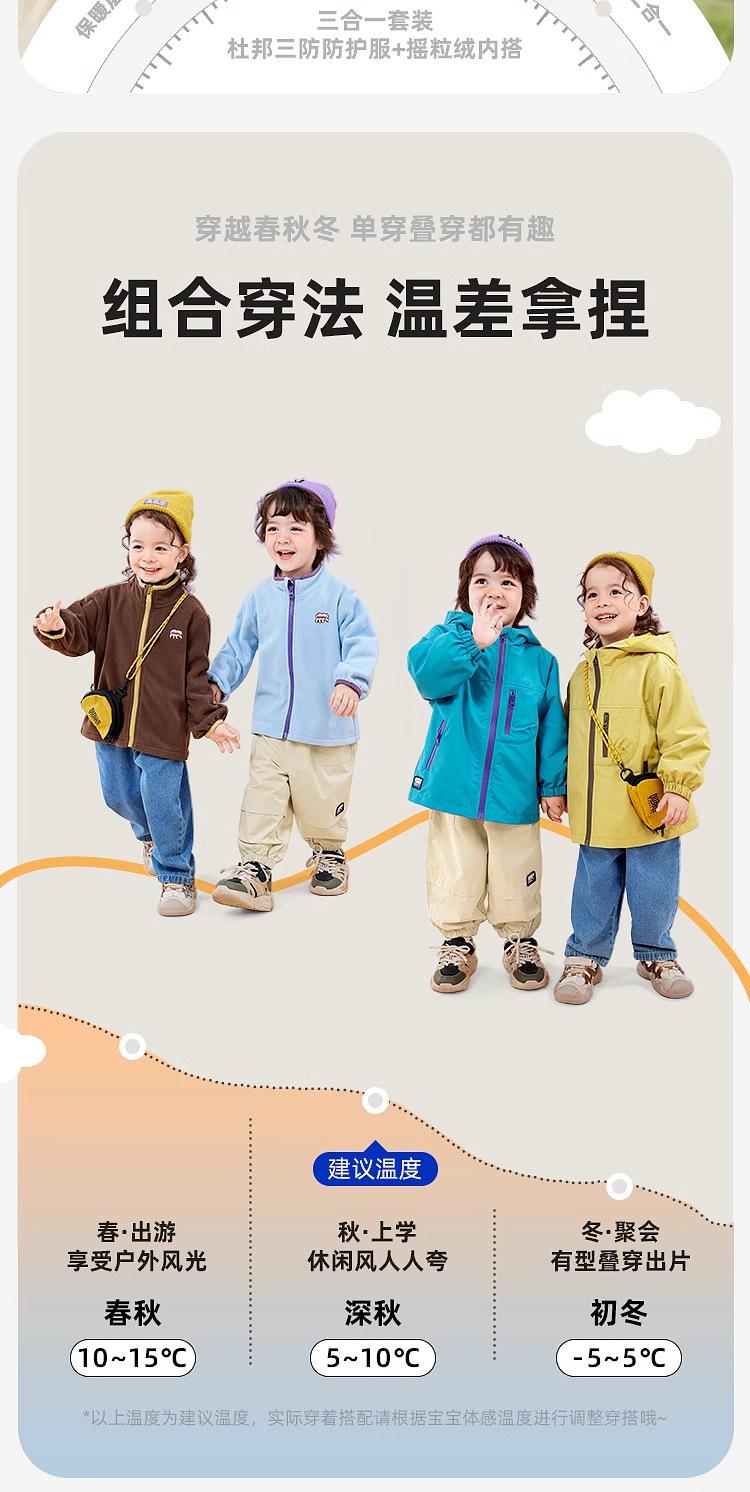 [DuPont Three Proof] Abrigo infantil Doodle Family, otoño/invierno, para niños, tres piezas, abrigo interior de invierno para niñas, ropa infantil