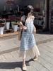Vestido de verano para mujer, estilo festivo, con cordones y cuadros, nuevo, de dos piezas, con costuras en contraste de color, elegante, de longitud media