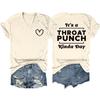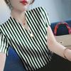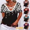 Comercio Exterior Casual Estampado de Doble Cara Cuello en V Elegante Manga Corta Es un Puñetazo en la Garganta Verano Nuevo Camiseta de Mujer