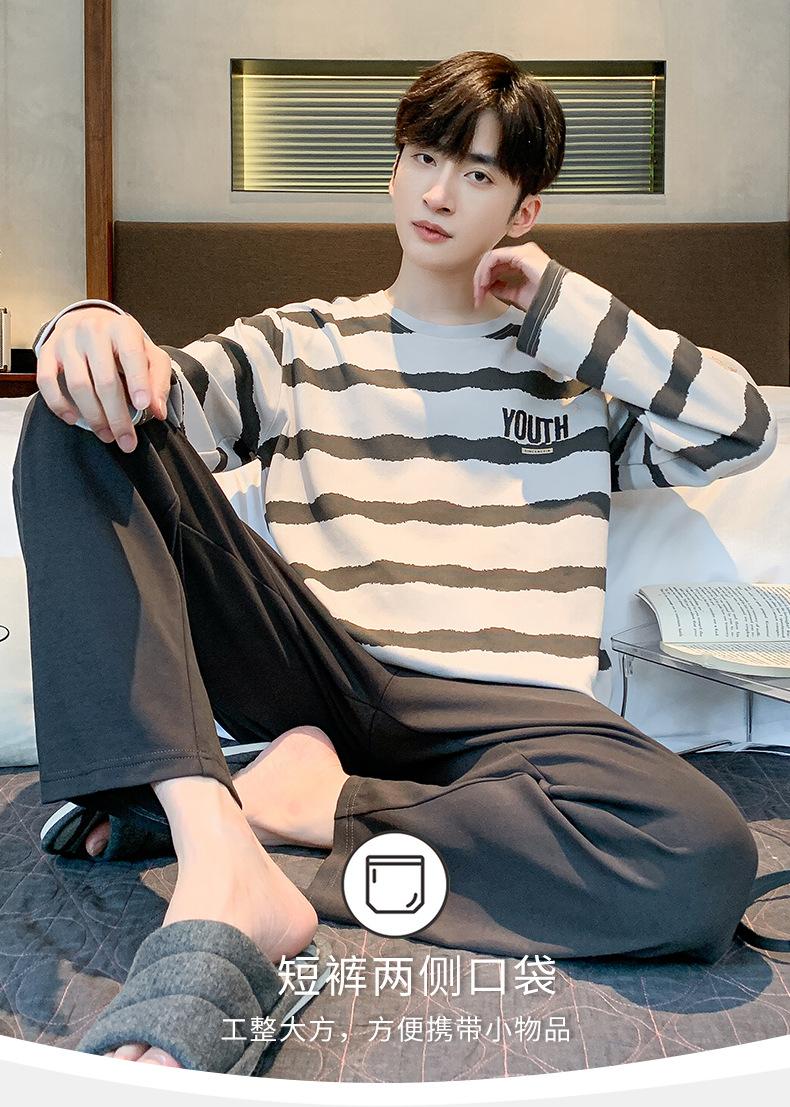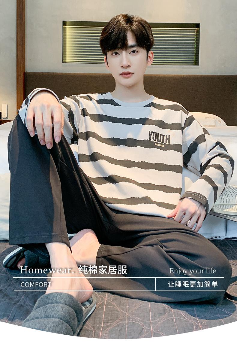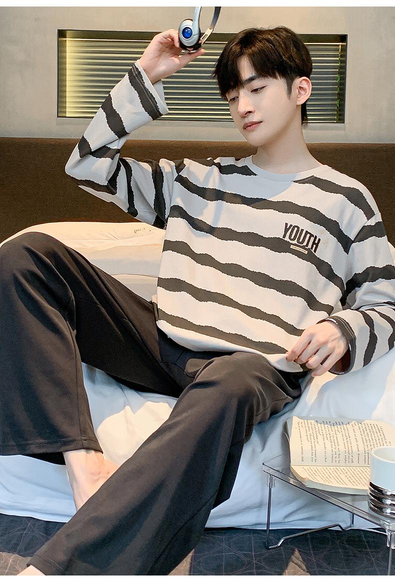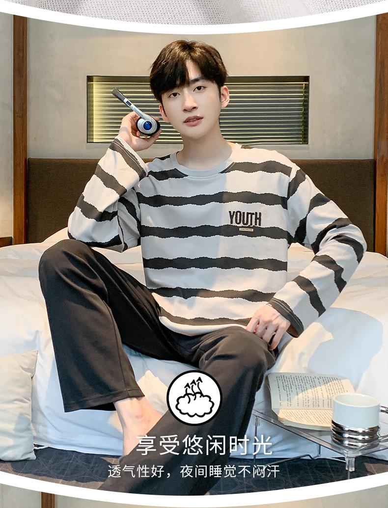 Pijamas para hombre, primavera y otoño, de algodón puro, de manga larga, para adolescentes, de algodón, cuello redondo, holgados, de talla grande, ropa de casa, traje