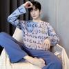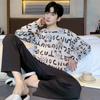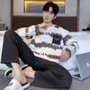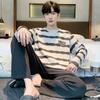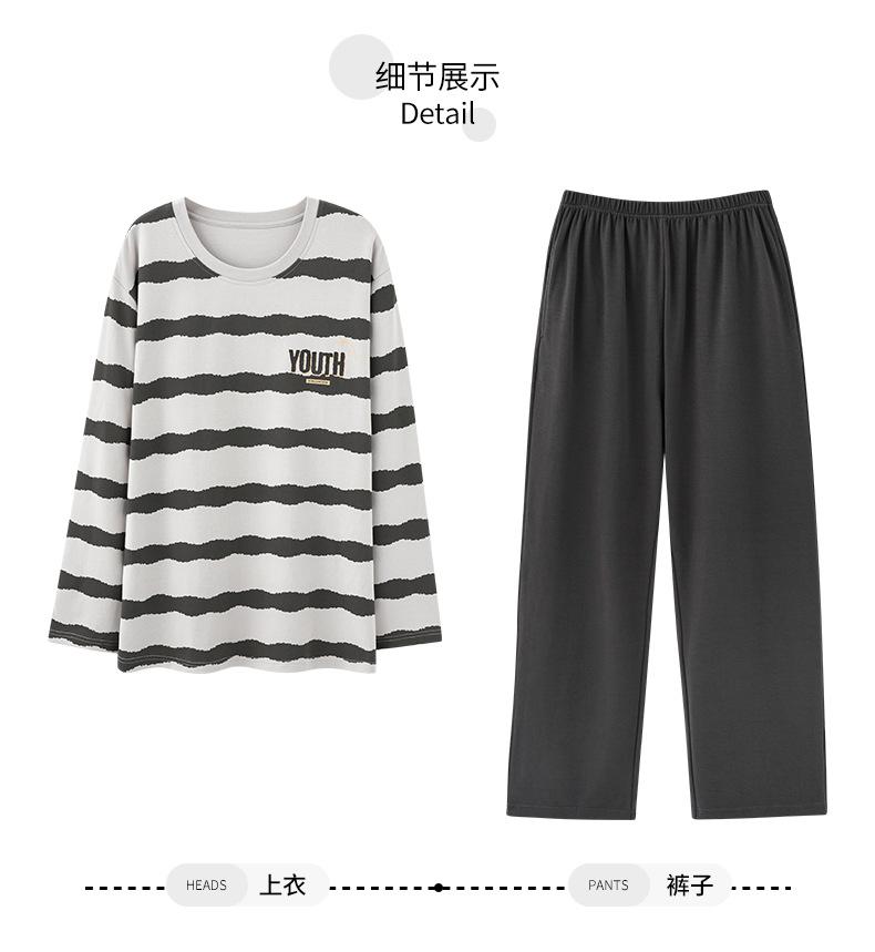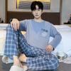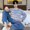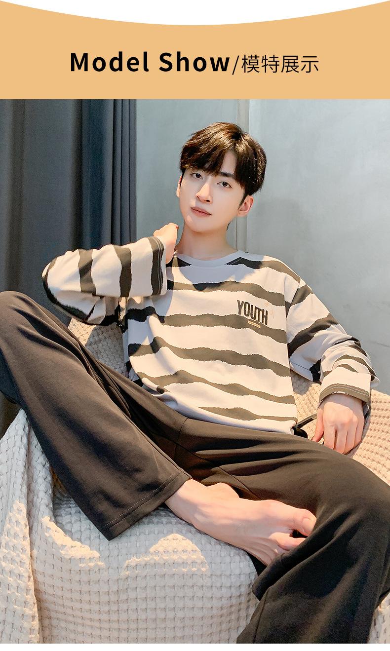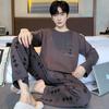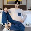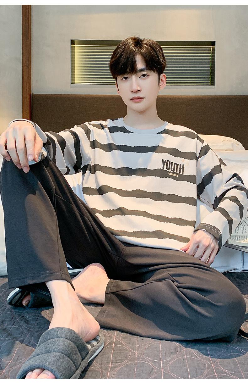 Pijamas para hombre, primavera y otoño, de algodón puro, de manga larga, para adolescentes, de algodón, cuello redondo, holgados, de talla grande, ropa de casa, traje