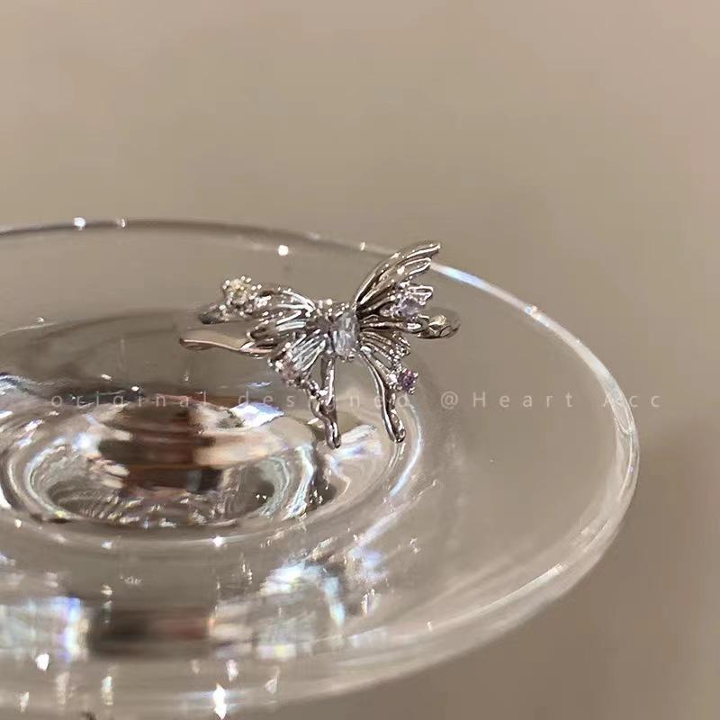 Anillo de mariposa tridimensional líquido irregular diseño nicho sentido avanzado apertura ajustable viento frío claro anillo rojo de internet