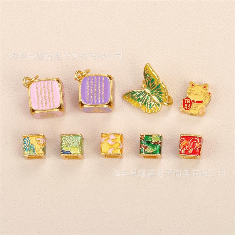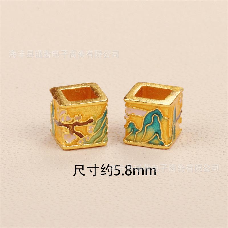 Accesorios de plata S925 con cinco cuentas con orificios pasantes, espaciador cuadrado, cuentas con clip de cuerda ensanchadas, botón de juego, accesorios de plata