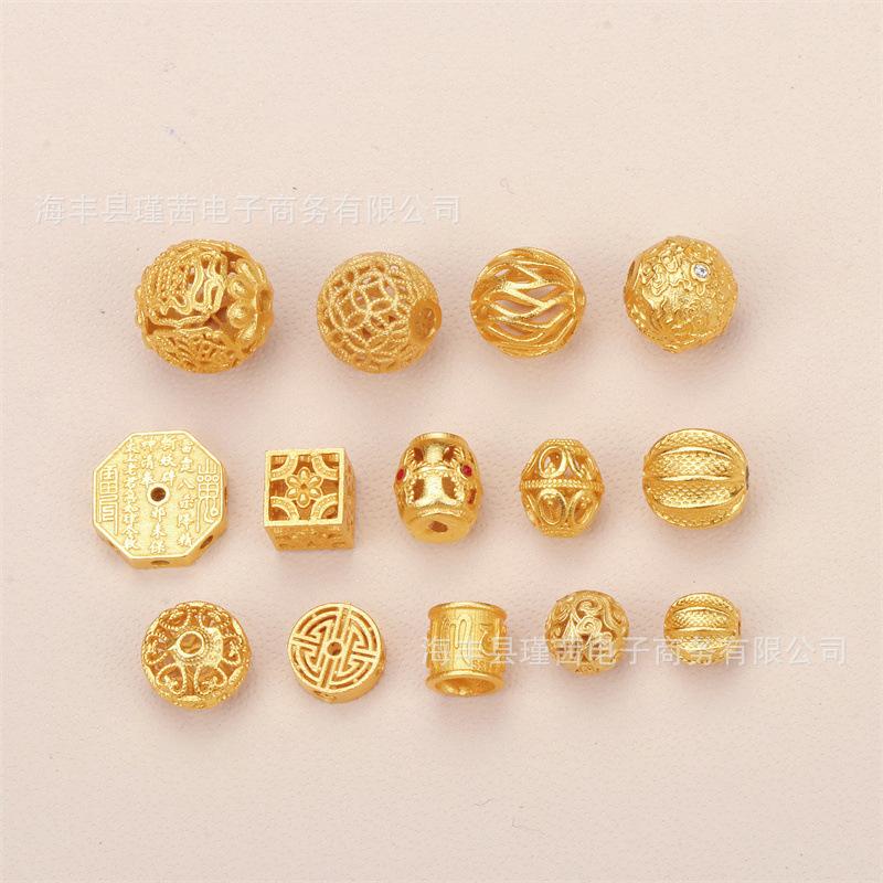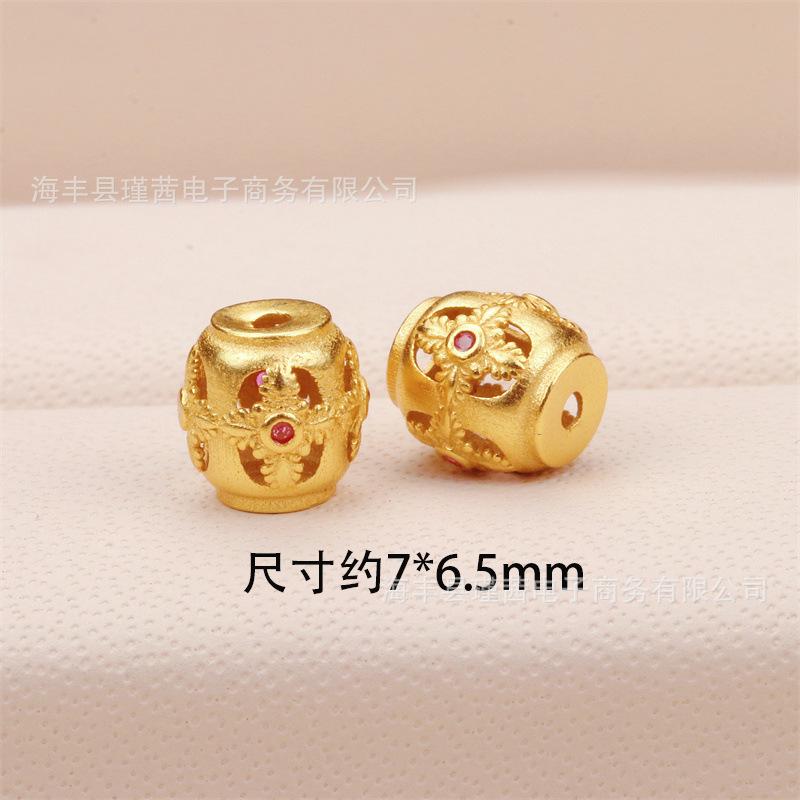 Accesorios de cuentas huecas de plata s925, espaciador de agujero pasante vintage, pulsera de cuentas DIY, collar, accesorios de oro antiguo