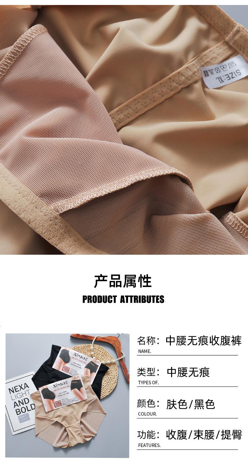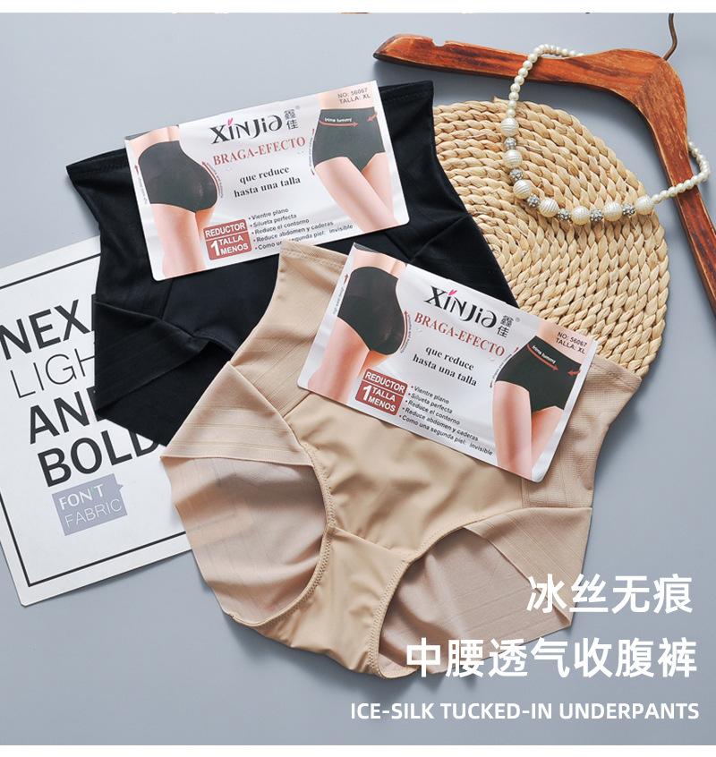 Pantalones de control de abdomen sin costuras de cintura media de Amazon Xinjia para adelgazar el vientre y moldear el cuerpo, ropa interior moldeadora de cuerpo de seda de hielo fina, comercio exterior transfronterizo |