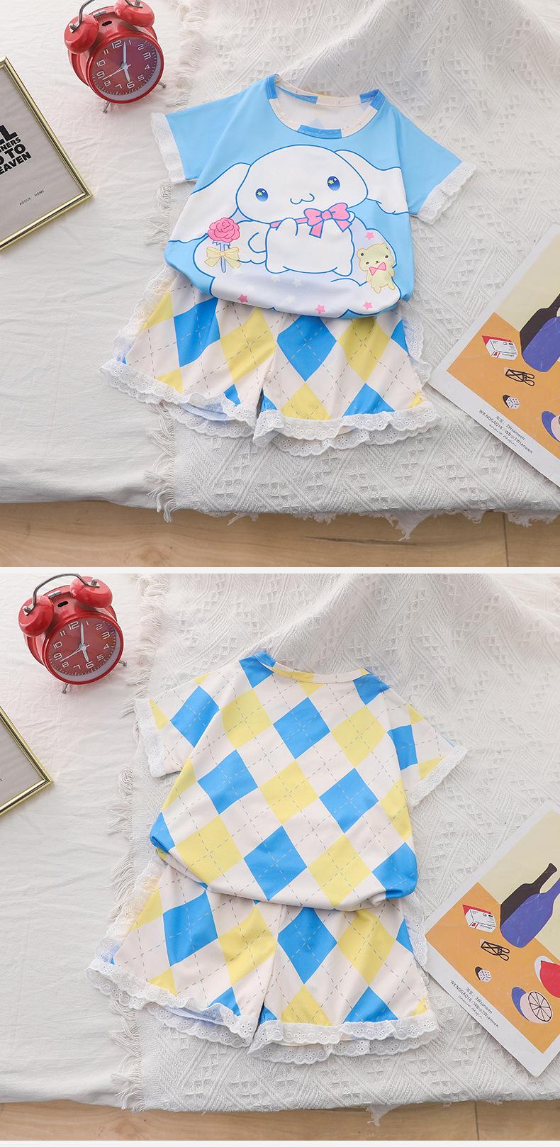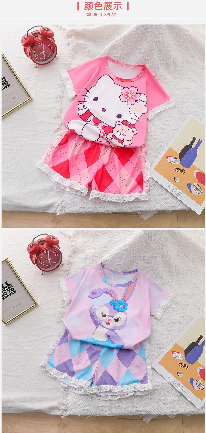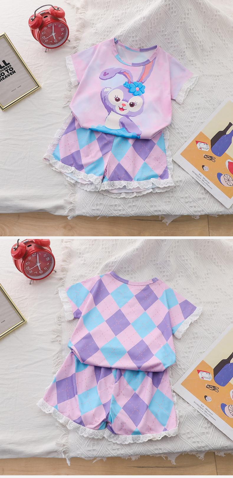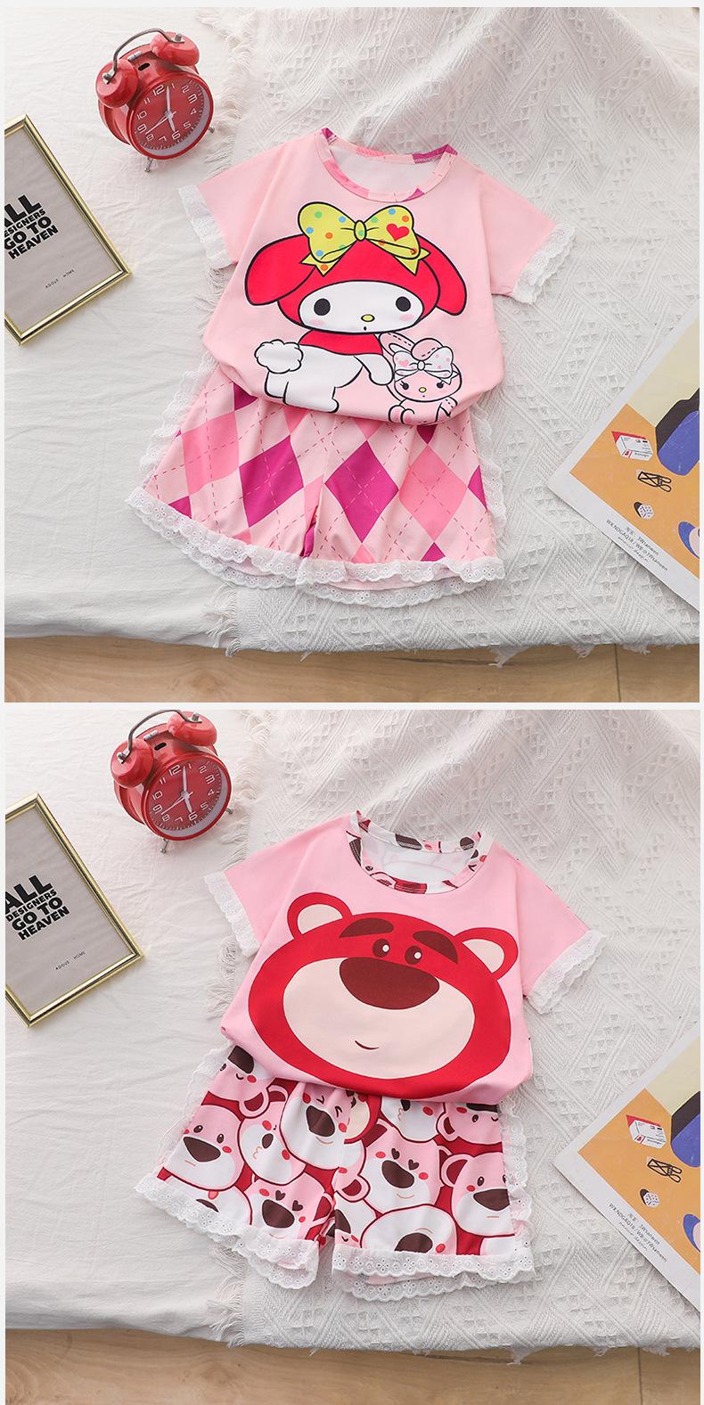 Pijamas de verano de jacquard para niñas, traje para niñas, de manga corta, finos, bonitos, de estilo princesa con dibujos animados, ropa de verano para el hogar