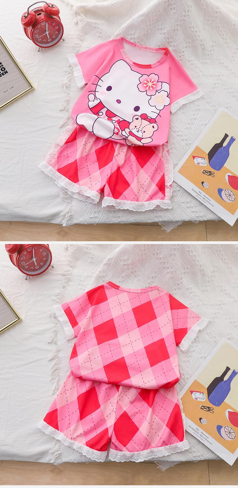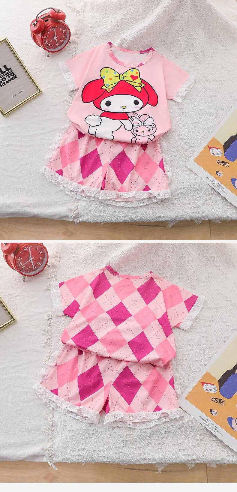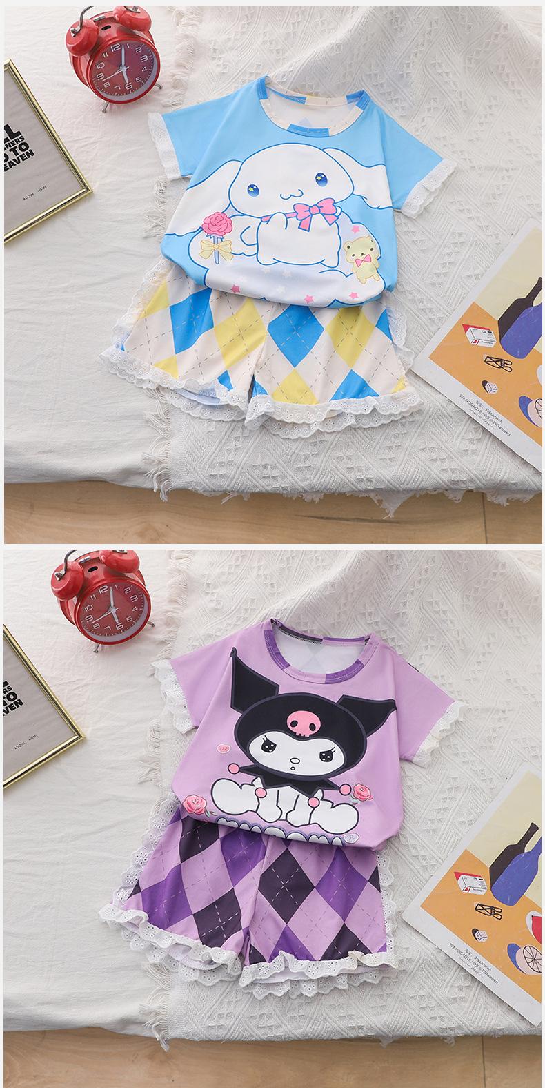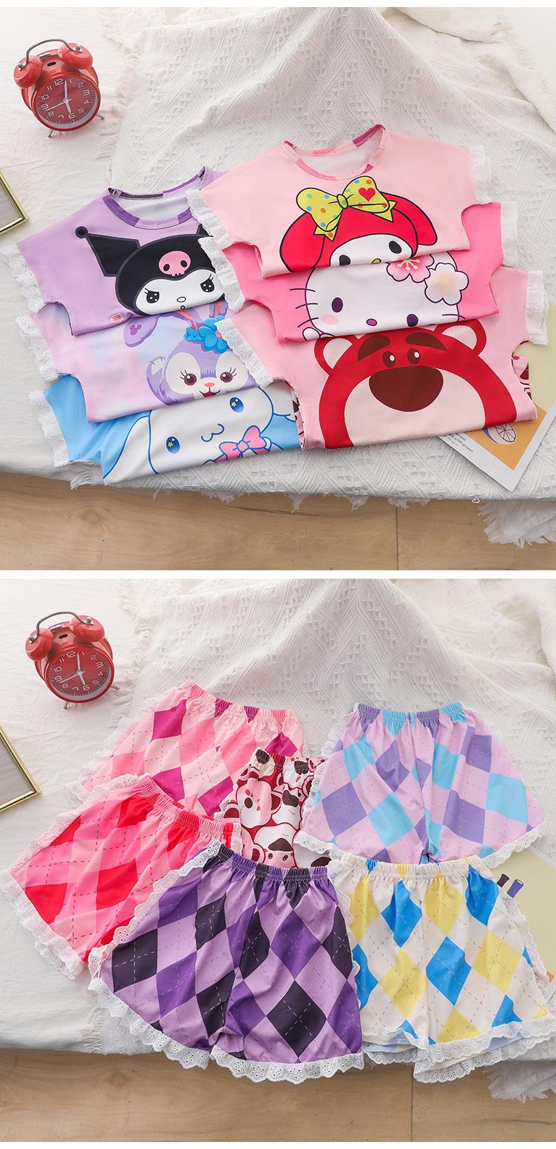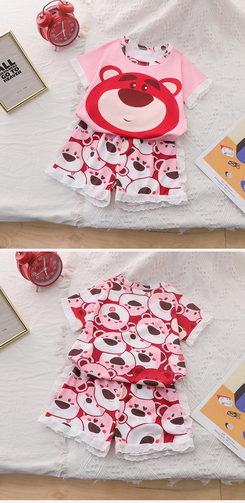 Pijamas de verano de jacquard para niñas, traje para niñas, de manga corta, finos, bonitos, de estilo princesa con dibujos animados, ropa de verano para el hogar