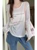 Camiseta de Manga Larga Estilo Coreano Relajado con Letra Blanca para Mujer Verano Fuera del Hombro Holgada Delgada Protector Solar Blusa Top Casual