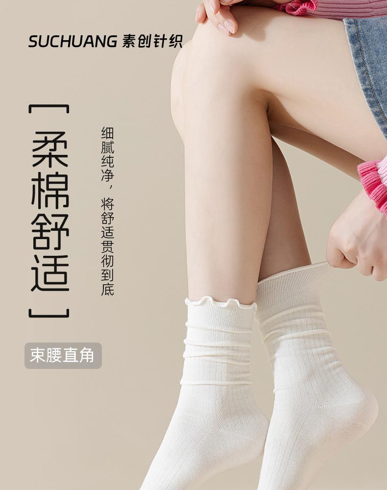 Calcetines para Mujer Primavera y Otoño Calcetines de Encaje Sueltos Calcetines de Algodón Calcetines de Rizo para Mujer Calcetines Transpirables Absorbentes del Sudor Calcetines de Algodón para Confinamiento