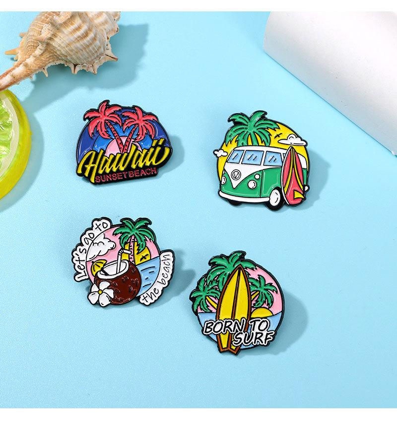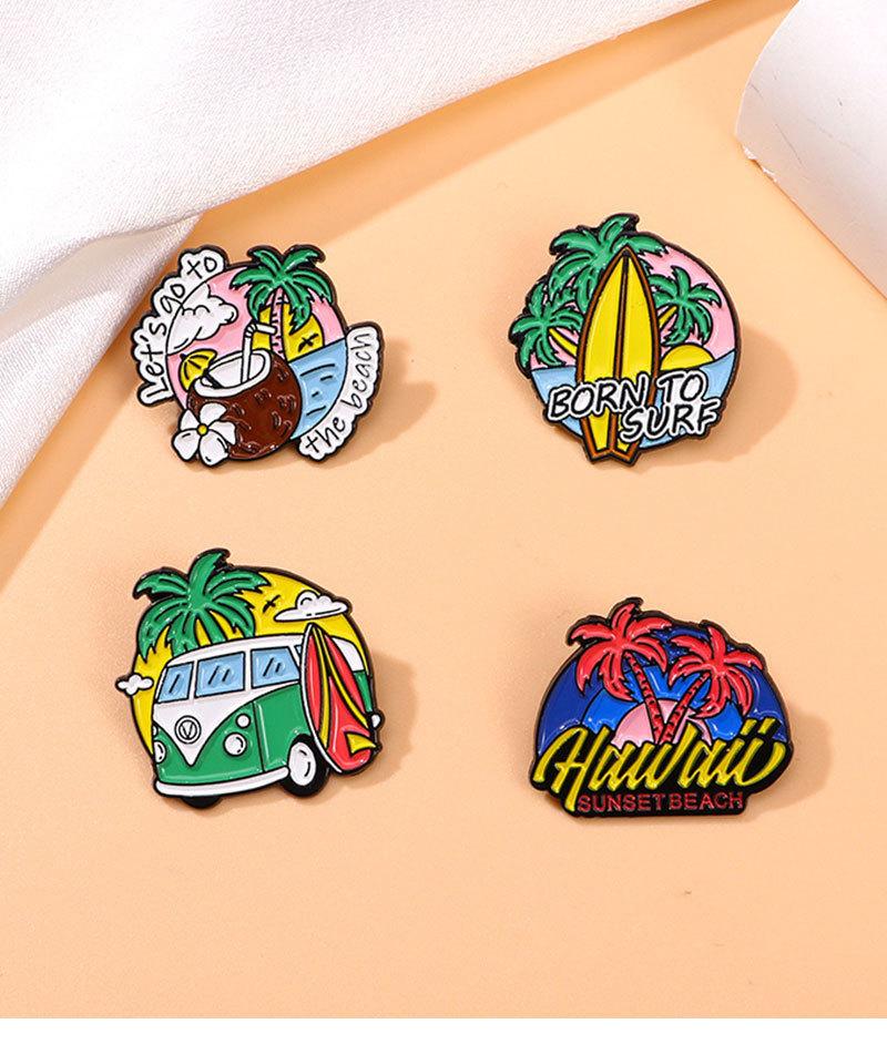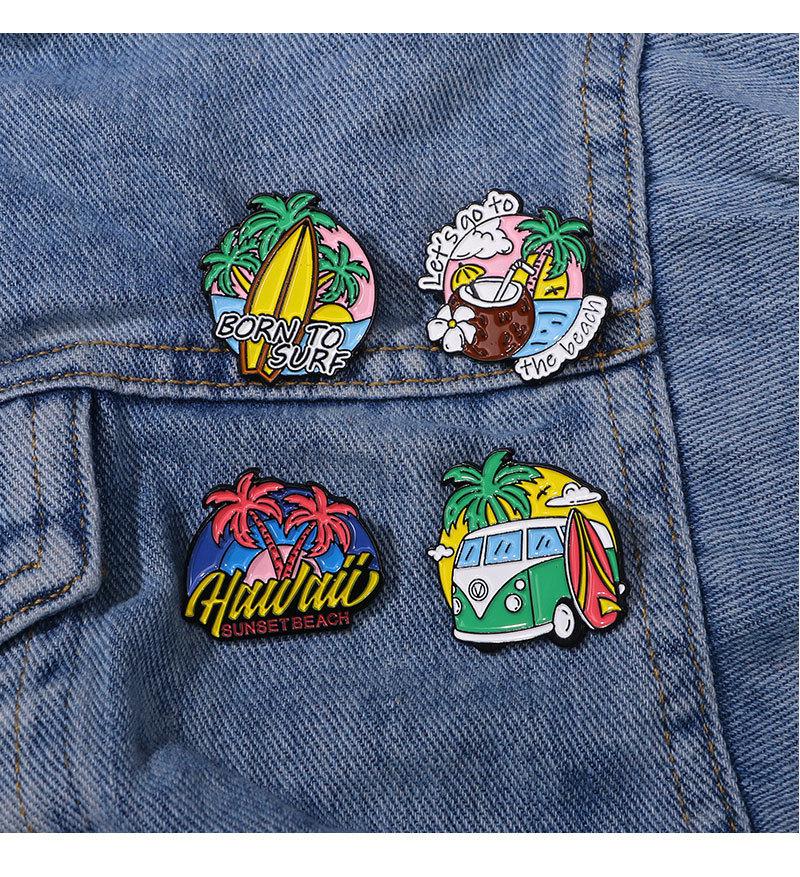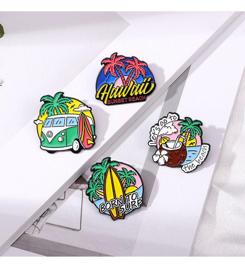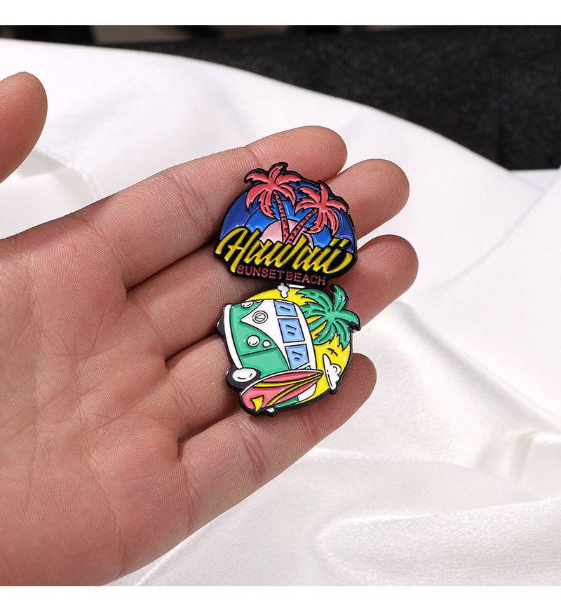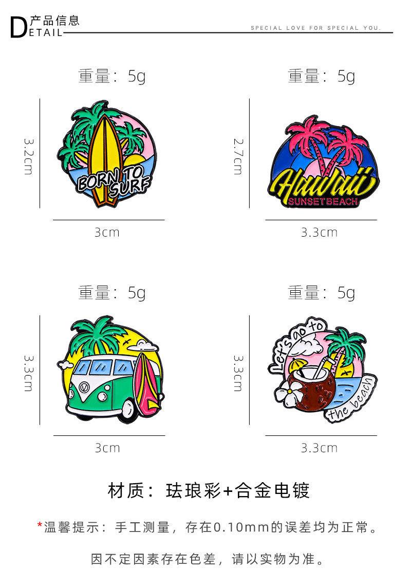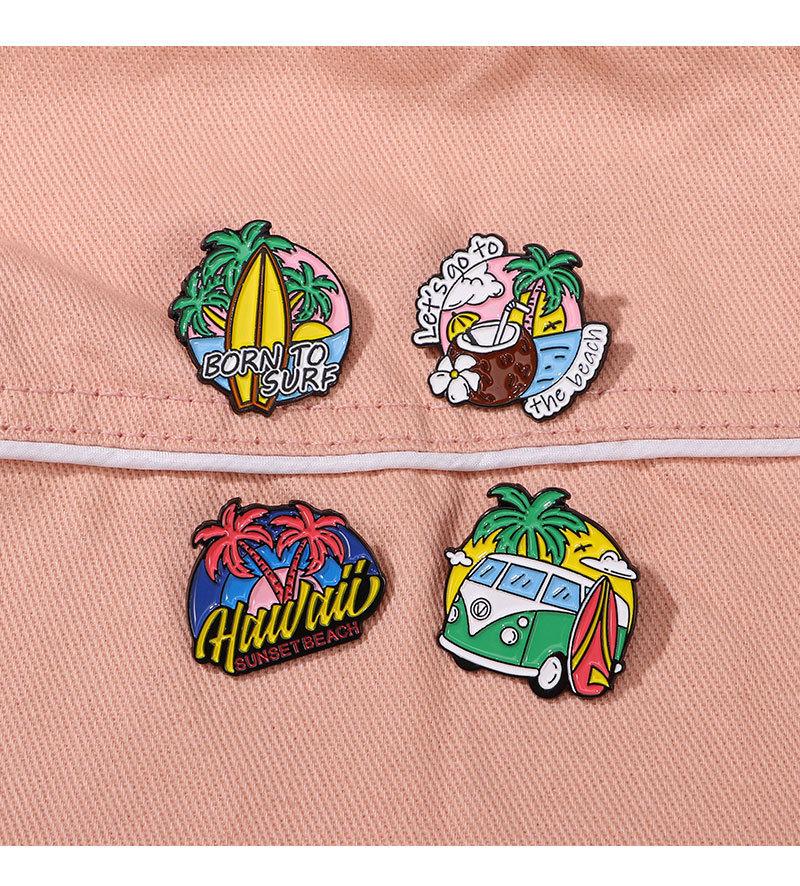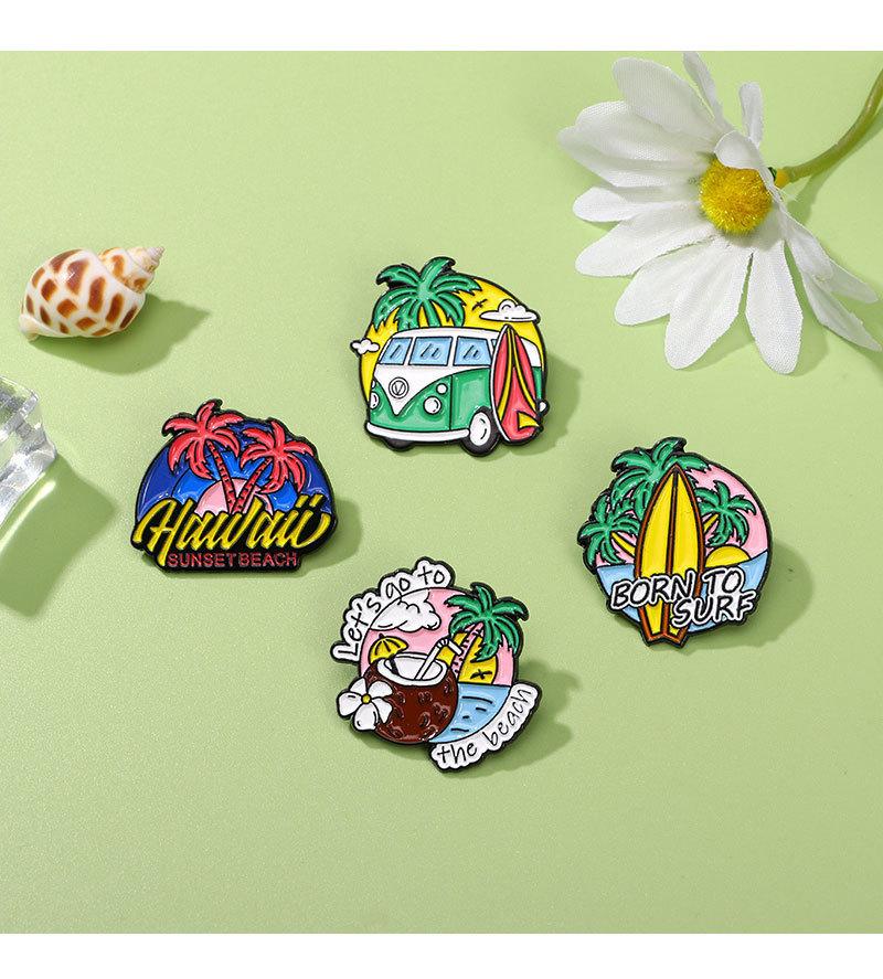 Insignia de Dibujos Animados de Hainan Serie Vacaciones Recuerdos de Viaje Playa de Sanya Cocotero Broche Surf Decoración de Mochila