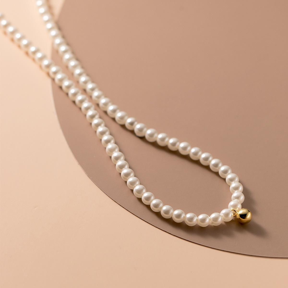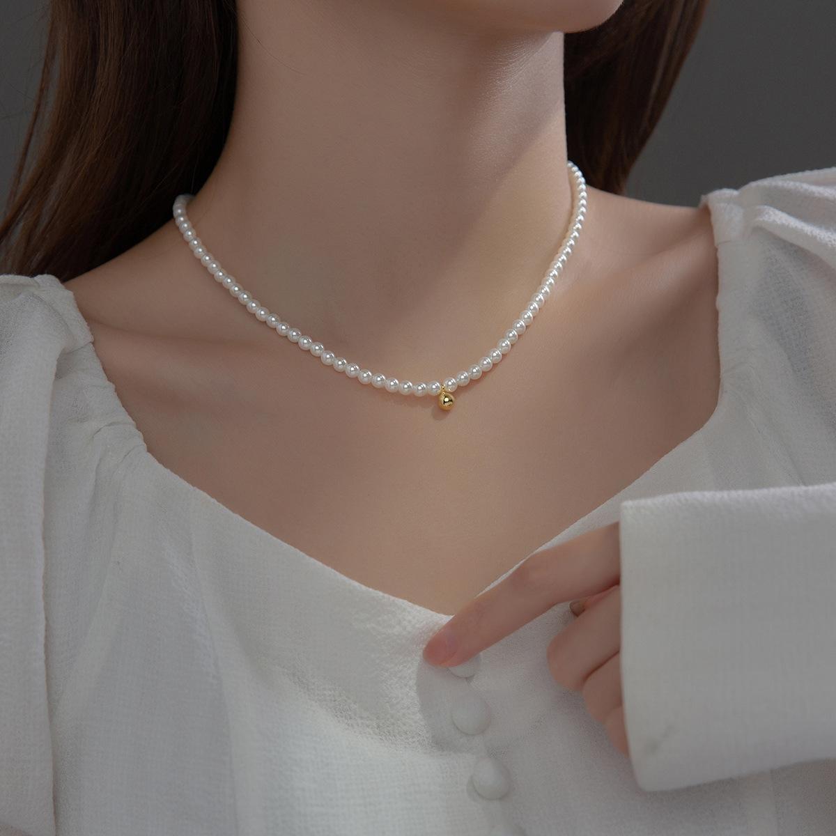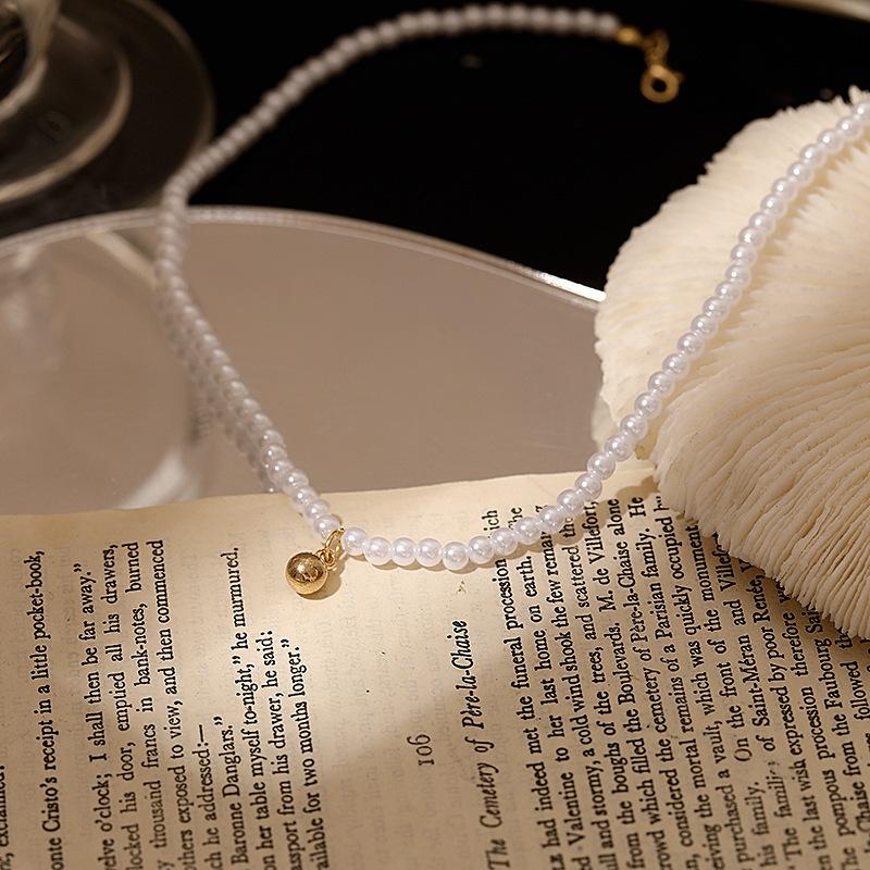 Collar de perlas de estilo coreano para mujer, cadena de clavícula con colgante de bola dorada retro francesa de nicho de alta gama, collar de moda