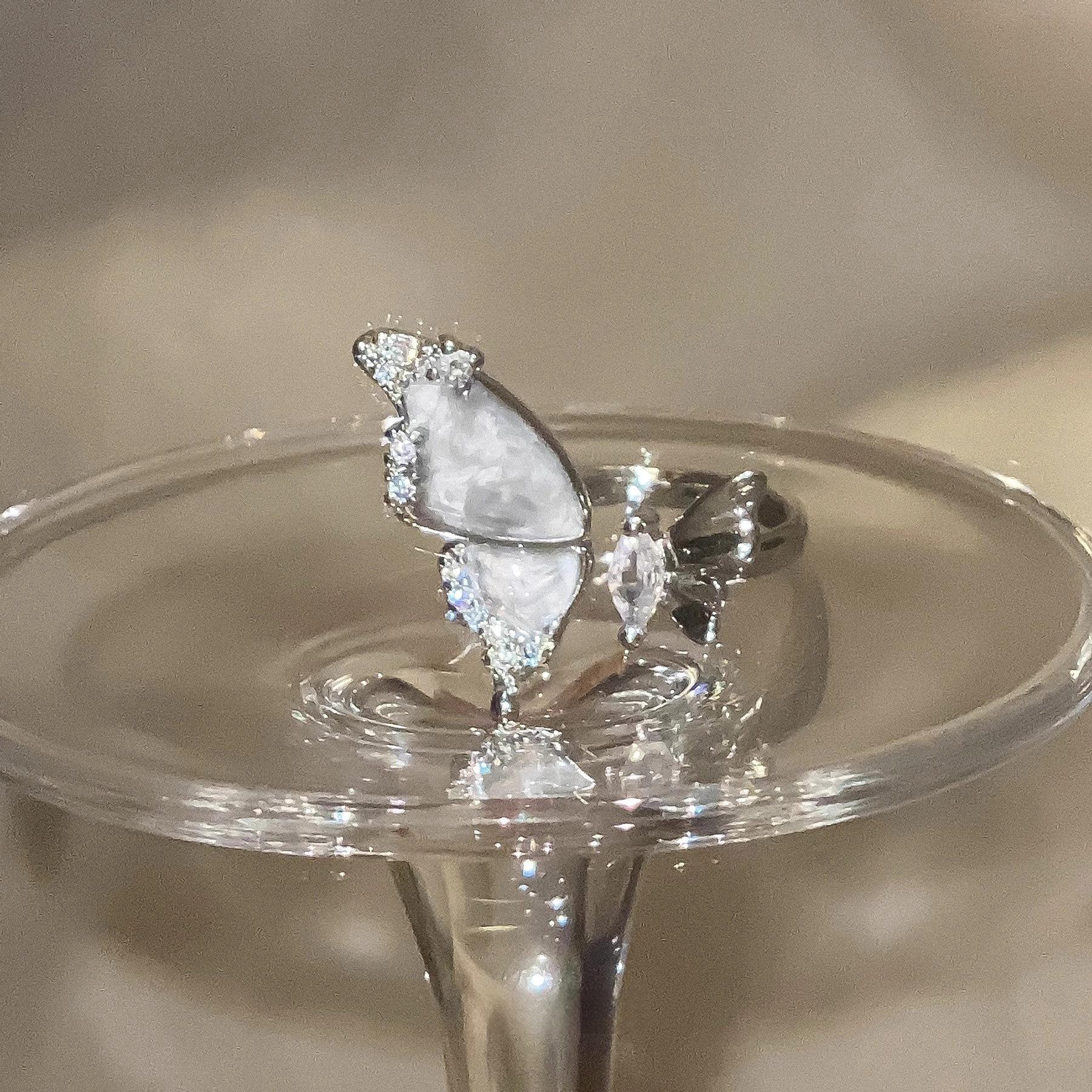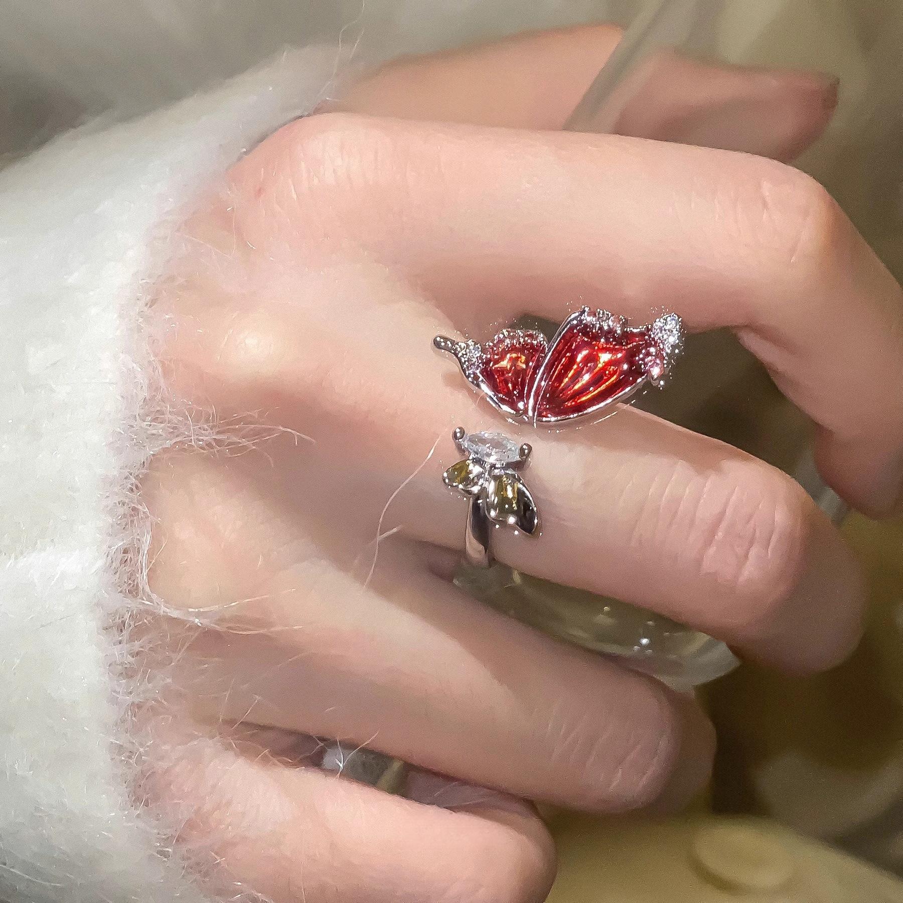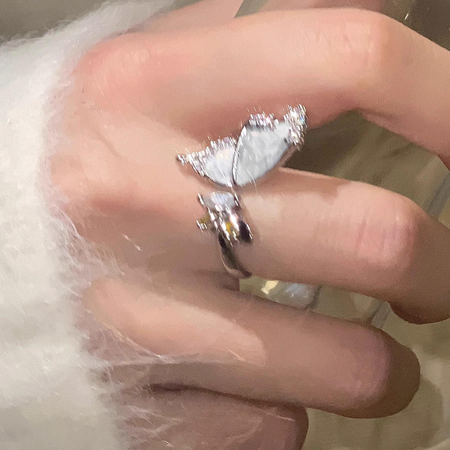 Exquisito Anillo Abierto de Mariposa de Zircón para Mujer Diseño de Nicho con Sentido de la Moda Anillo Ins Estilo Frío Anillo con Sentido de Alta Gama