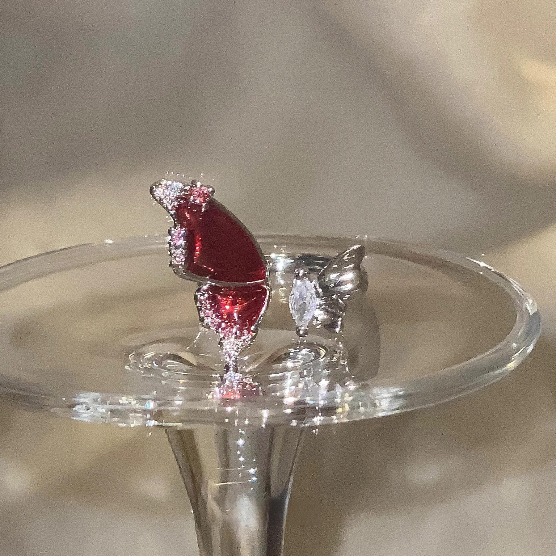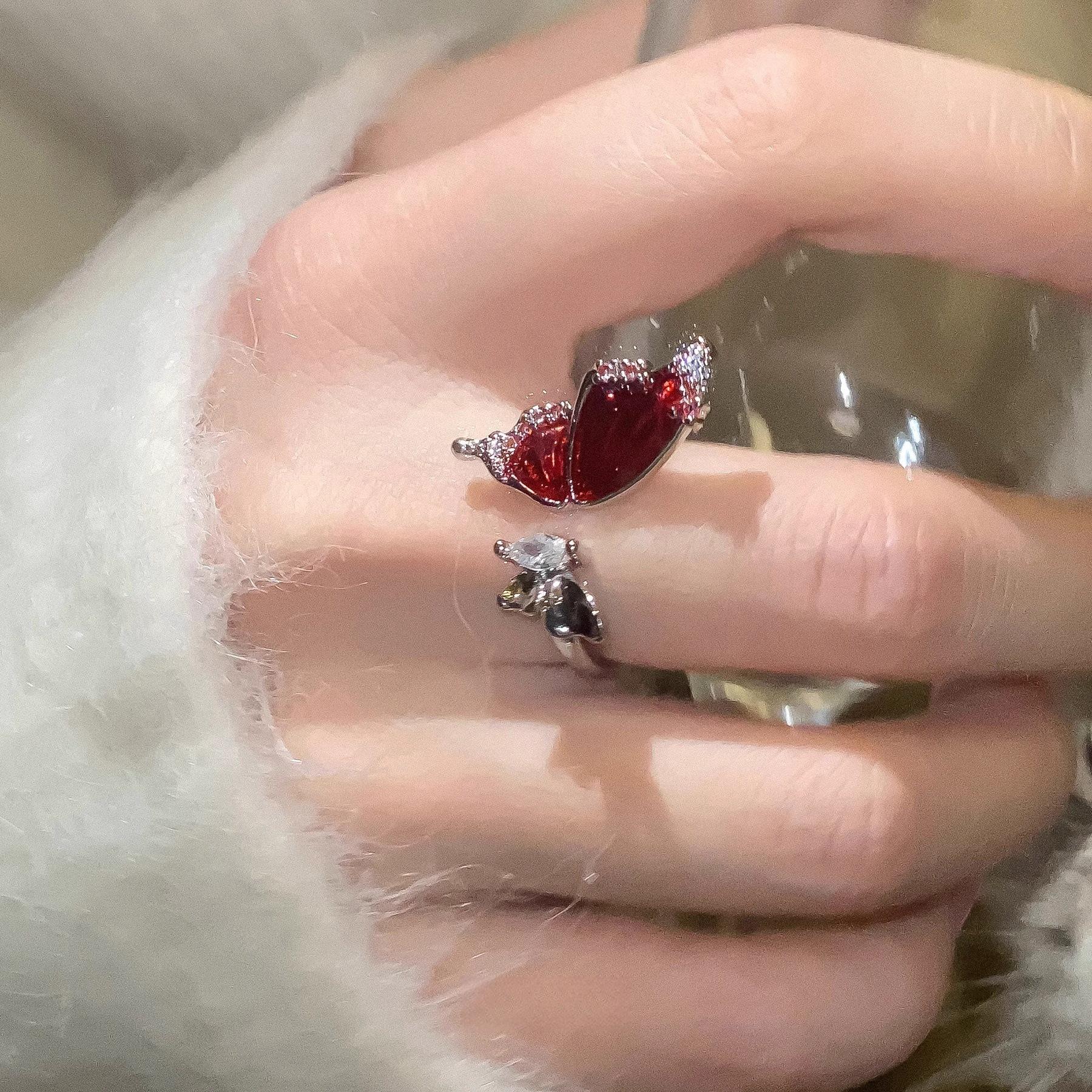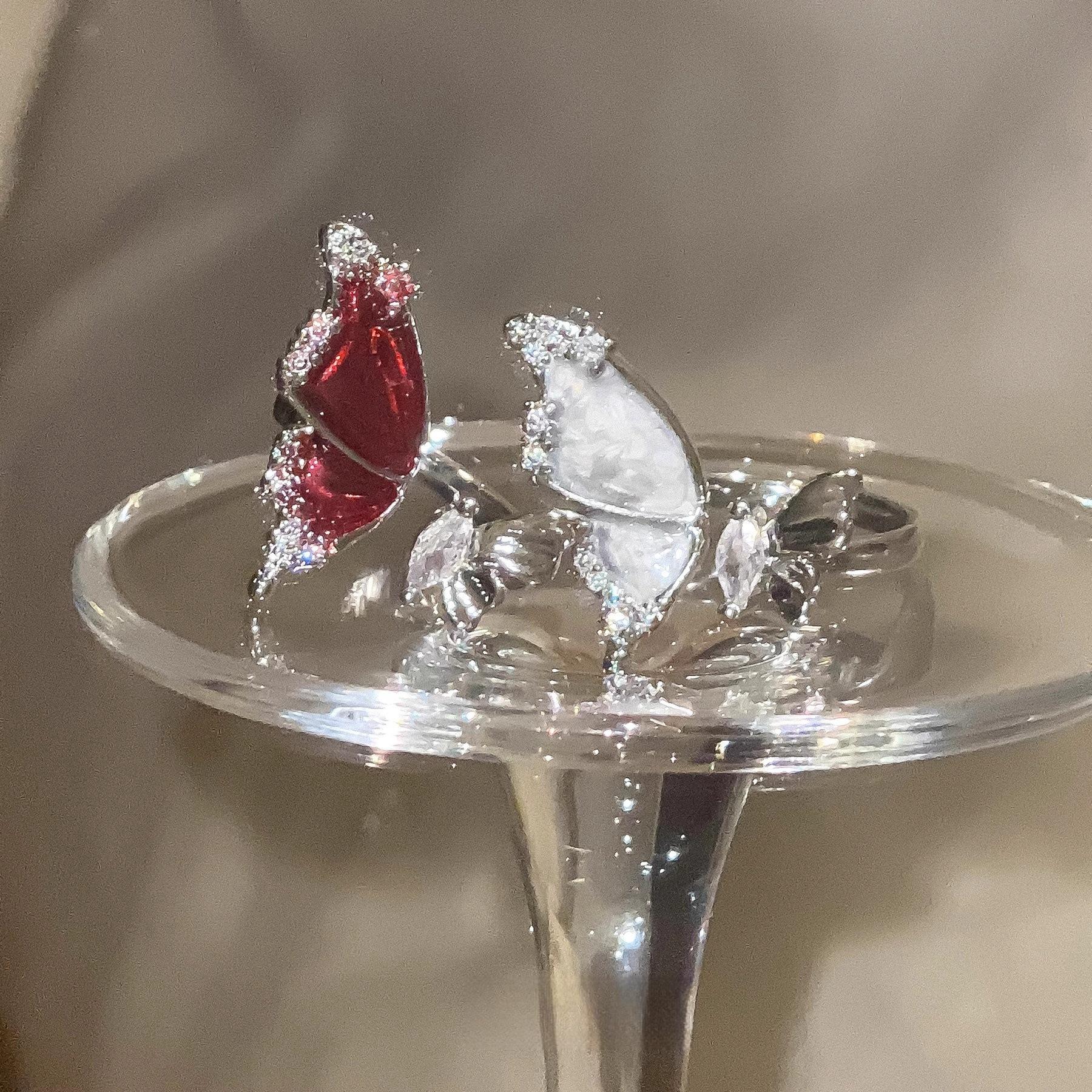 Exquisito Anillo Abierto de Mariposa de Zircón para Mujer Diseño de Nicho con Sentido de la Moda Anillo Ins Estilo Frío Anillo con Sentido de Alta Gama