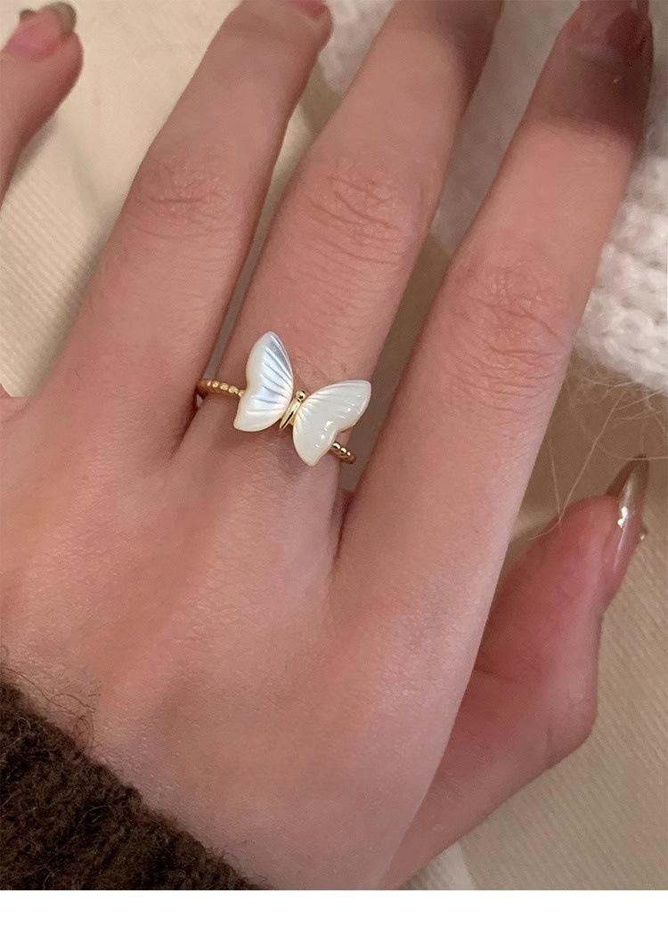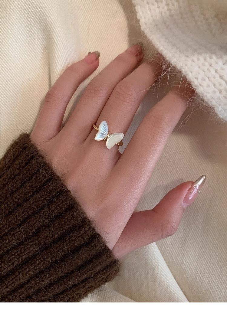 Anillo de Mariposa con Esmalte de Gota Madreperla para Mujer Moda de Lujo Ligero Diseño de Nicho Sensación Anillo para Dedo Suave Elegante Anillo para Dedo Joyería de Moda