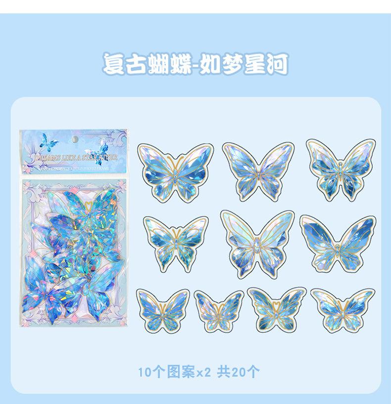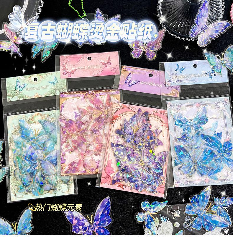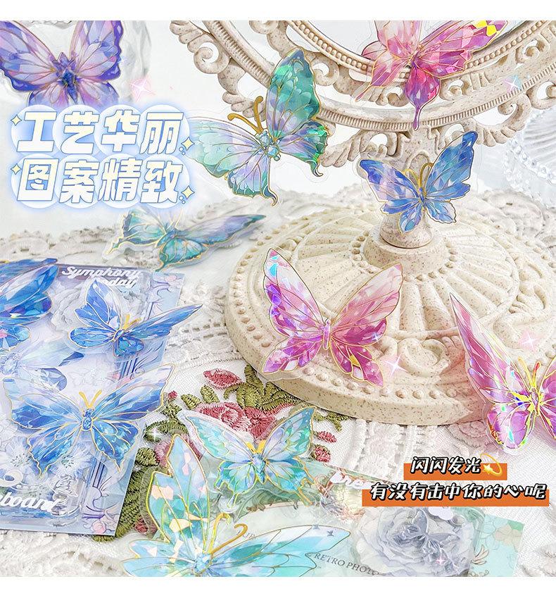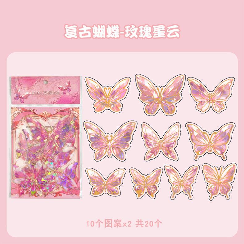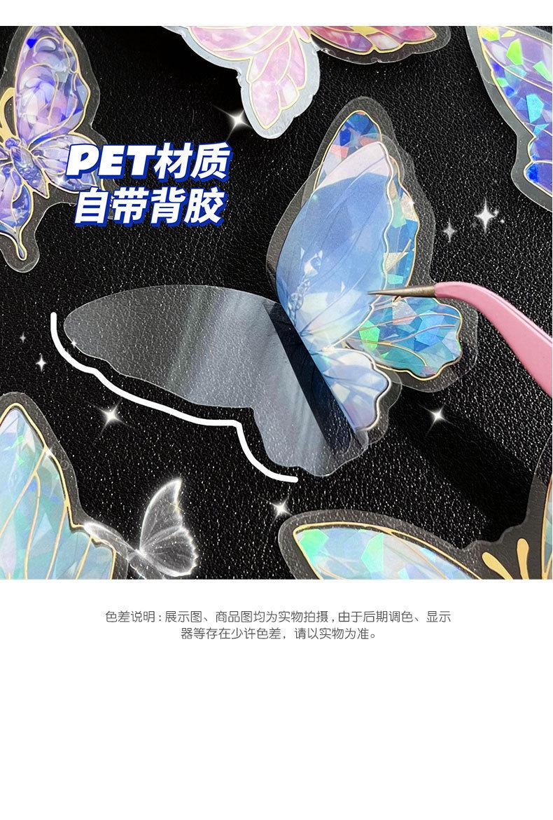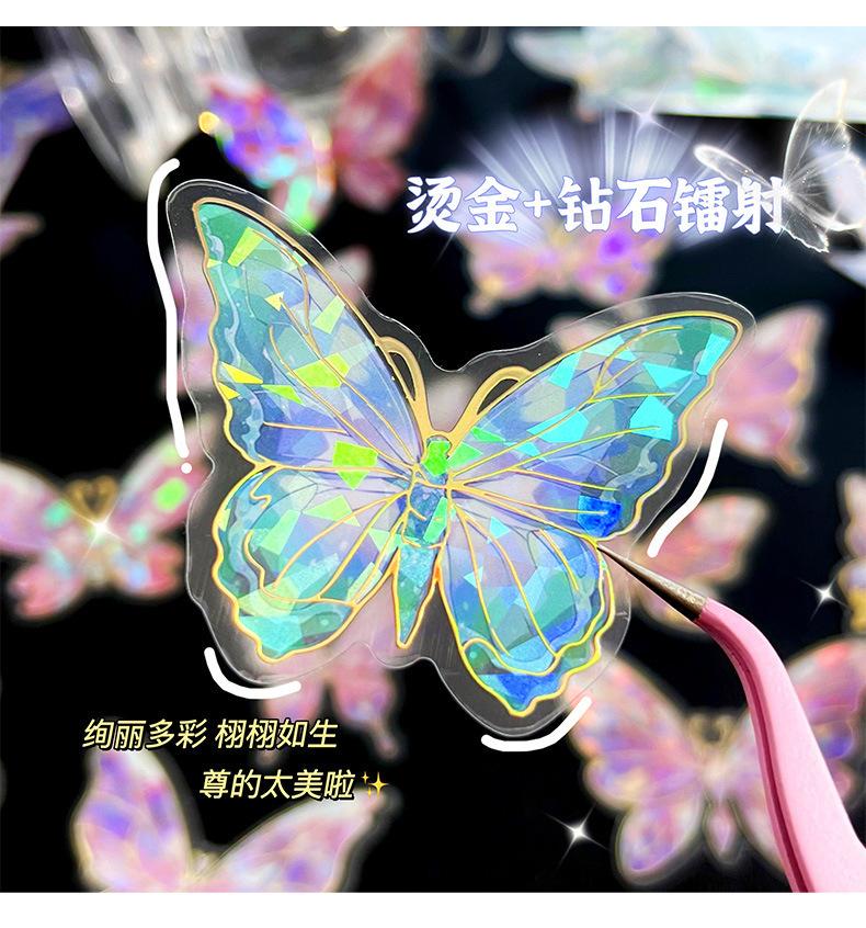 Pegatinas láser bronceadoras tridimensionales de PET con forma de mariposa retro coloridas, material de decoración de cuenta manual para bricolaje, material de fondo, pegatinas pequeñas