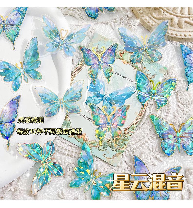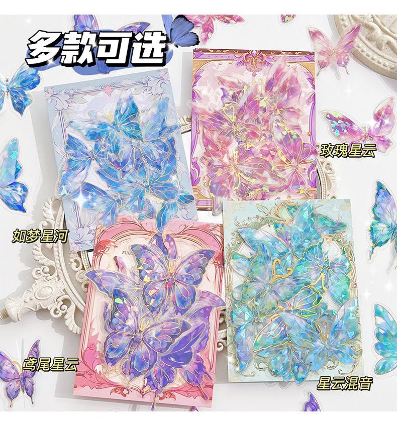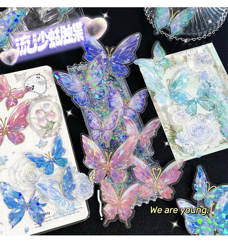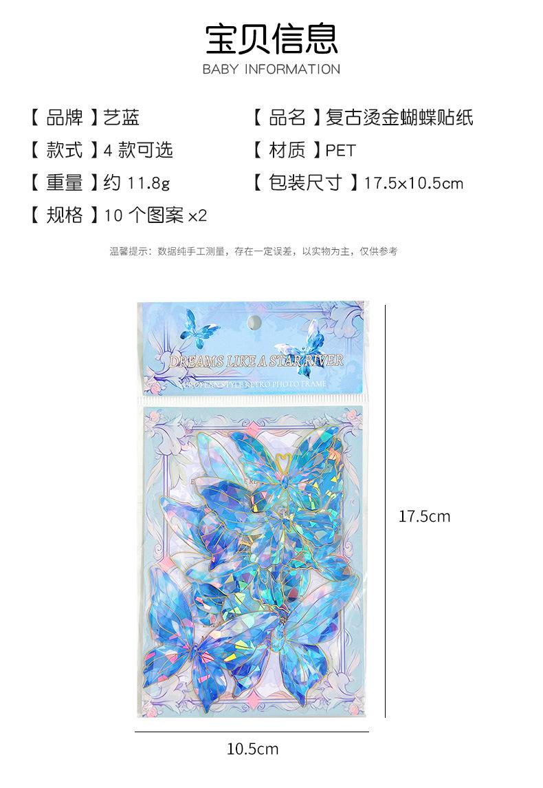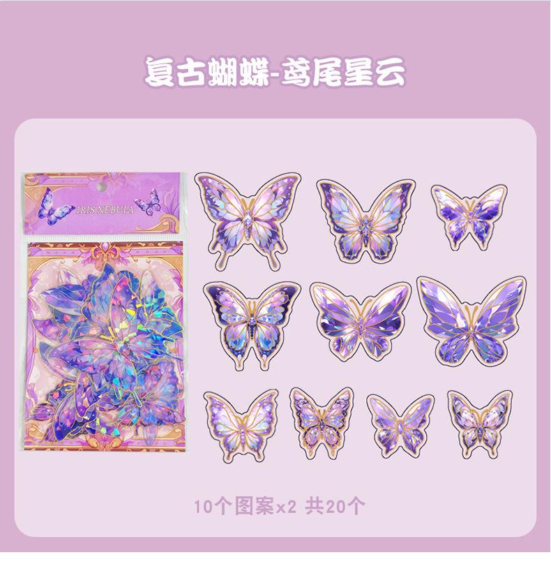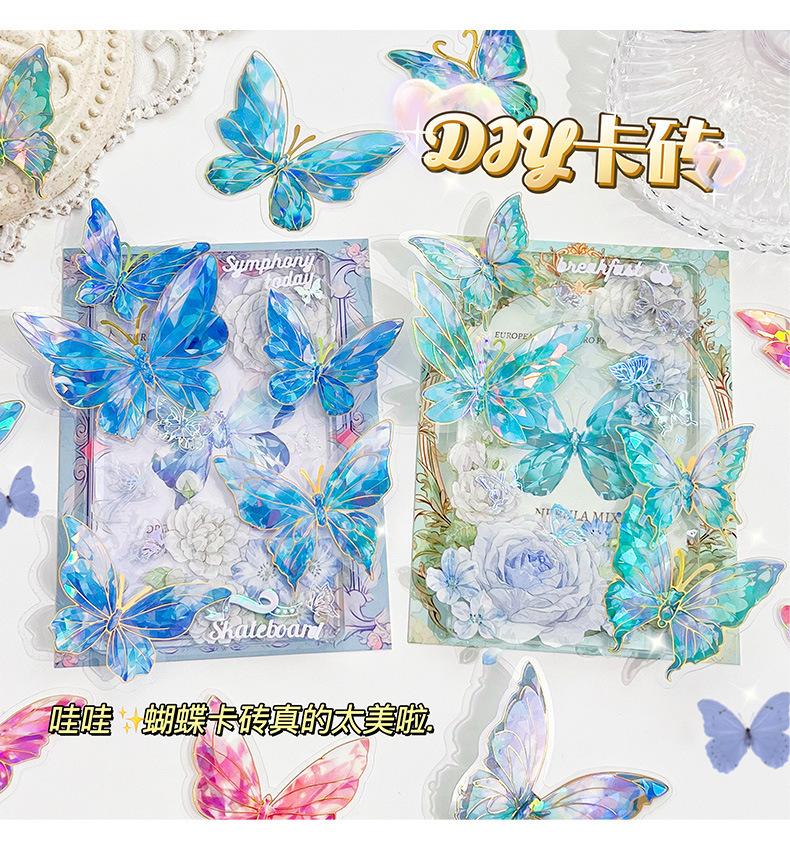 Pegatinas láser bronceadoras tridimensionales de PET con forma de mariposa retro coloridas, material de decoración de cuenta manual para bricolaje, material de fondo, pegatinas pequeñas