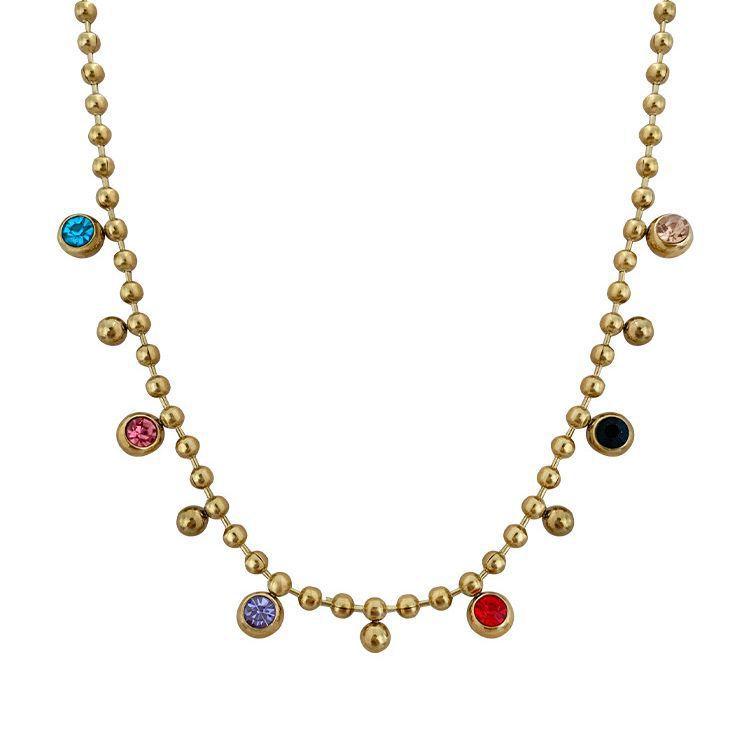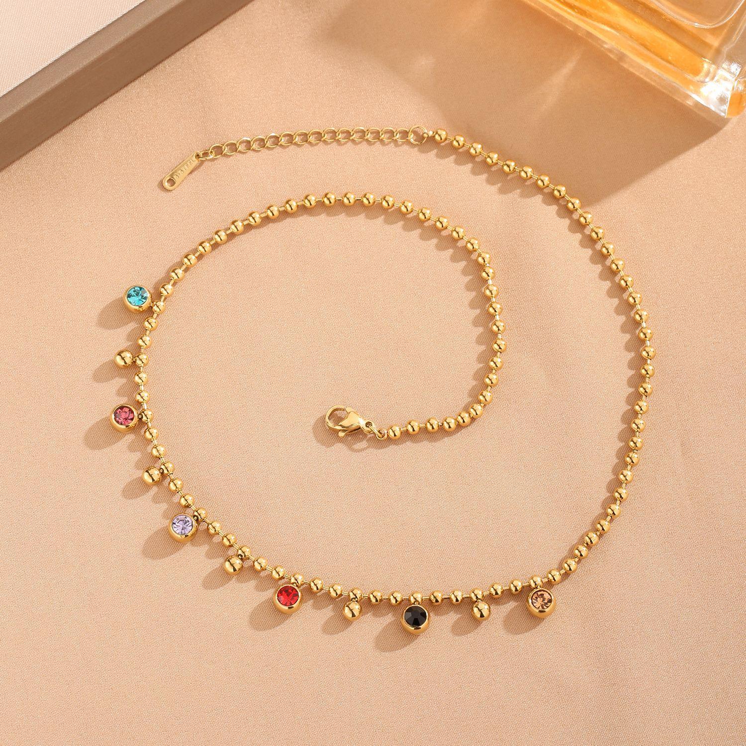 Collar de acero y titanio con colgante de cuentas de diamantes de colores, diseño retro simple europeo y americano, venta al por mayor transfronteriza para mujer
