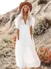 9066 blusa de playa de lunares tela slub botón cintura cuerda falda protector solar transfronteriza Amazon (4 colores)