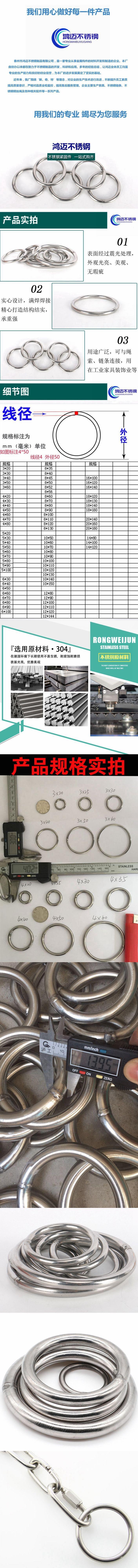 Anillo de acero inoxidable 304/círculo/anillo de red de pesca/junta tórica/anillo de acero inoxidable no estándar, anillo de tracción manual, anillo de acero de elevación