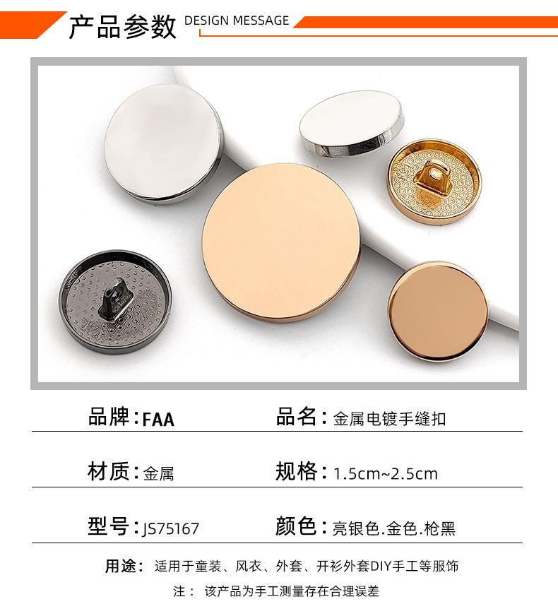 Abrigo Cortavientos de Metal Plano Cosido a Mano Botón Decorativo Espejo Botón Cosido a Mano Chaqueta de Traje Combinable Botón Redondo