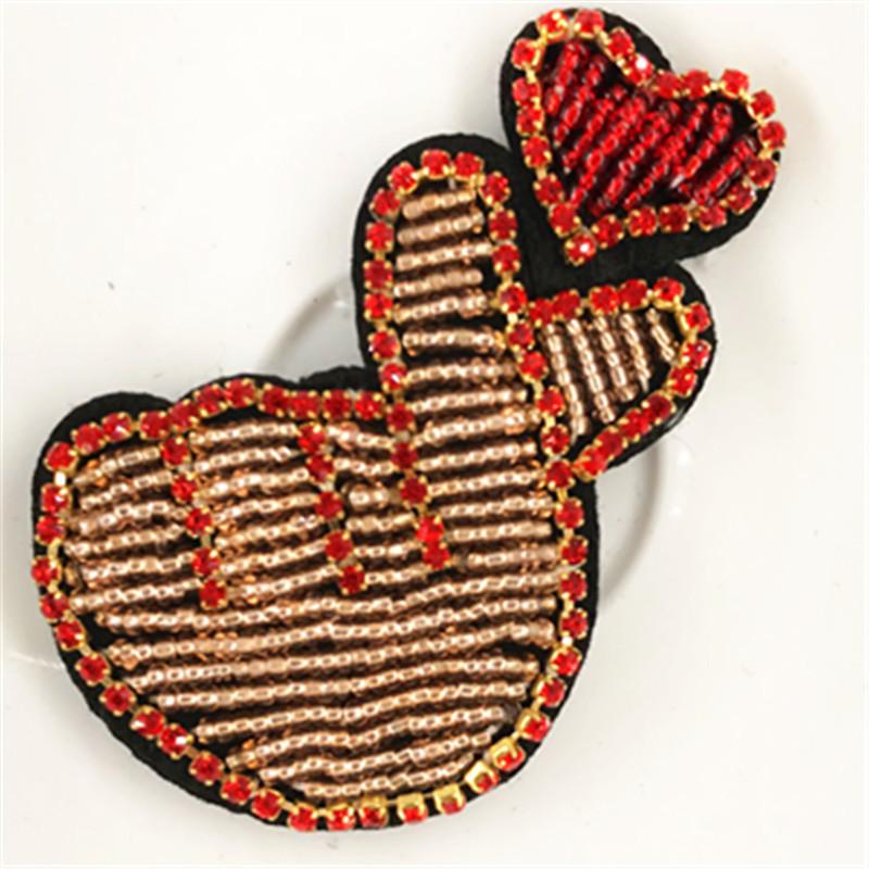 En stock, suministro directo, pegatinas de tela con cuentas hechas a mano con patrón de animales de amor, accesorios para ropa, zapatos y sombreros, pegatinas decorativas empacables.