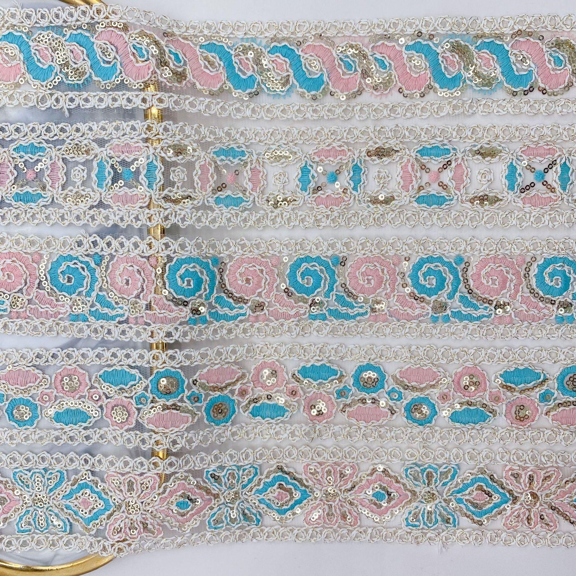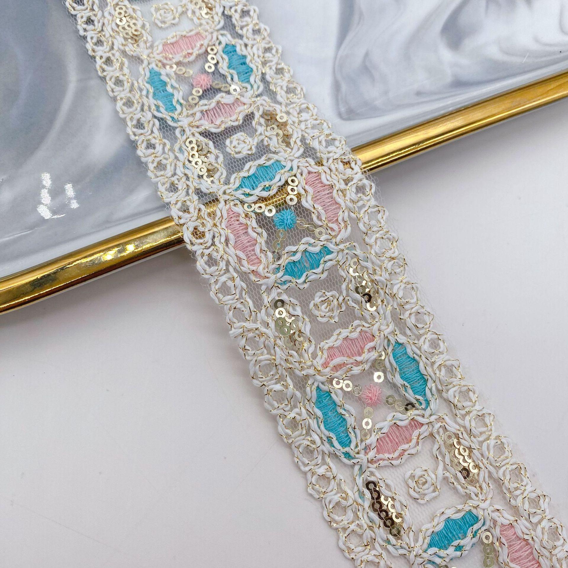 Encaje de código de color en stock al por mayor lentejuelas hecho a mano DIY étnico accesorios de ropa Han bordado cuentas encaje