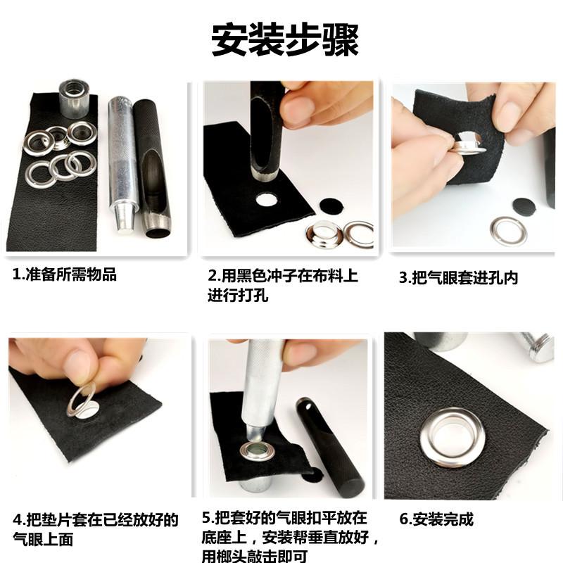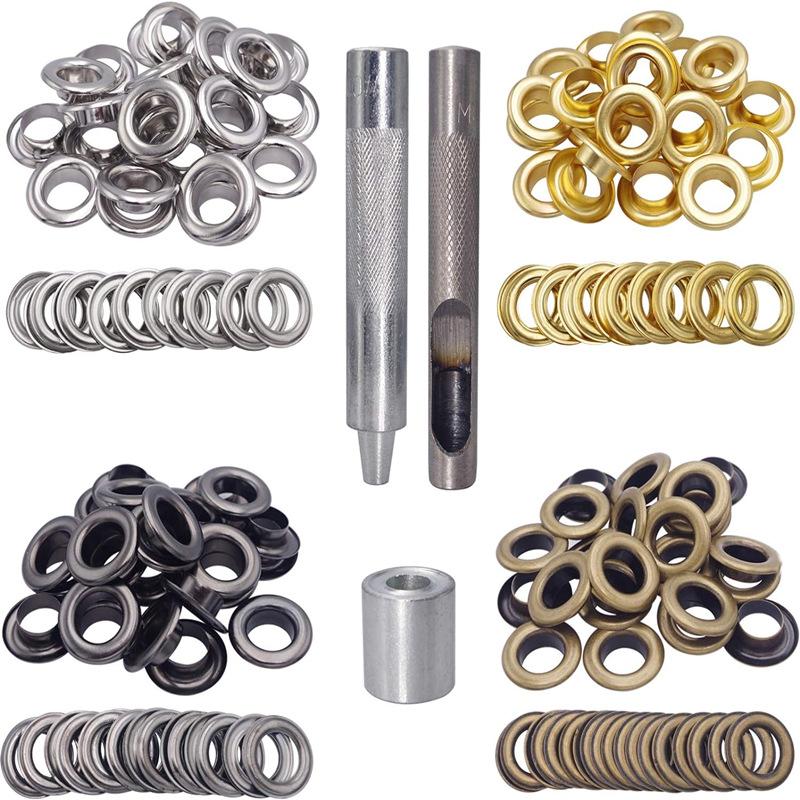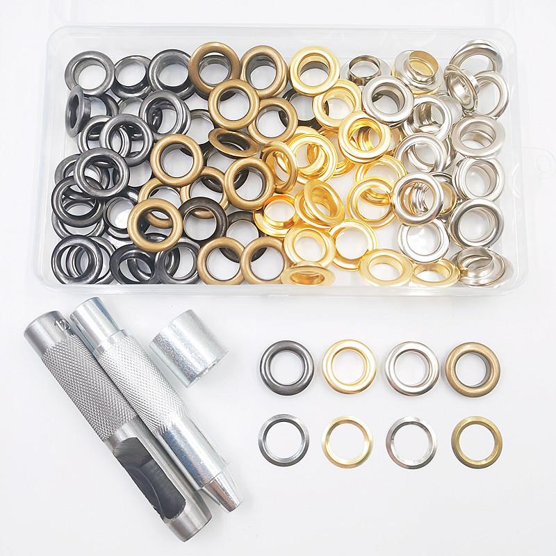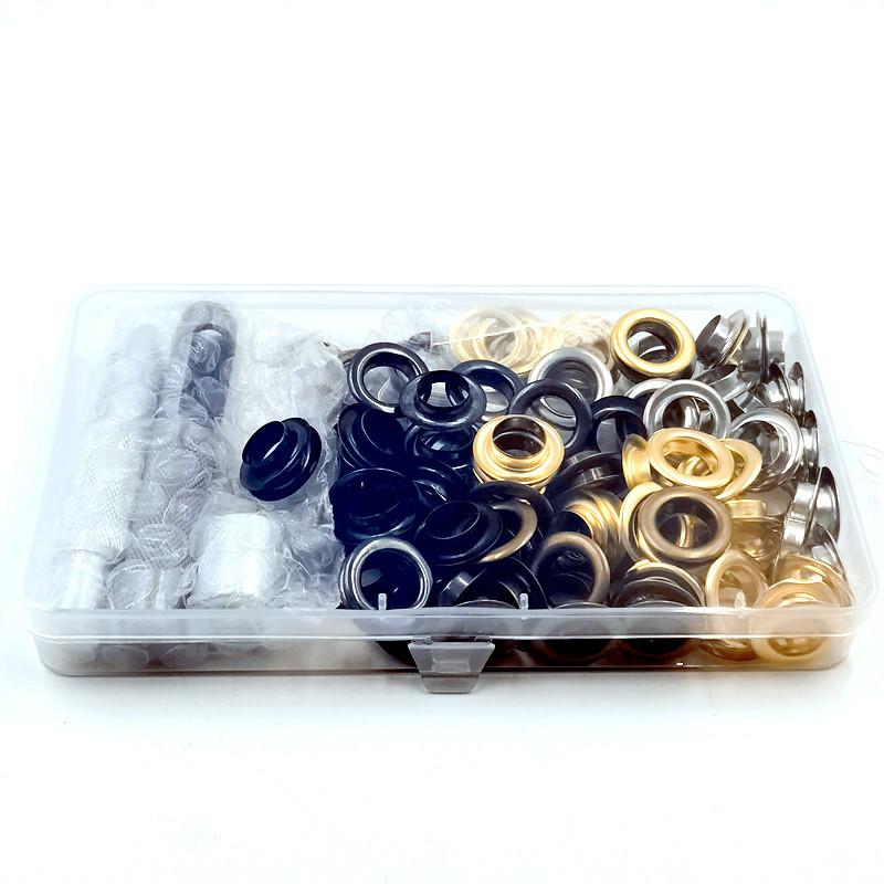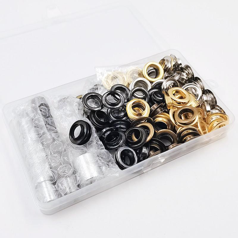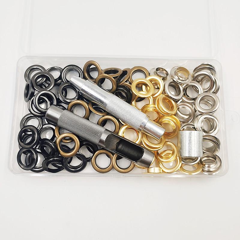 Contenido: 100 juegos de ojales + 3 herramientas + caja de almacenamiento