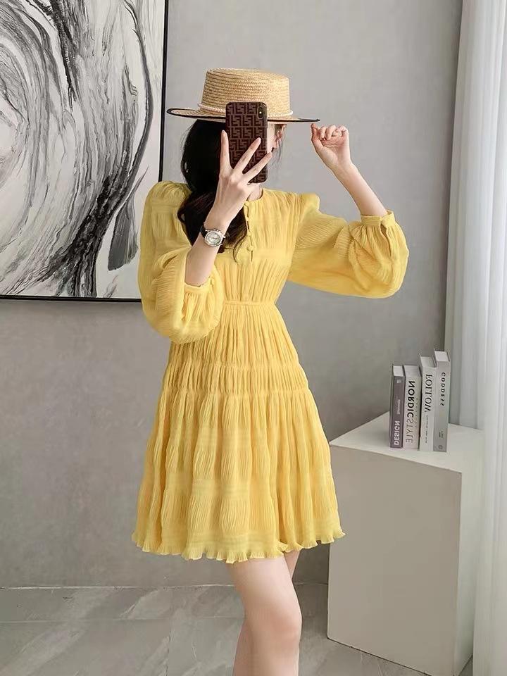Vestido de mujer de gasa con estampado floral pequeño, estilo maduro y ligero, de poliéster, con fondo negro, primavera y verano de 2024