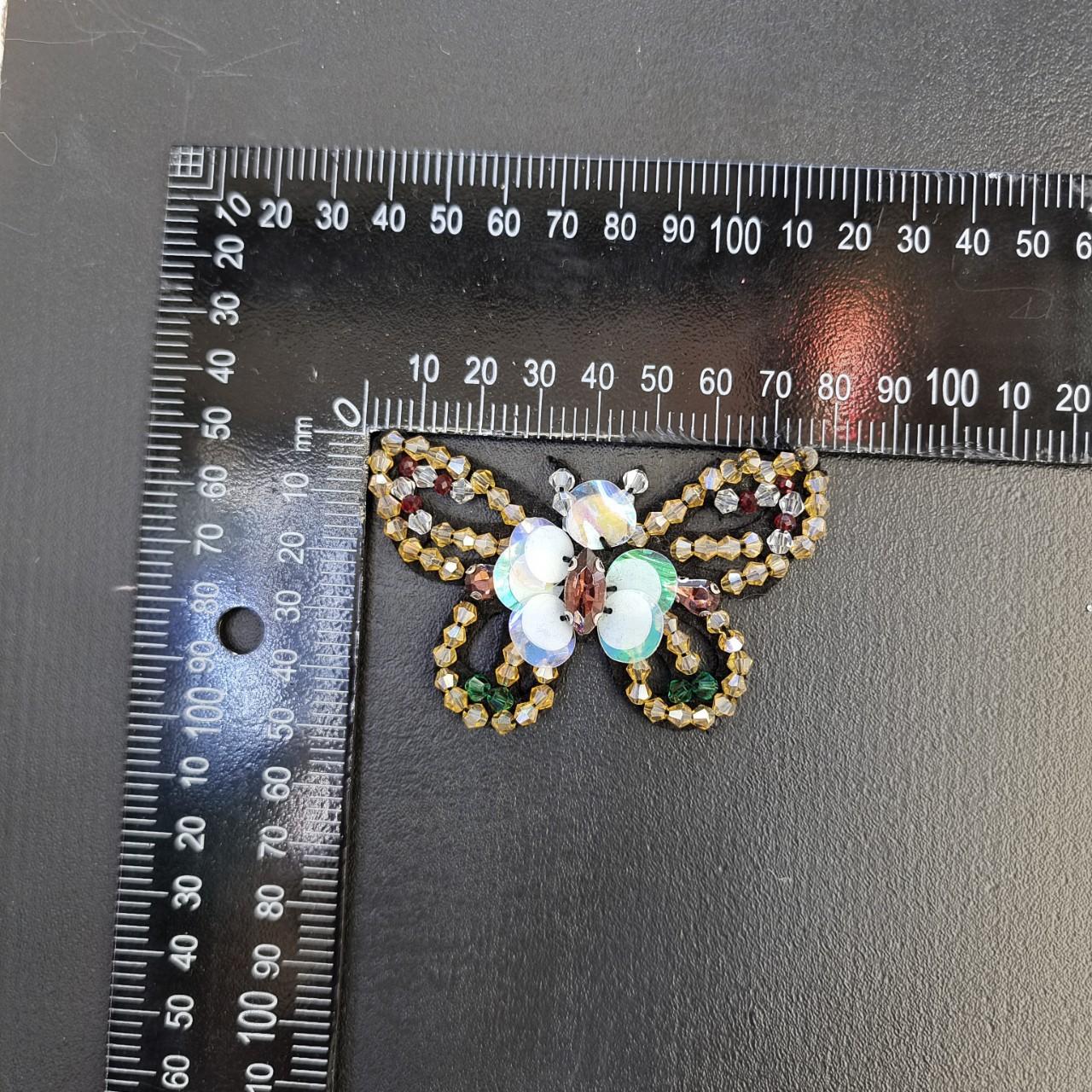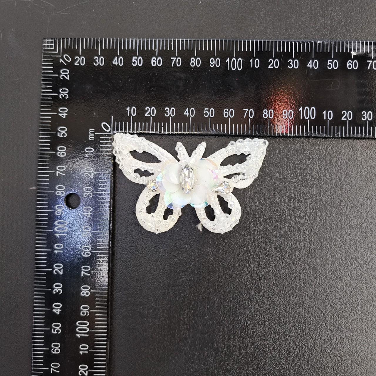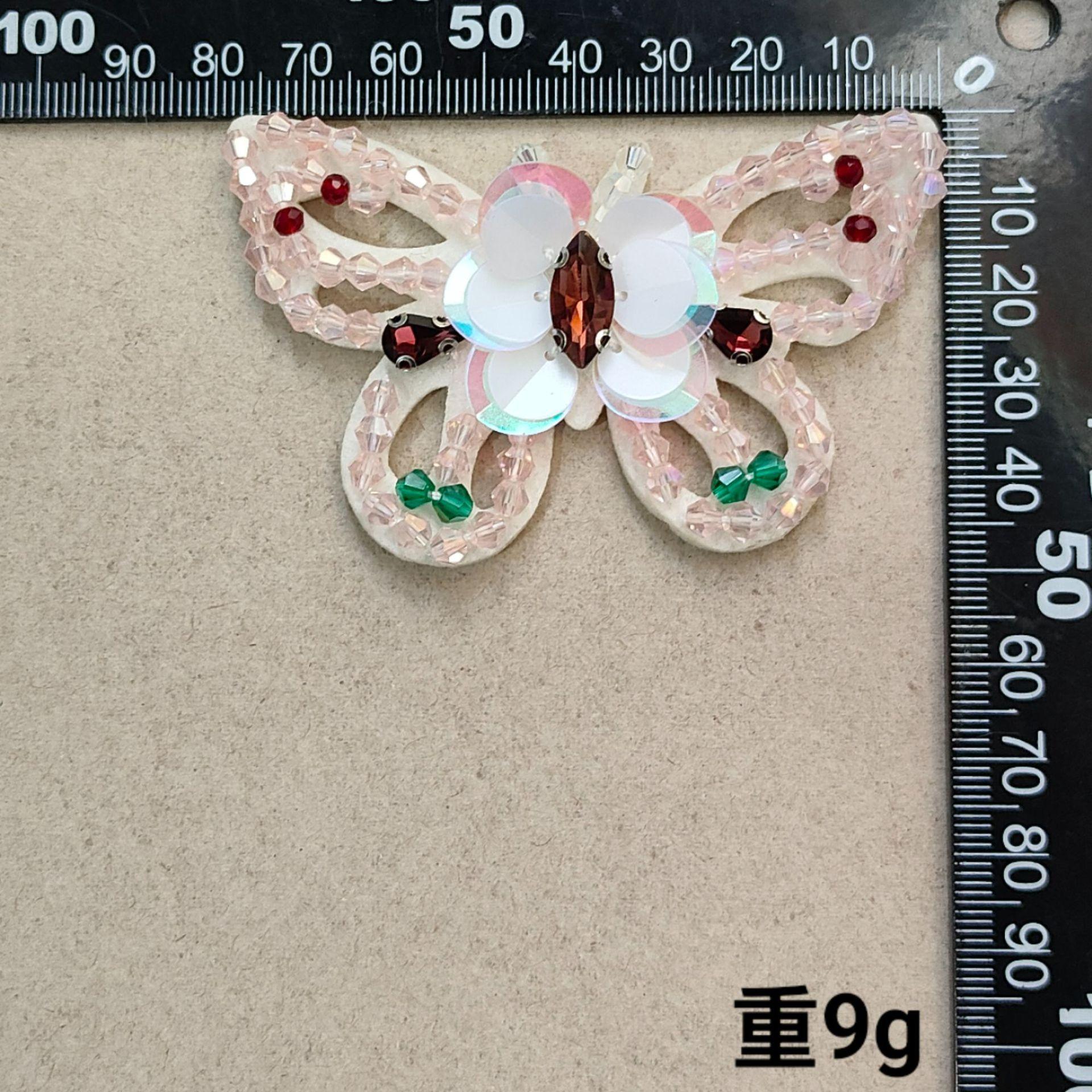 Venta al por mayor de fábrica de pegatinas de tela bordadas con cuentas de mariposa de cristal hechas a mano para bolsos, zapatos, sombreros, material decorativo, parche DIY cosido a mano.