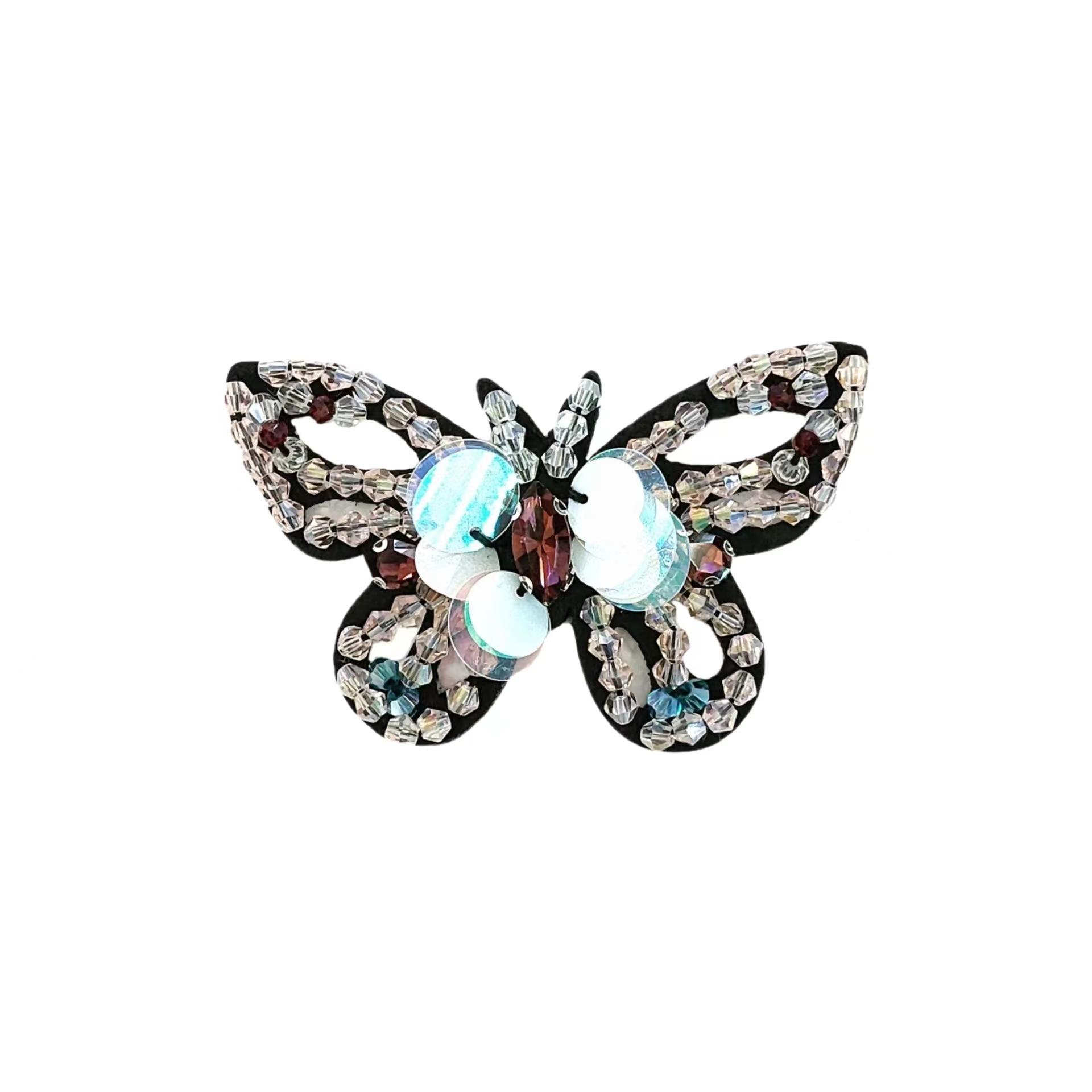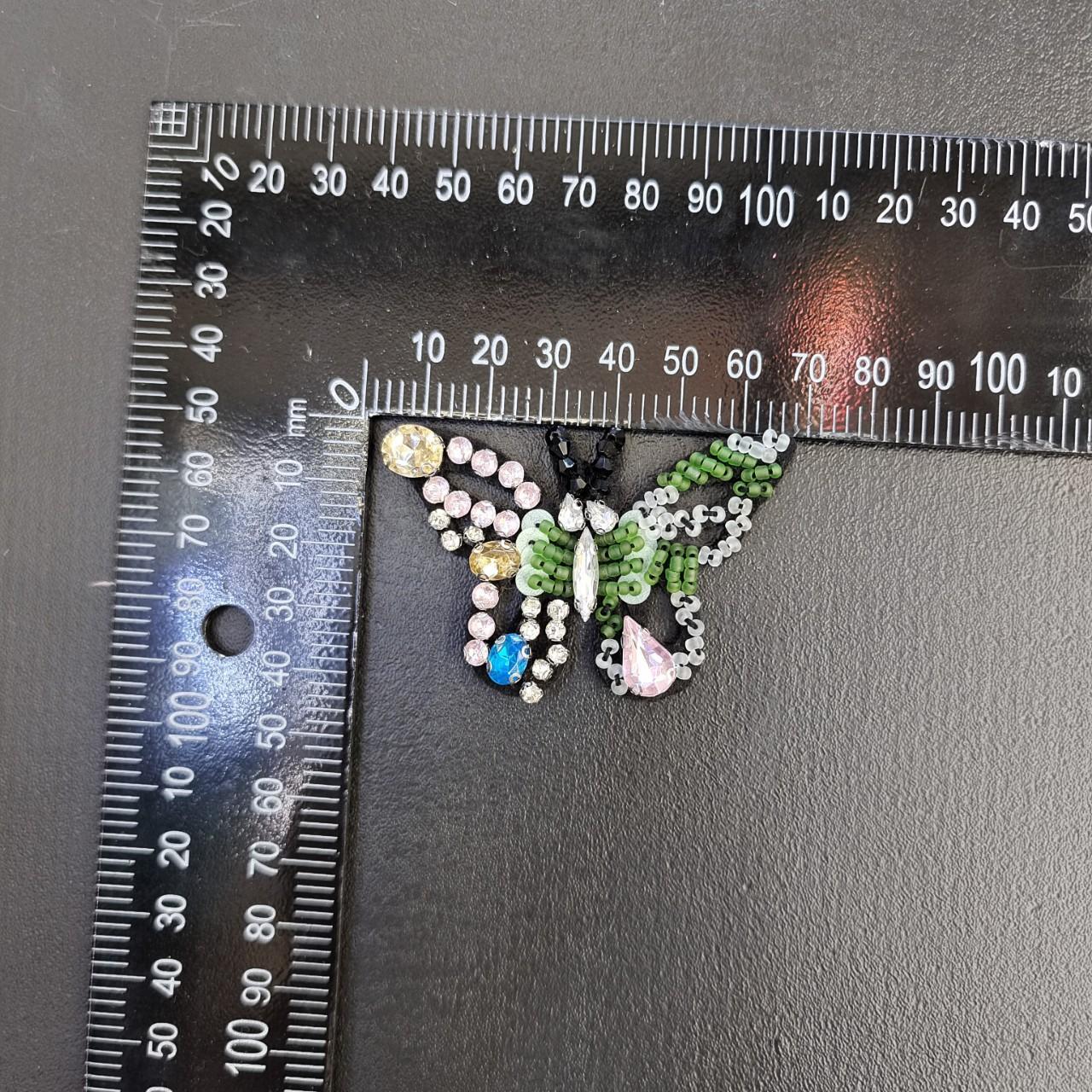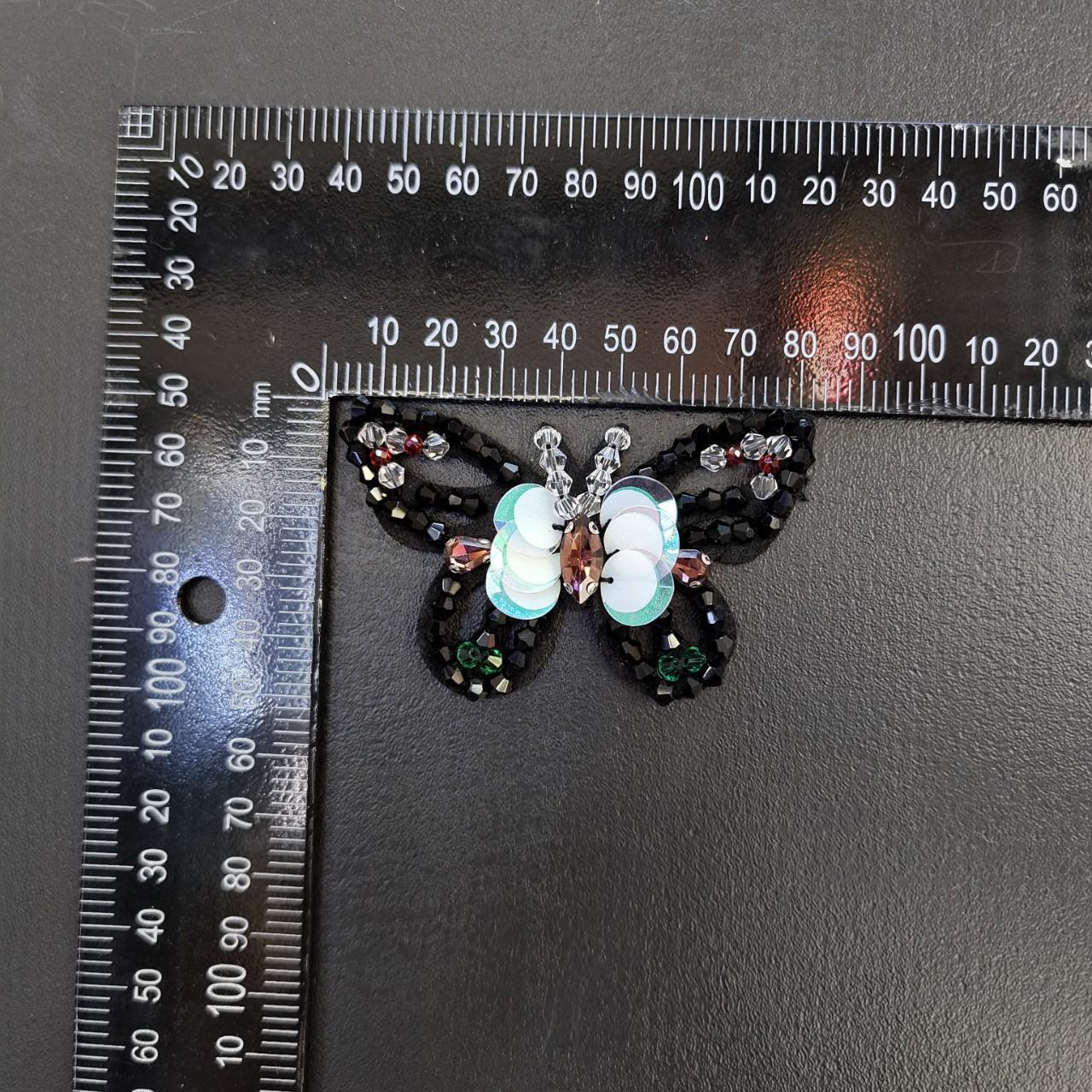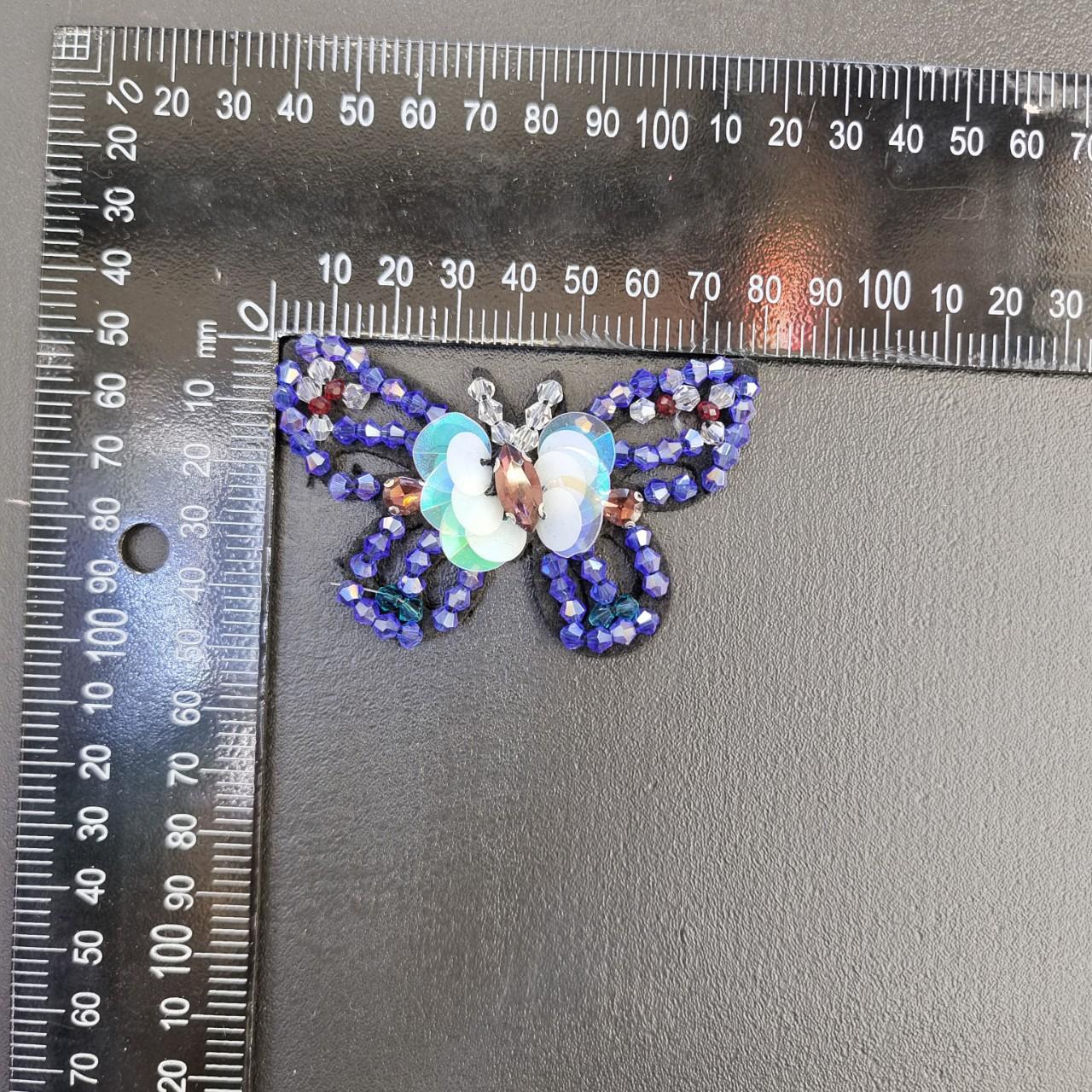 Venta al por mayor de fábrica de pegatinas de tela bordadas con cuentas de mariposa de cristal hechas a mano para bolsos, zapatos, sombreros, material decorativo, parche DIY cosido a mano.