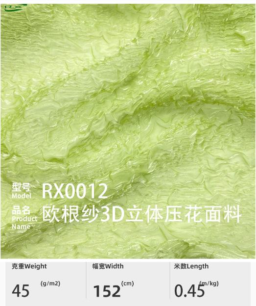 Tela de organza de gasa con relieve 3D, nueva de fábrica, para vestido y prenda superior, con cara brillante y fresca