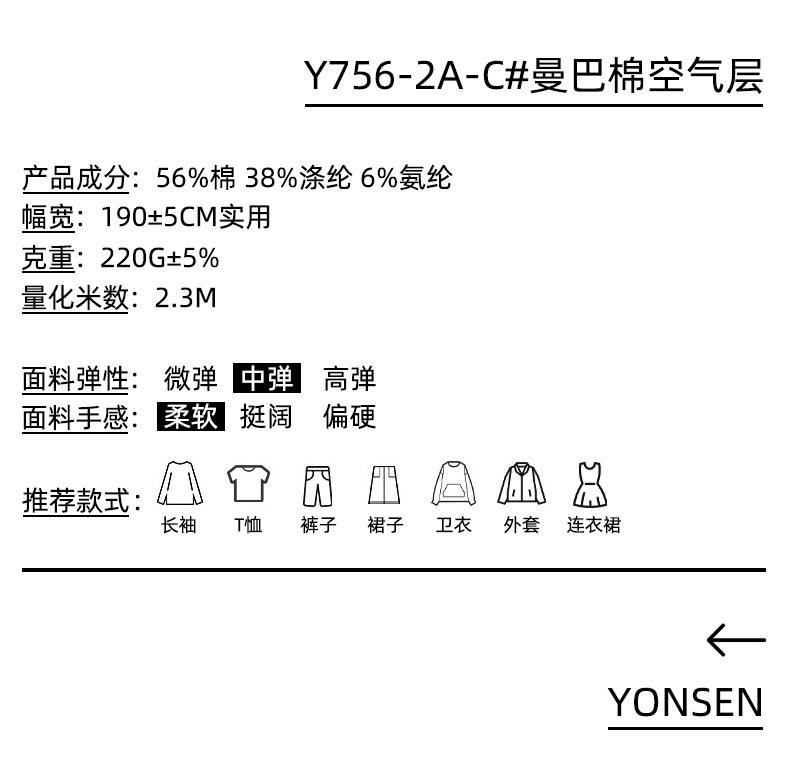 Tejido de punto de doble cara con capa de aire de algodón y poliéster Mamba de 220 g, muy elástico, para trajes de marca de moda.